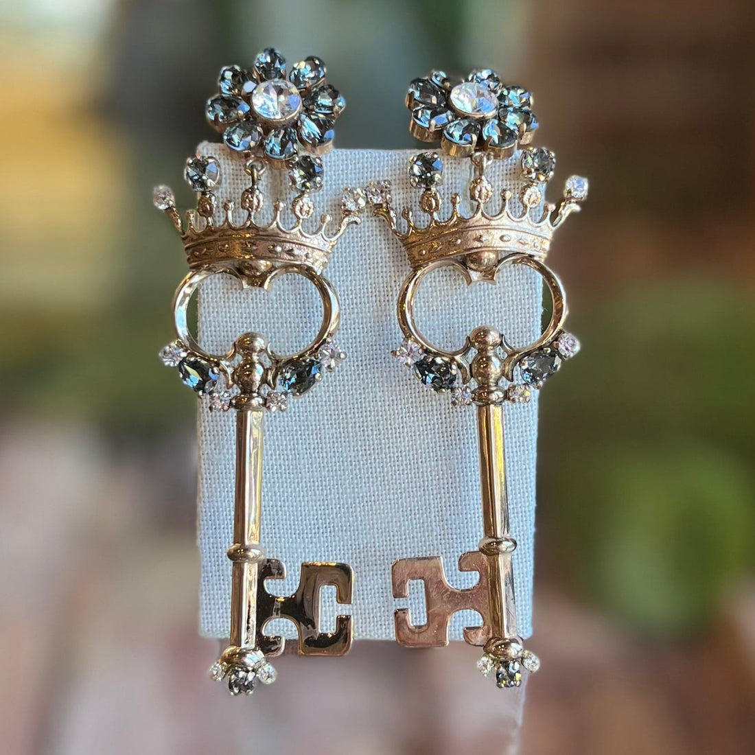 DOLCE & GABBANA Crystal Crown Key Clip-On Metal Earrings