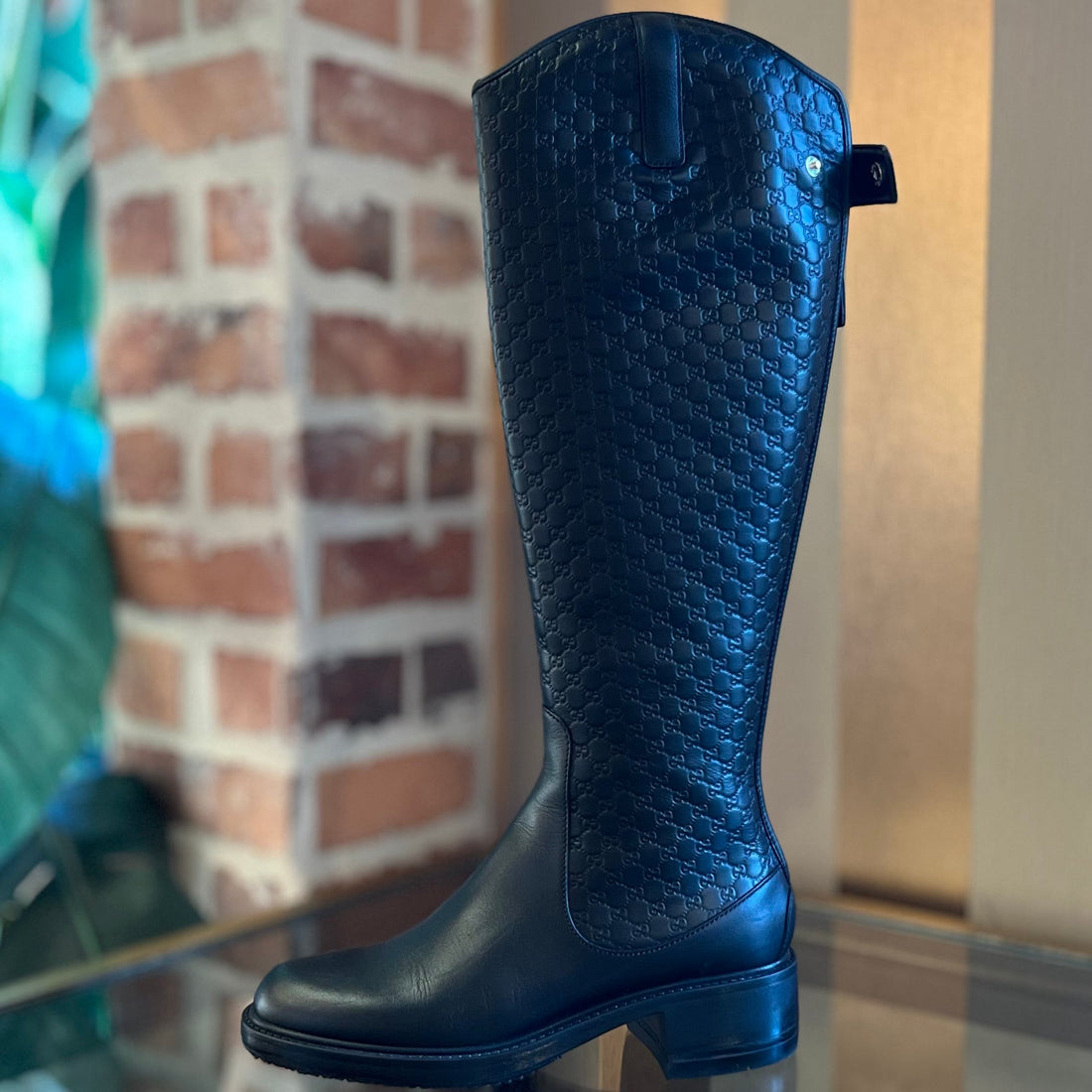 GUCCI Knee High Microguccissima Black Leather Riding Boots 36.5 (6.5 US)