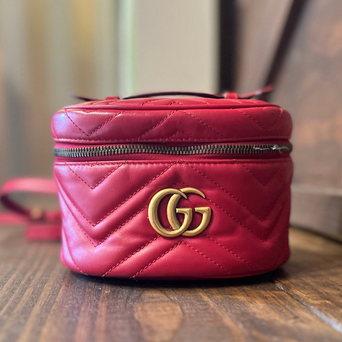GUCCI Marmont Mini Red Matelassé Leather Top Handle Backpack