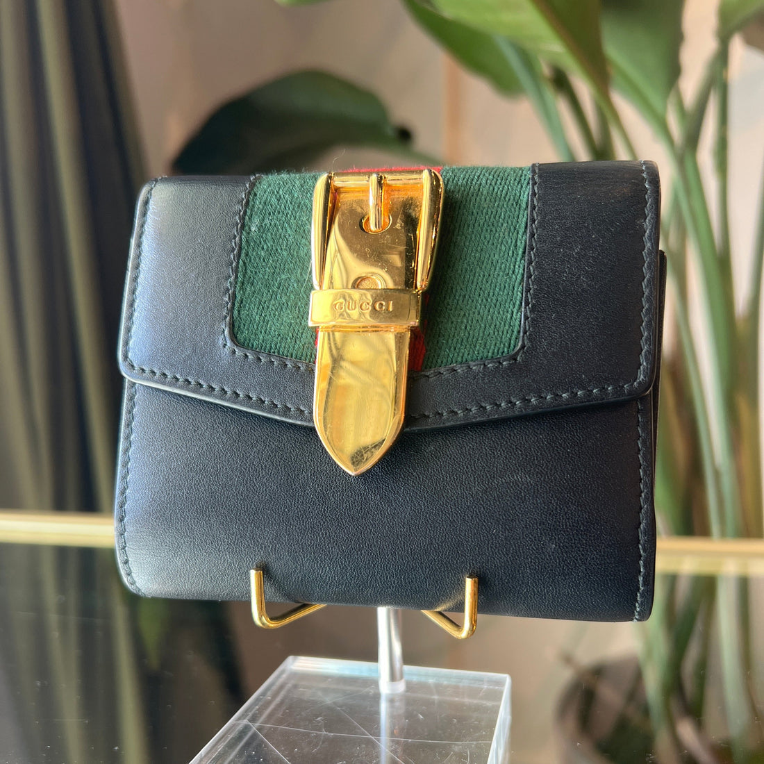 Details Brand: Gucci Color: Black Material: Leather Approx Measurements: L X H X D: 4.25"...