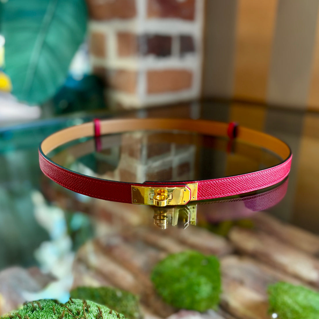 HERMES Kelly Epsom Rouge Casque Leather 18 Belt