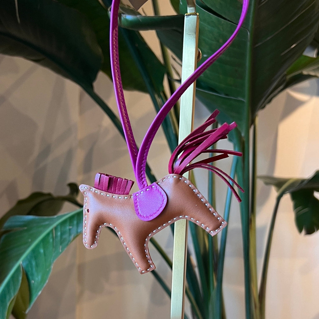 HERMES Milo Lambskin Grigri Rodeo Horse Bag Charm PM Gold Rubis Rose Pourpre
