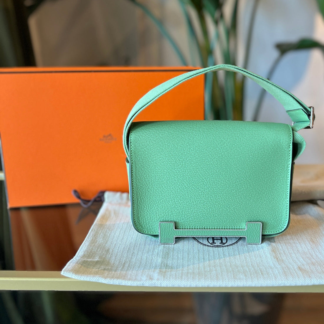 Details Brand: Hermès Color: Green Approx Measurements: L X H X D: 7.75" x 5.75"...