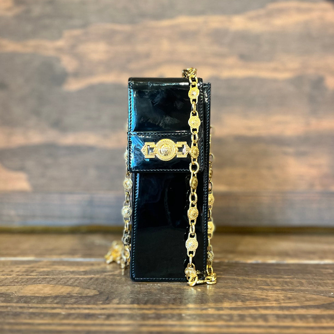 VERSACE Gianni Black Patent Leather Chain Crossbody Bag