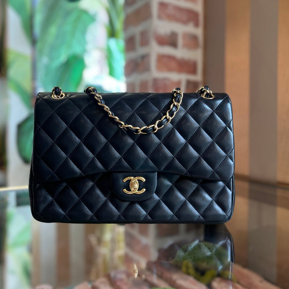 CHANEL Double Flap Jumbo Black Caviar Leather Shoulder Bag