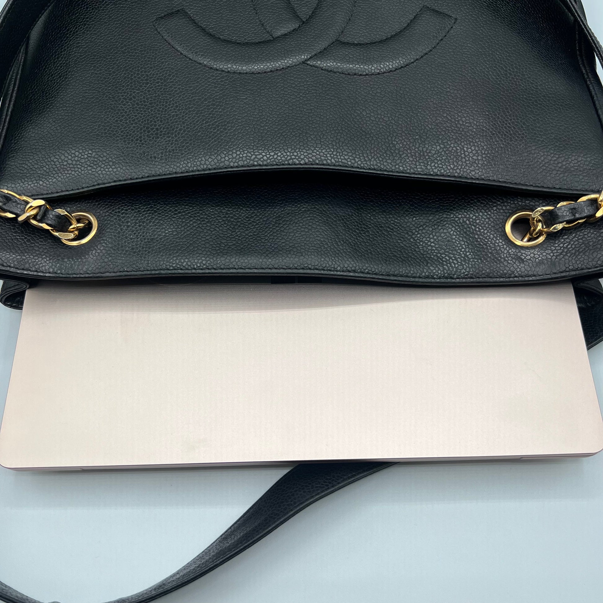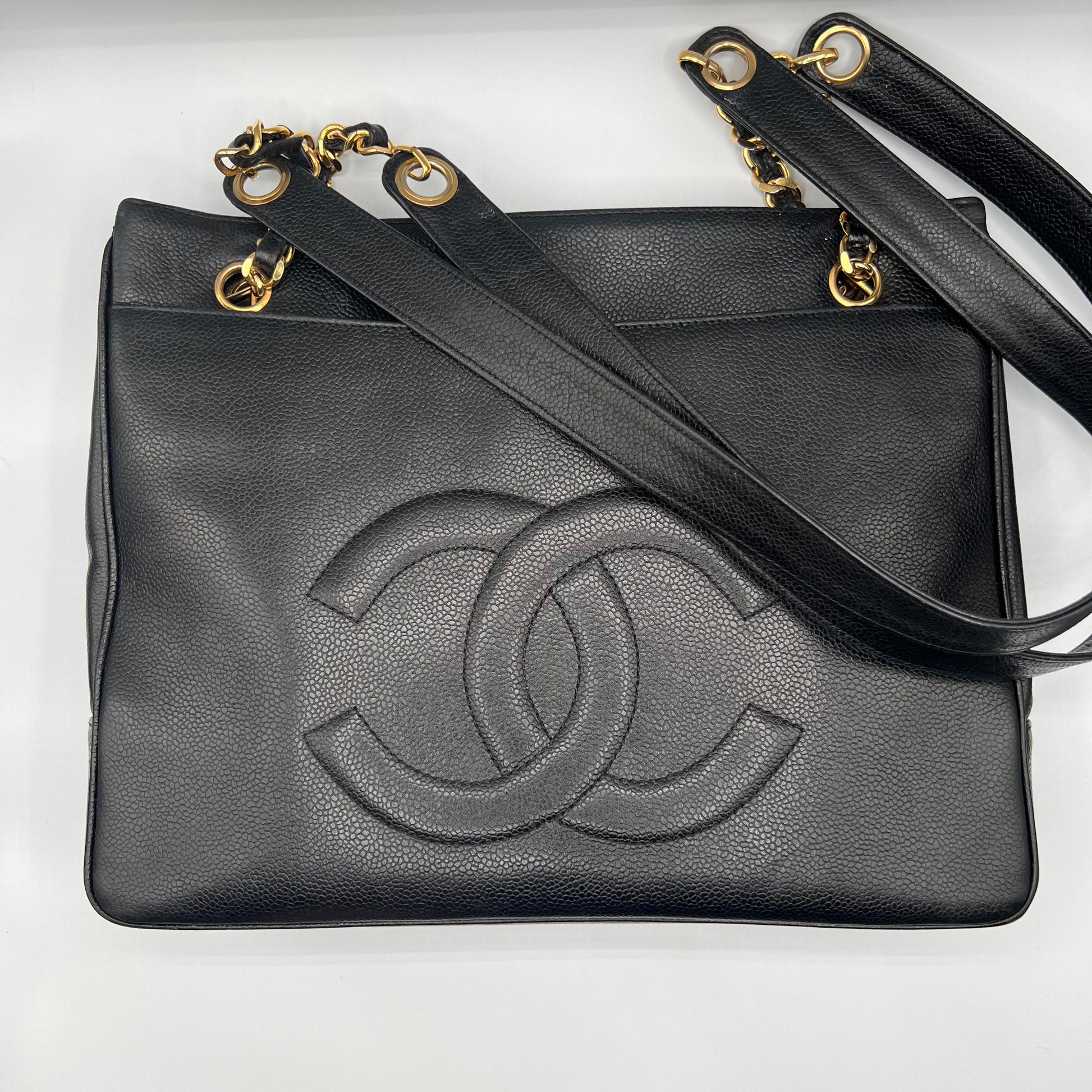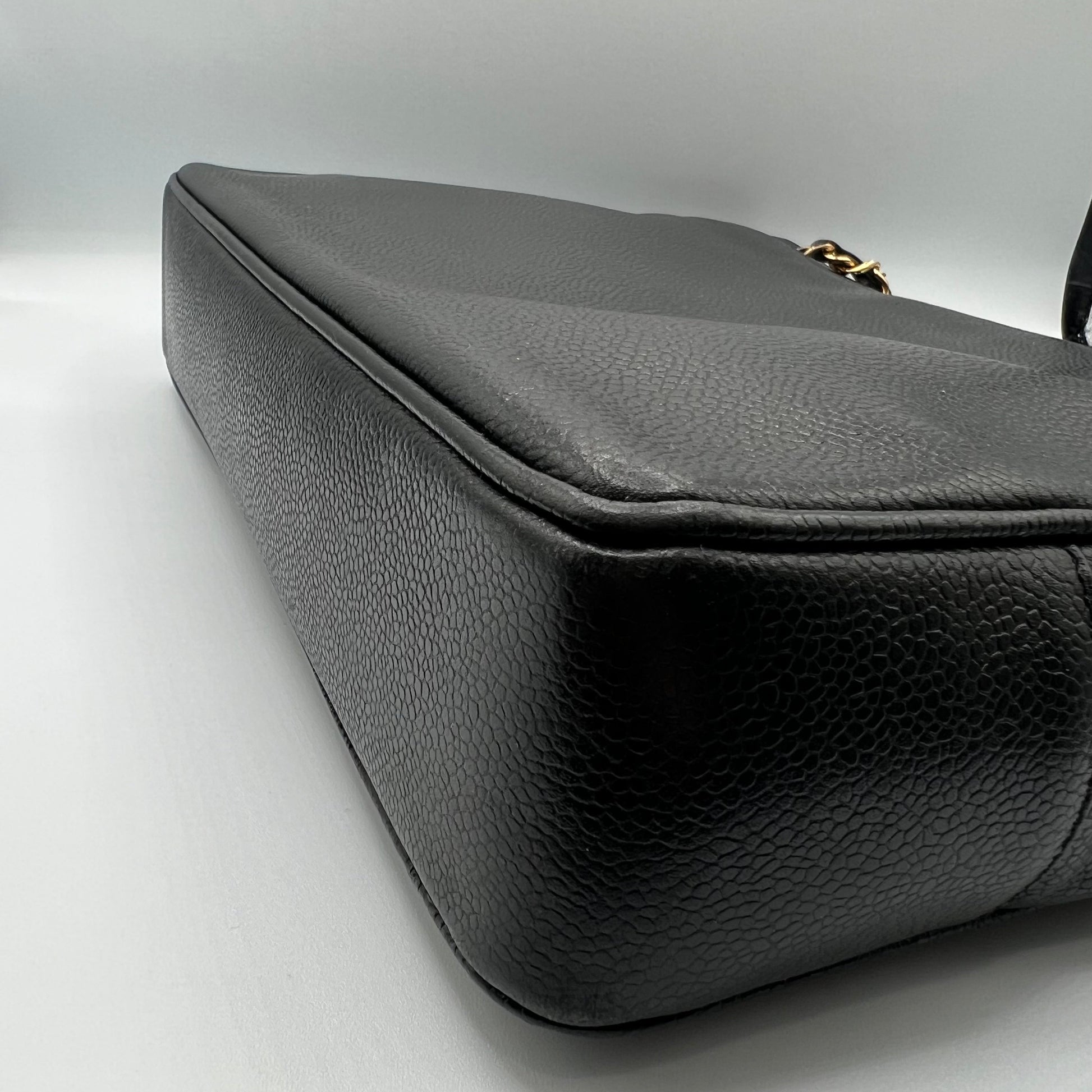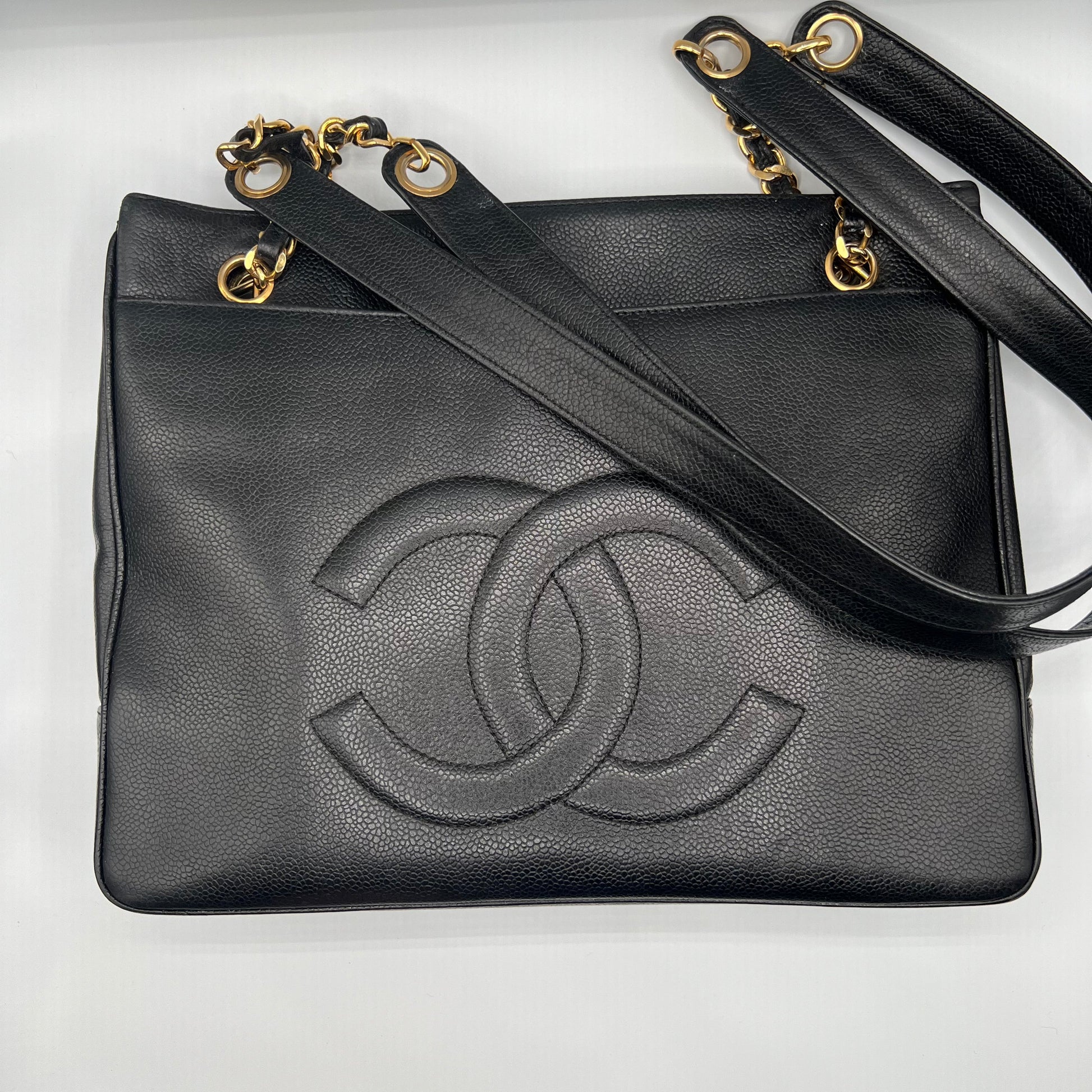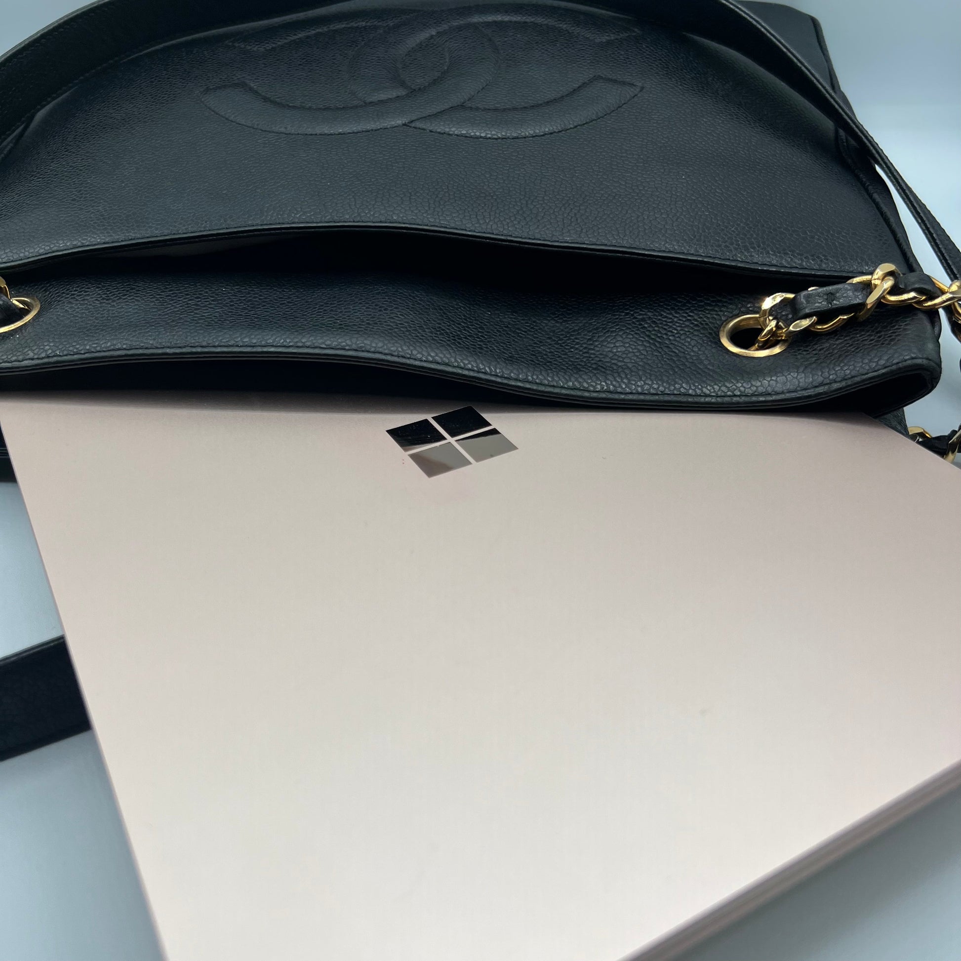 Looking for the perfect workbag? Show up to work in this subtle Chanel logo caviar tote. It can fit your 13” laptop and other work items! The caviar makes this bag durable than other leathers so it is great for everyday use. There is hardly any call outs on this bag because she was kept in such great condition. This is a steal!