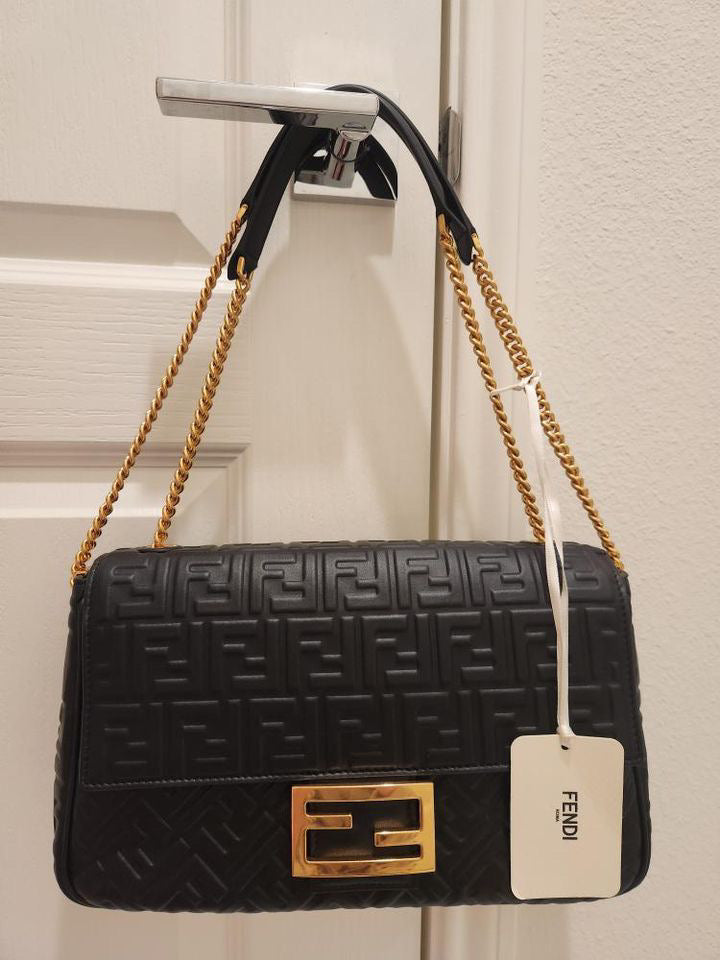 2023 Fendi Baguette Chain shoulder bag that is practically brand new! Comes with original dustbag and tags. The iconic baguette silhouette and the zucca print *chefs kiss*.