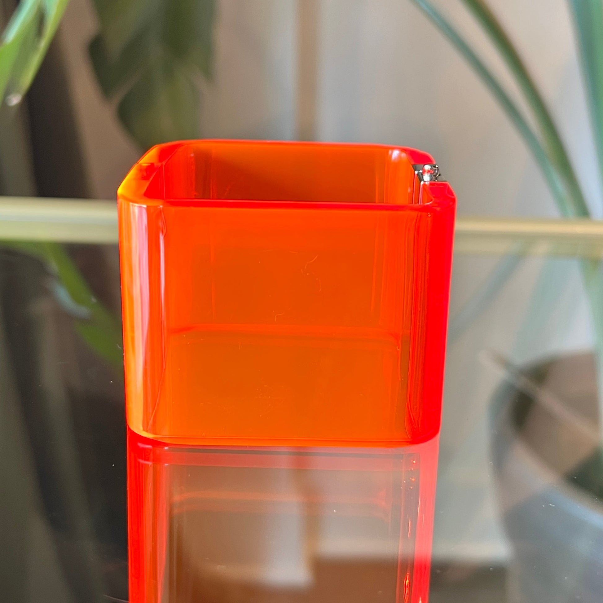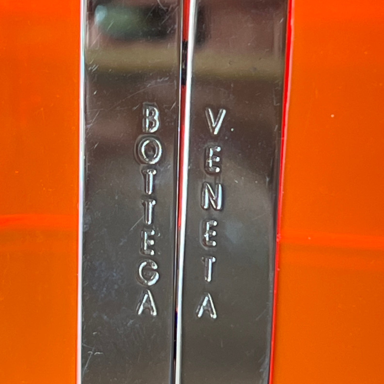 Elevate your accessory collection with the BOTTEGA VENETA Orange Acrylic Clamper Bracelet. This striking piece combines bold color with sleek design, offering a modern yet timeless statement. Crafted from high-quality acrylic, it provides a lightweight feel while adding a vibrant pop to any ensemble. Perfect for those who appreciate refined style with a contemporary edge. Very good condition.