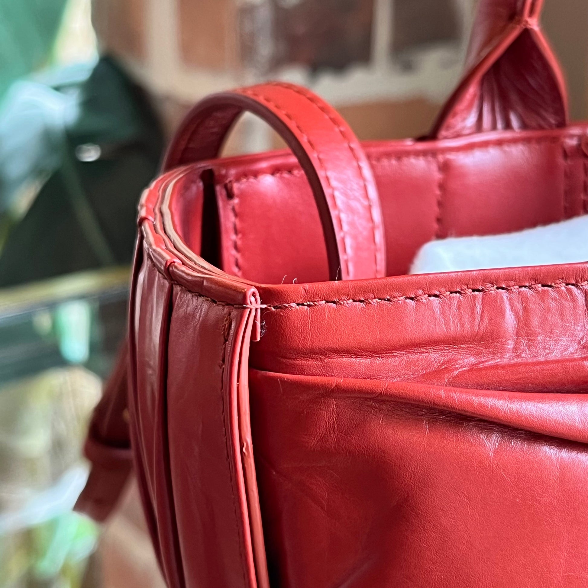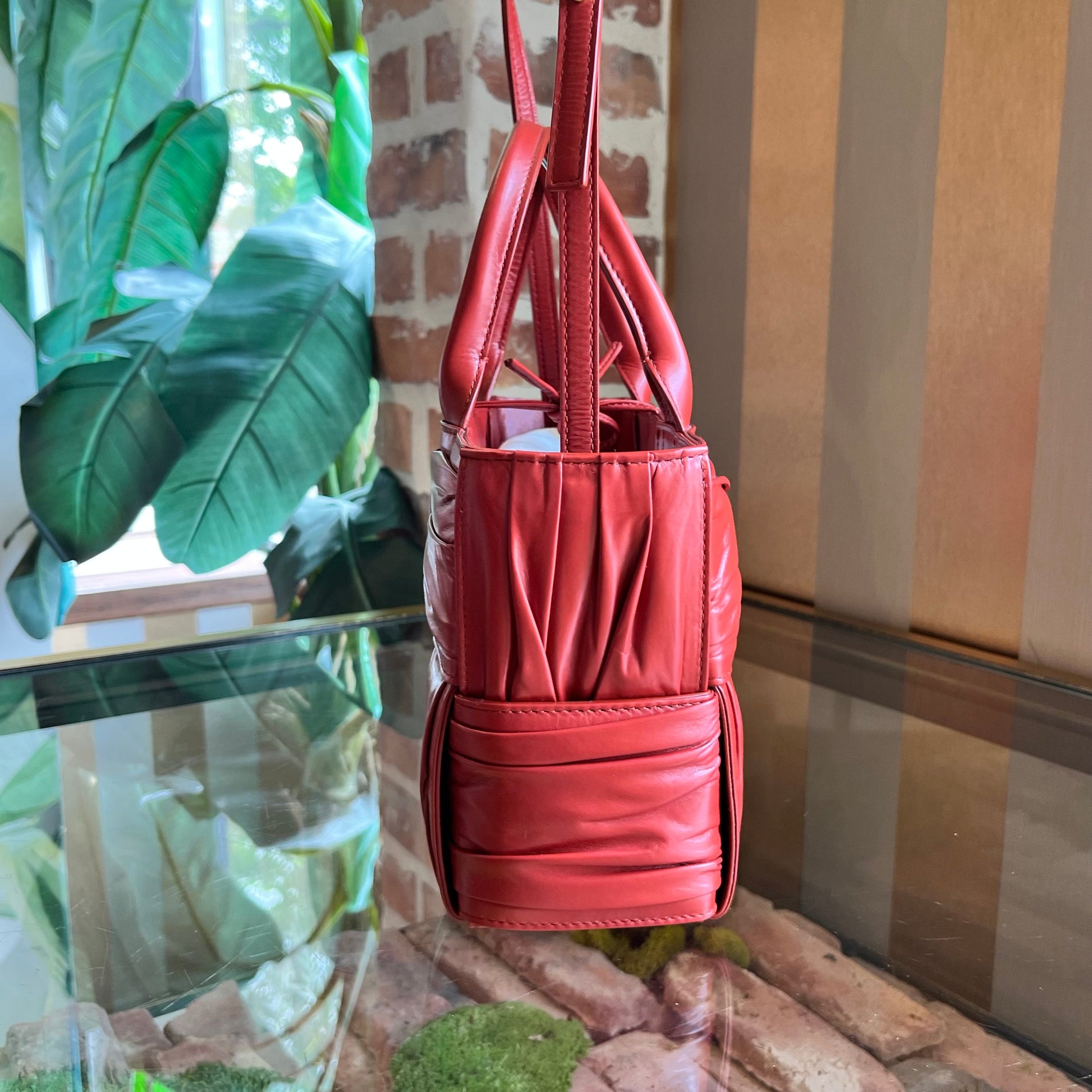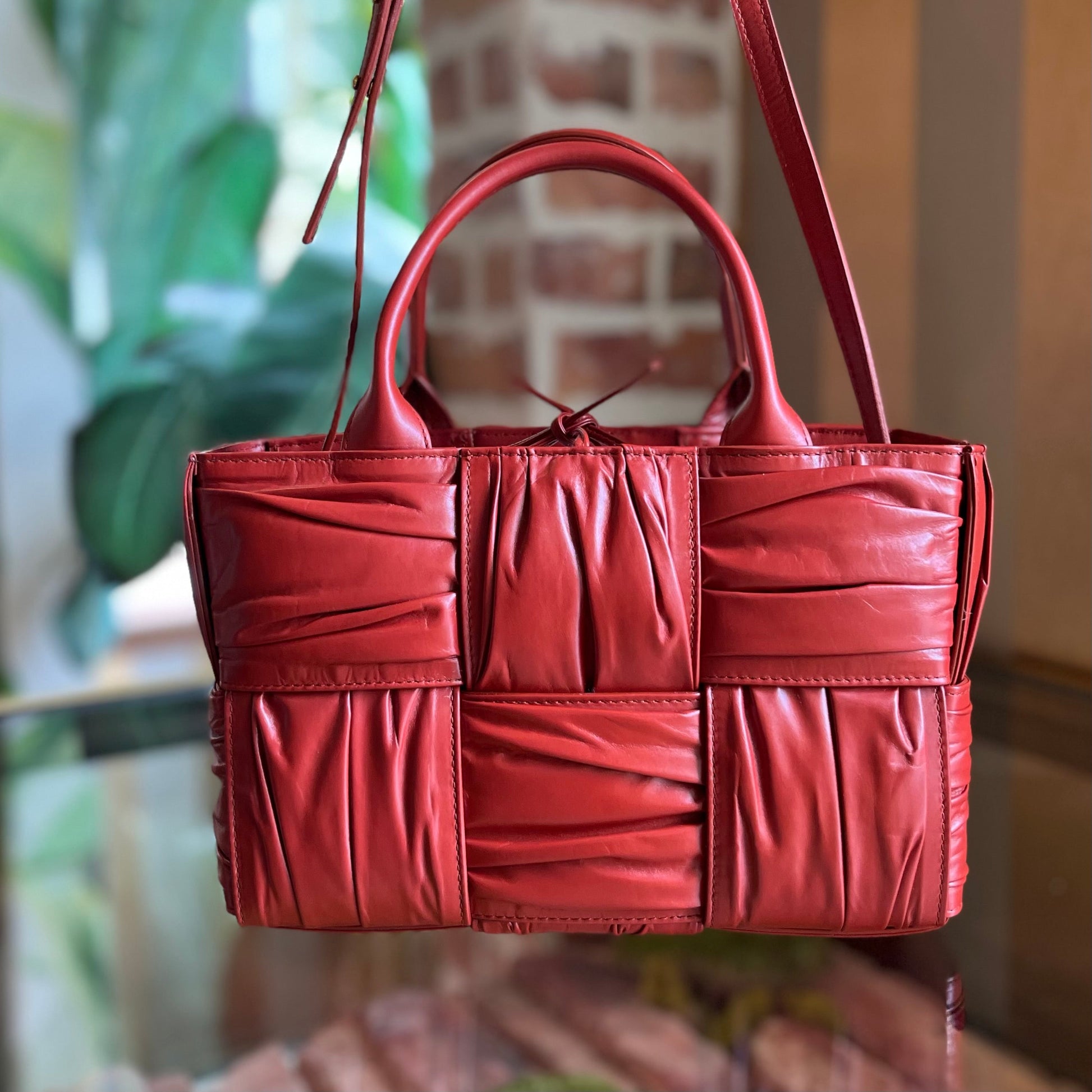 BOTTEGA VENETA Mini Arco Tote Red Foulard Intrecciato Pleated Tote