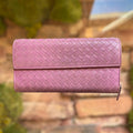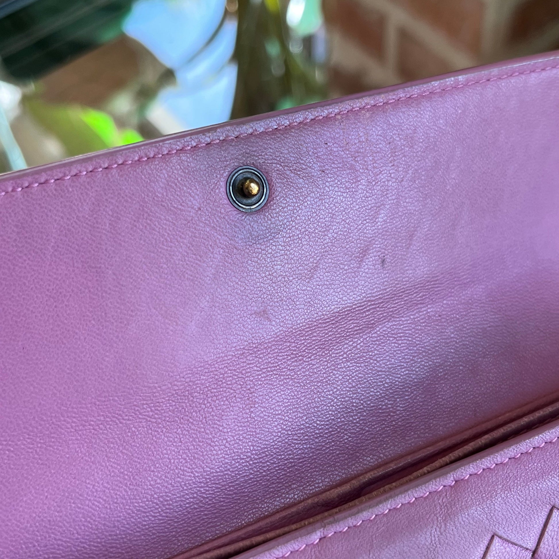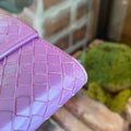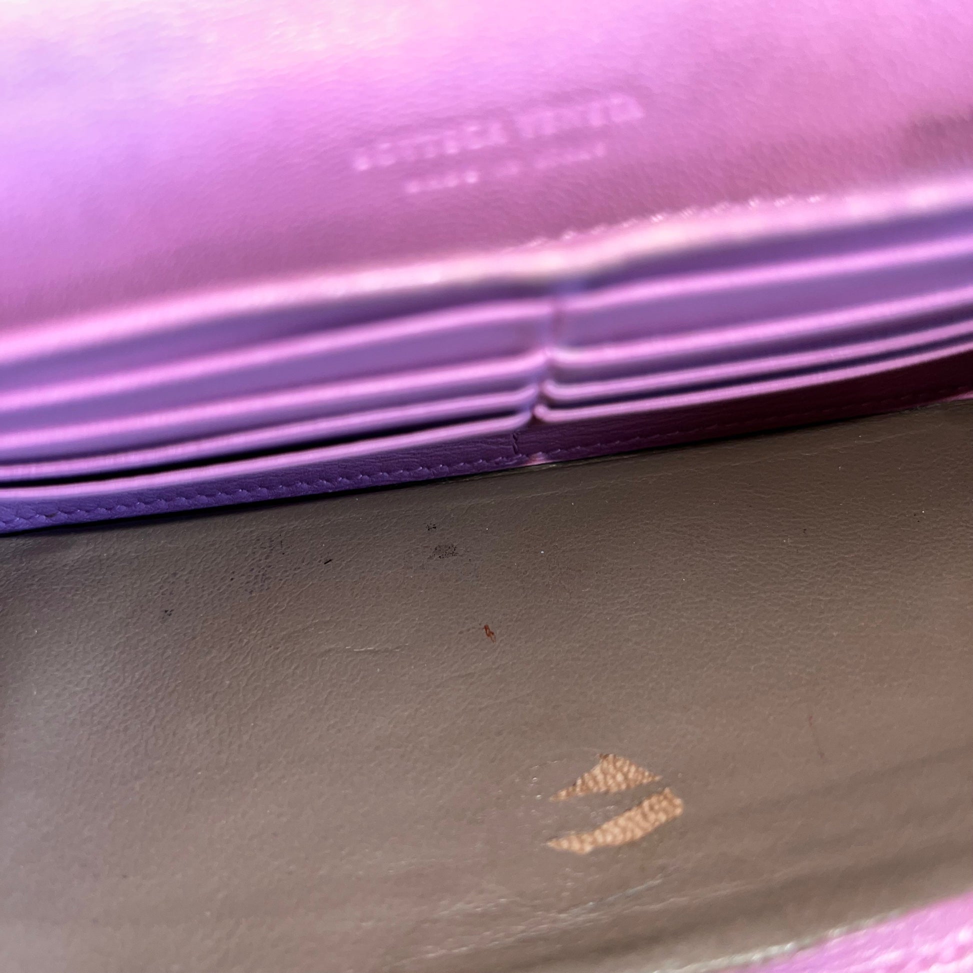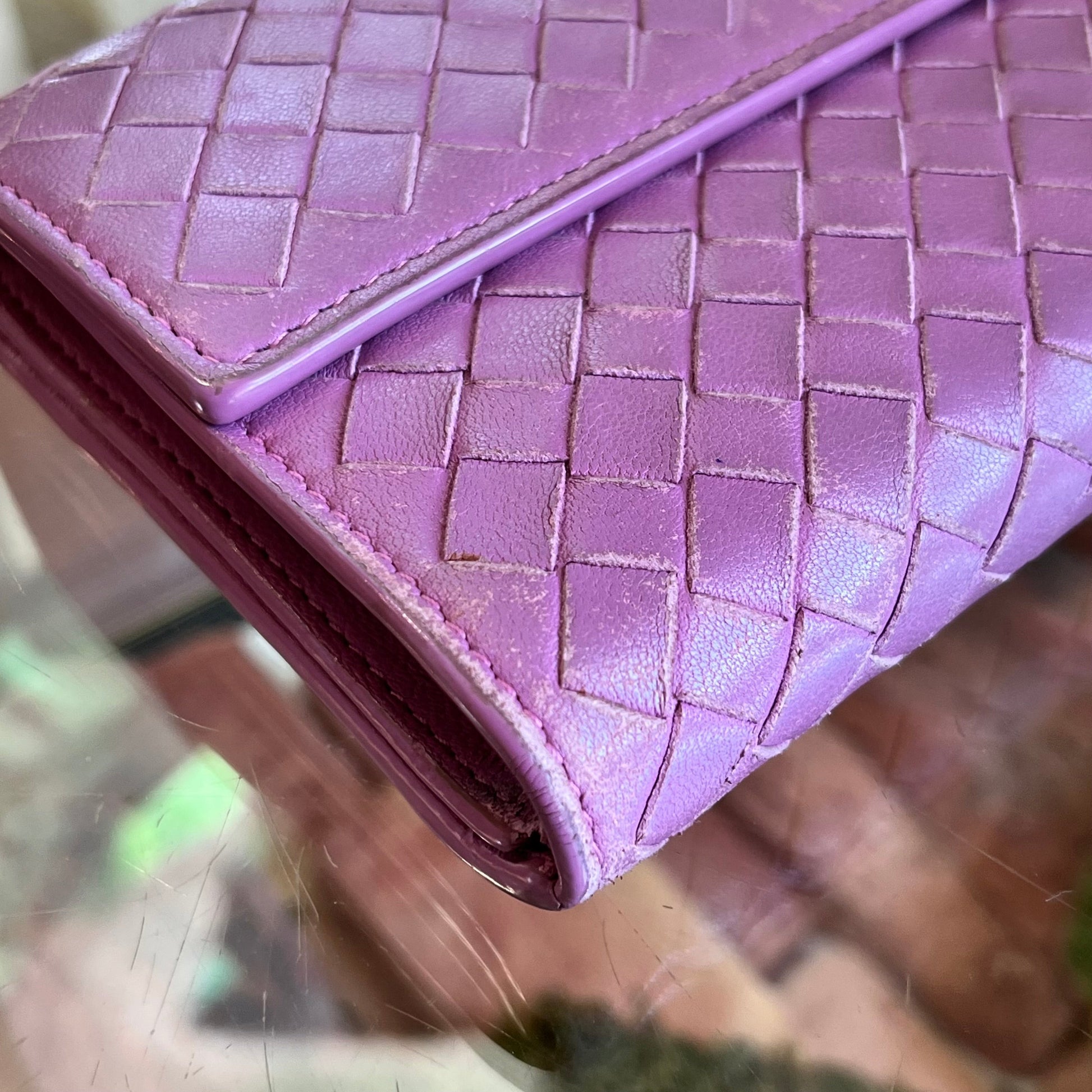 Grace your collection with the BOTTEGA VENETA Intrecciato Woven Lambskin Continental Flap Wallet, a refined blend of craftsmanship and elegance. Expertly woven from supple lambskin, its iconic intrecciato pattern offers both timeless style and durable softness. This continental wallet features a secure flap closure and ample compartments to organize your essentials with understated sophistication. Perfectly tailored for those who appreciate subtle luxury in everyday accessories. B- Good Overall Condition