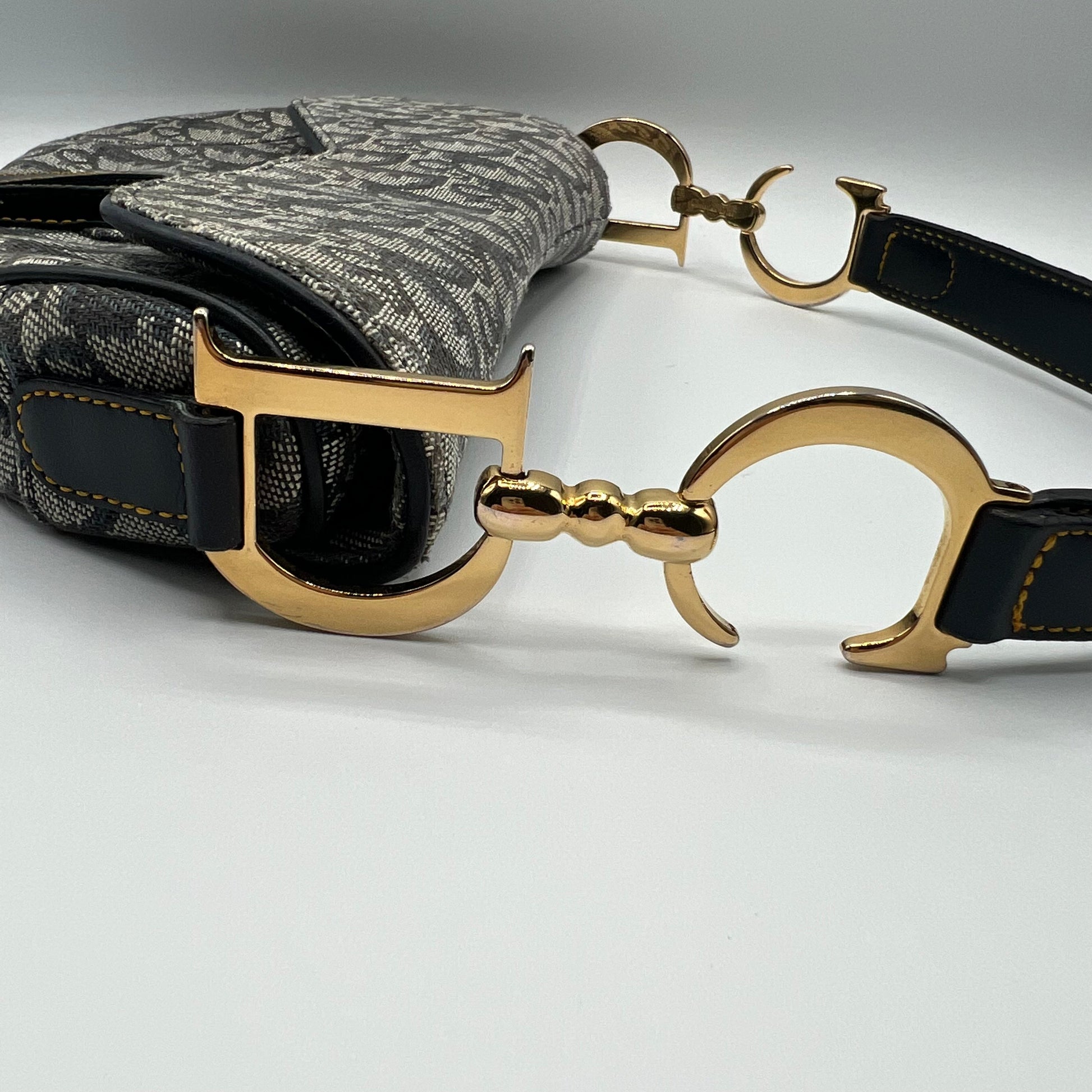 Highly sought after oblique (diorissima) canvas saddle is perfect for the transition from winter to spring. What makes her special is her Dior gold hardware, I promise eyes will turn. Don't be mistaken, surprisingly she can fit a lot even with her saddle shape. She is in great condition for being vintage with her leather strap and piping in solid condition to last you for many more years!