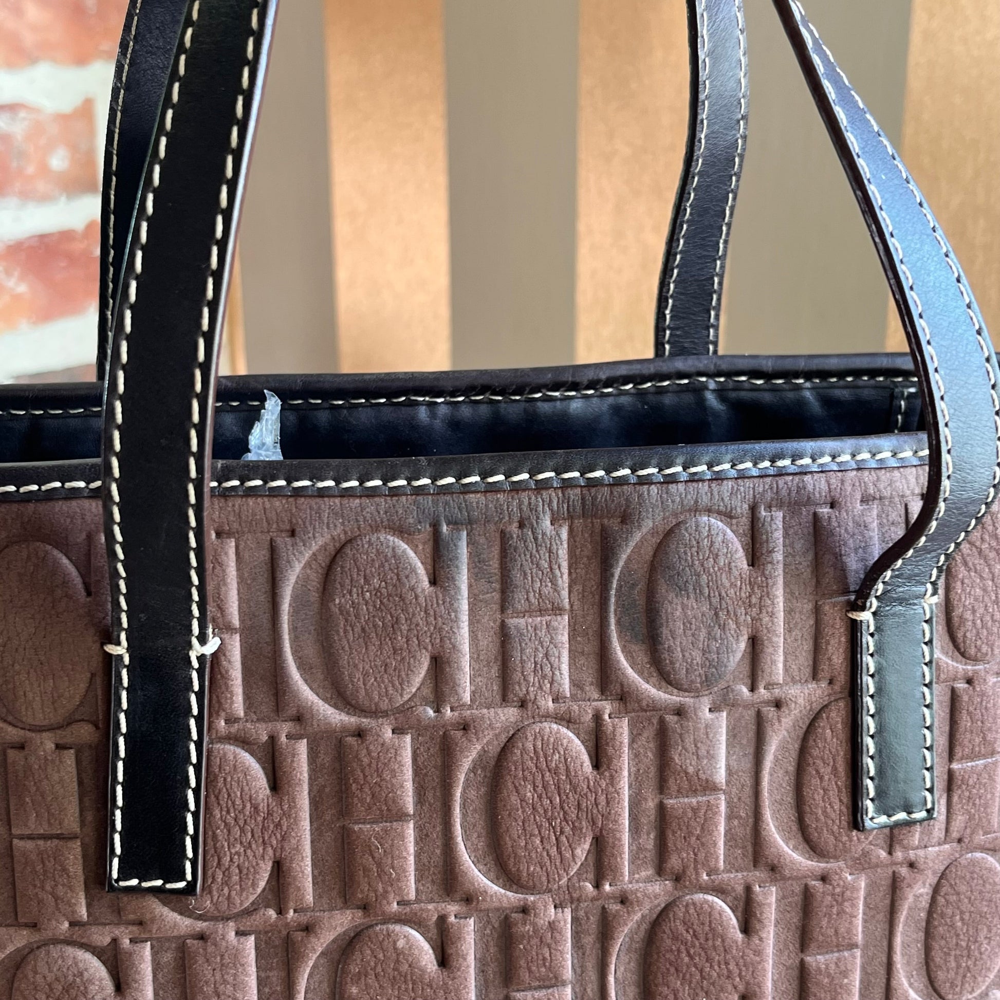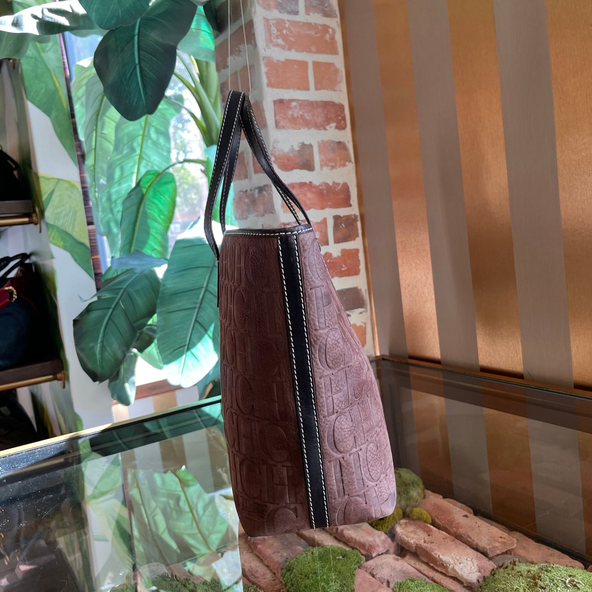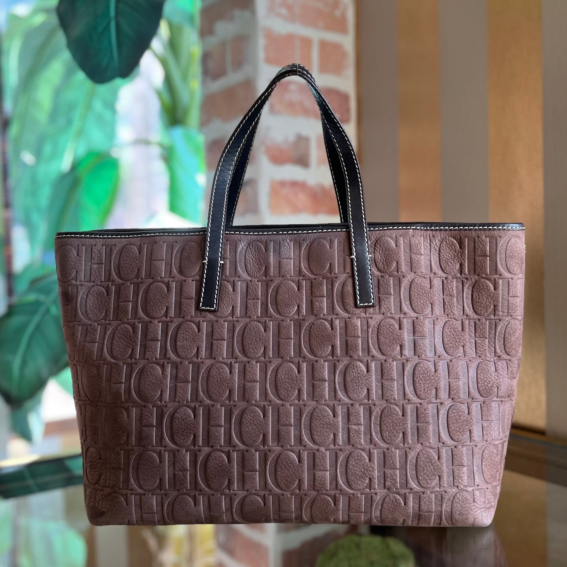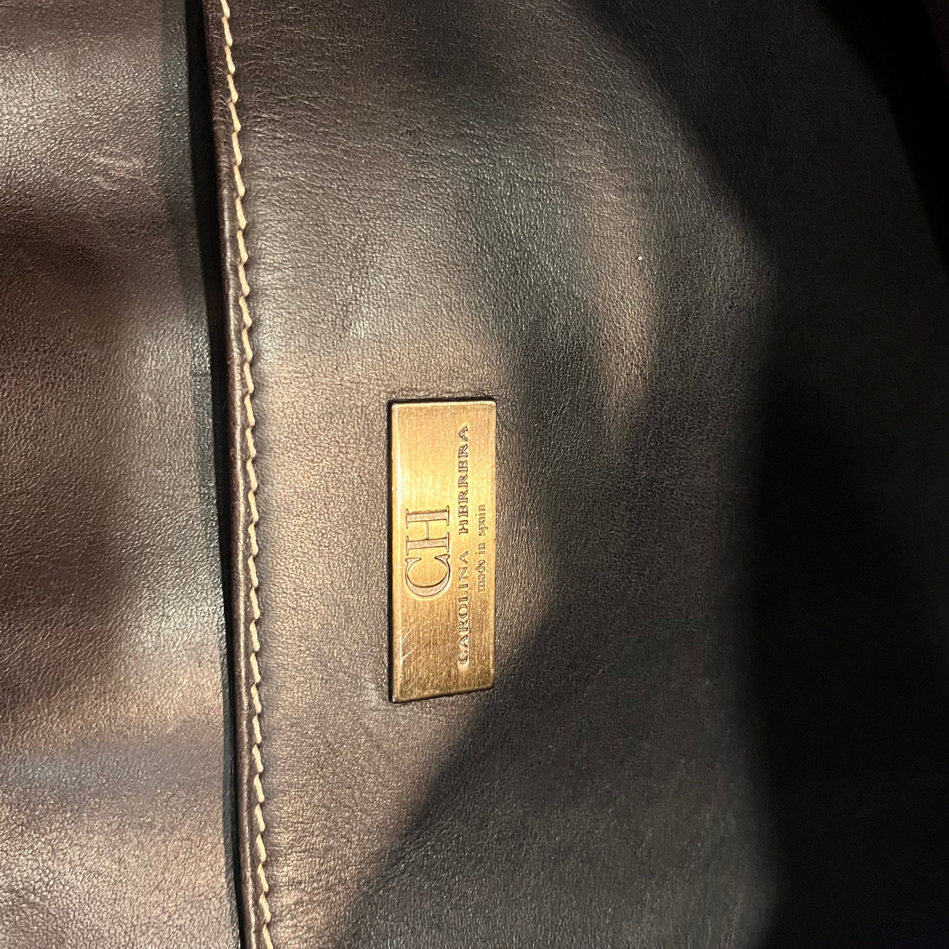 CAROLINA HERRERA Shopper Brown Monogram Leather Tote