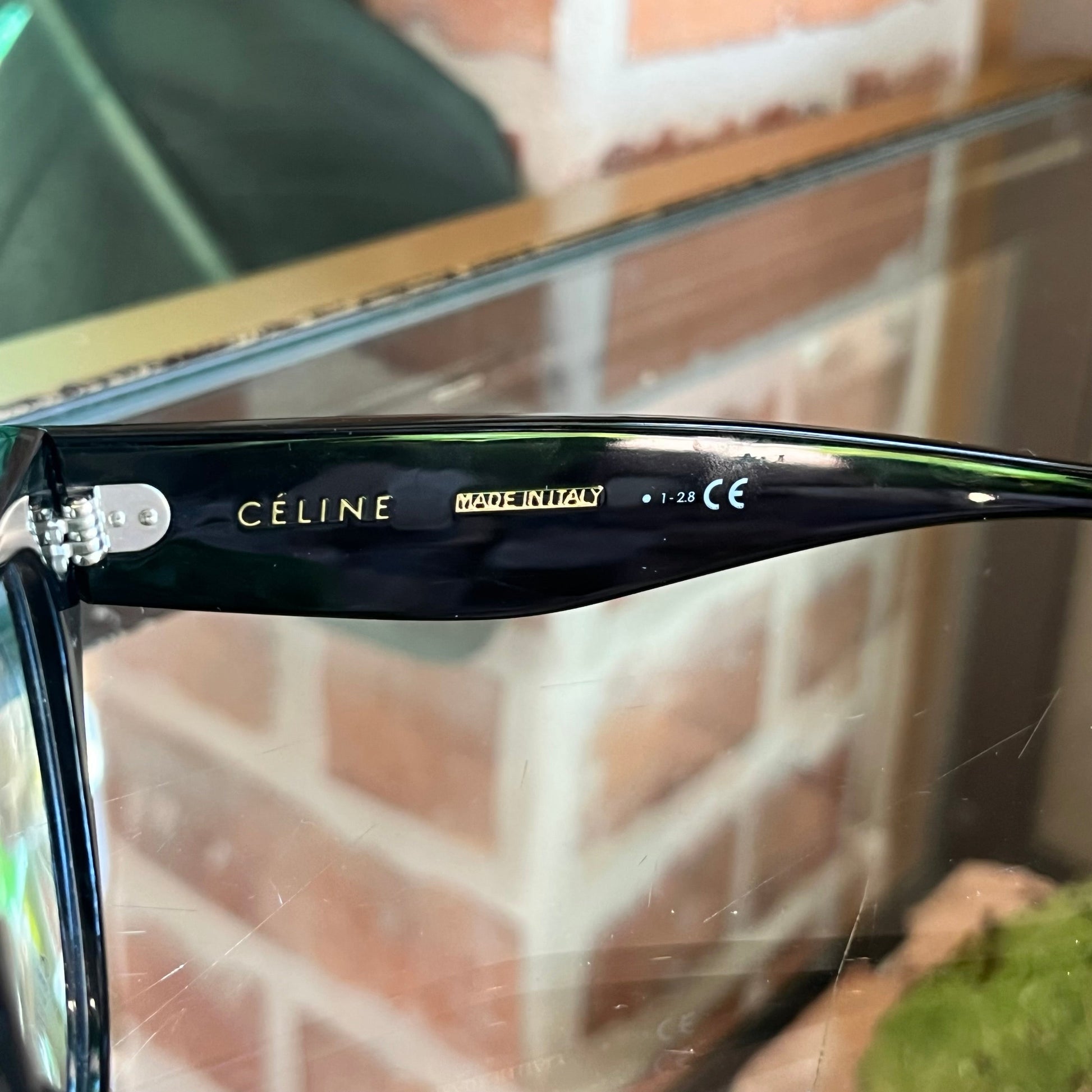 A masterclass in Parisian minimalism, these cat-eye glasses feature Celine's sculpted acetate frames with razor-sharp angles for a modern twist on retro allure. The subtle gradient lenses and gold-tone hardware nod to the maison's love of quiet luxury, while the lightweight design ensures all-day sophistication—perfect for those who view the world through a lens of understated cool. B+ Very Good Condition