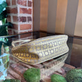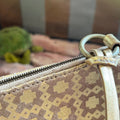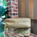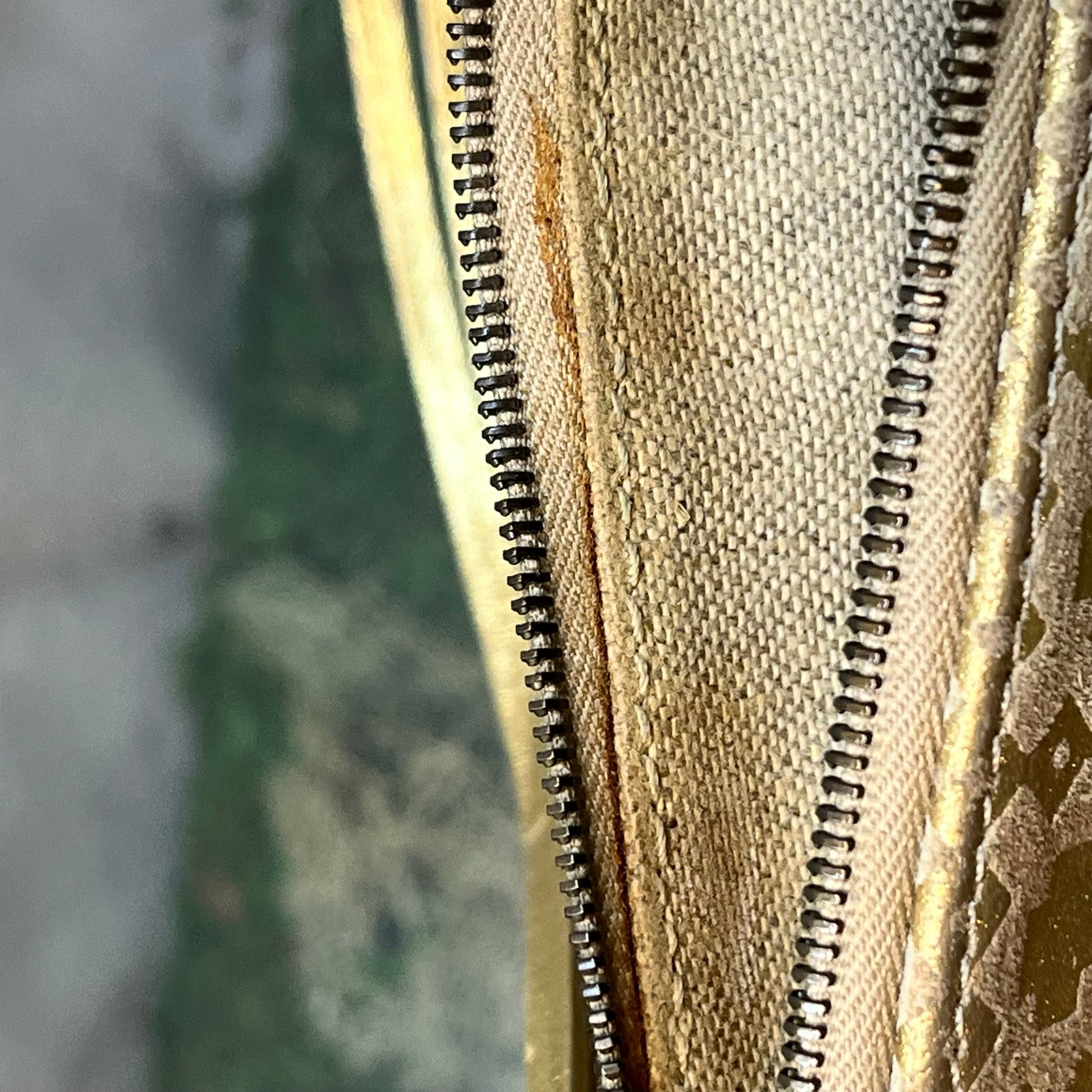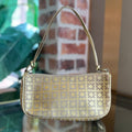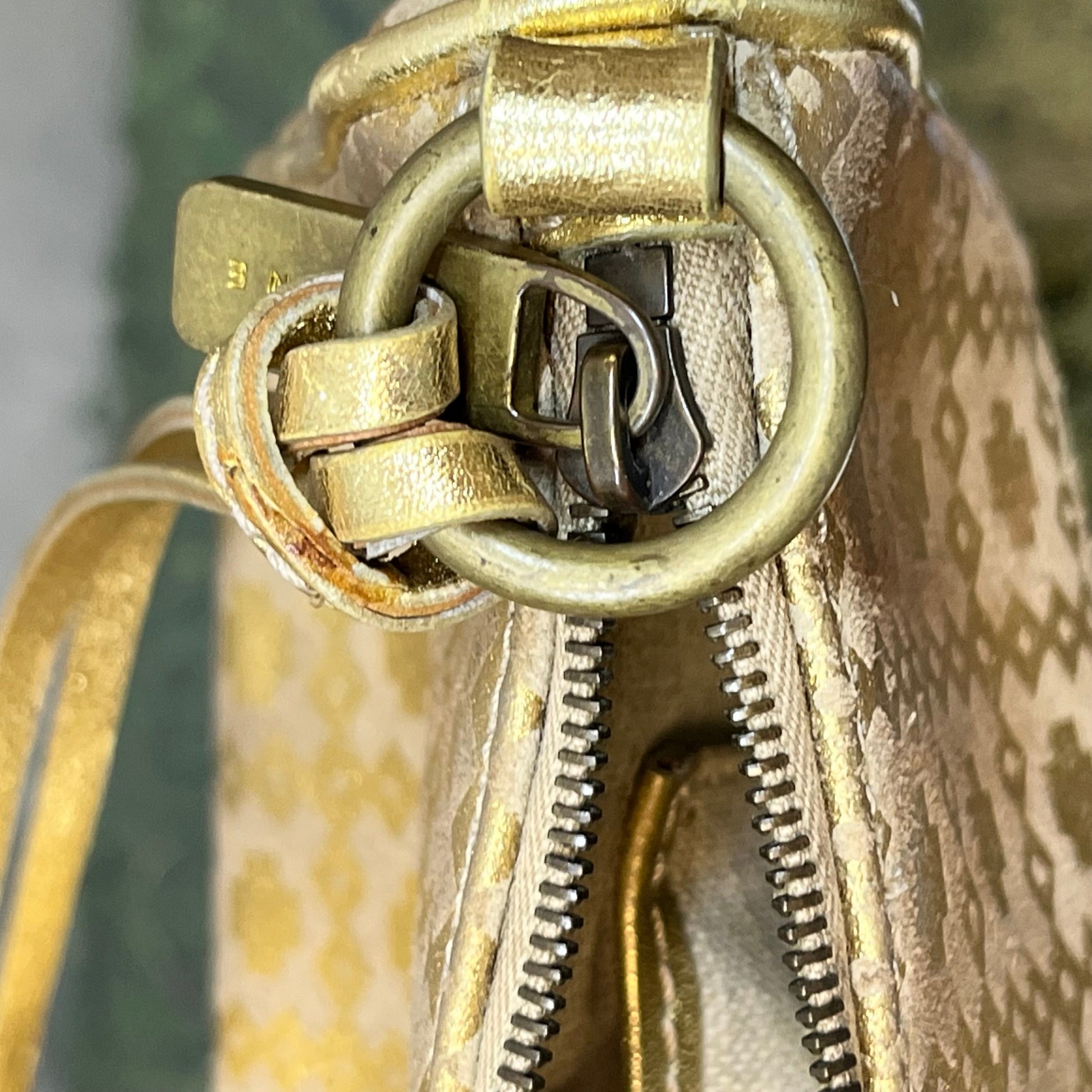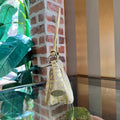 A vintage treasure with modern appeal, this shoulder bag shines in metallic gold suede leather for a luxe yet effortless vibe. The sleek silhouette and supple texture make it a standout day-to-night piece. B+ Very Good Condition