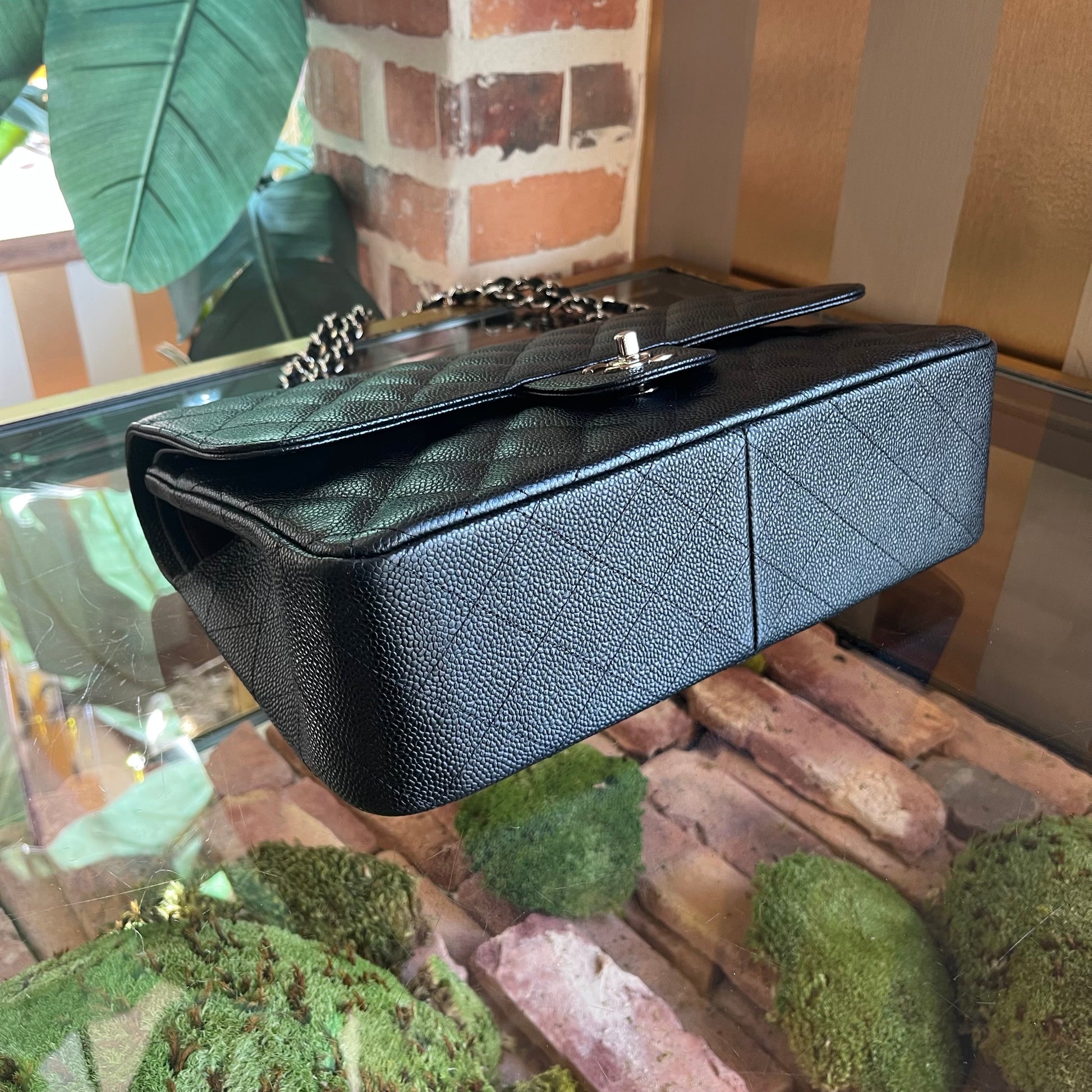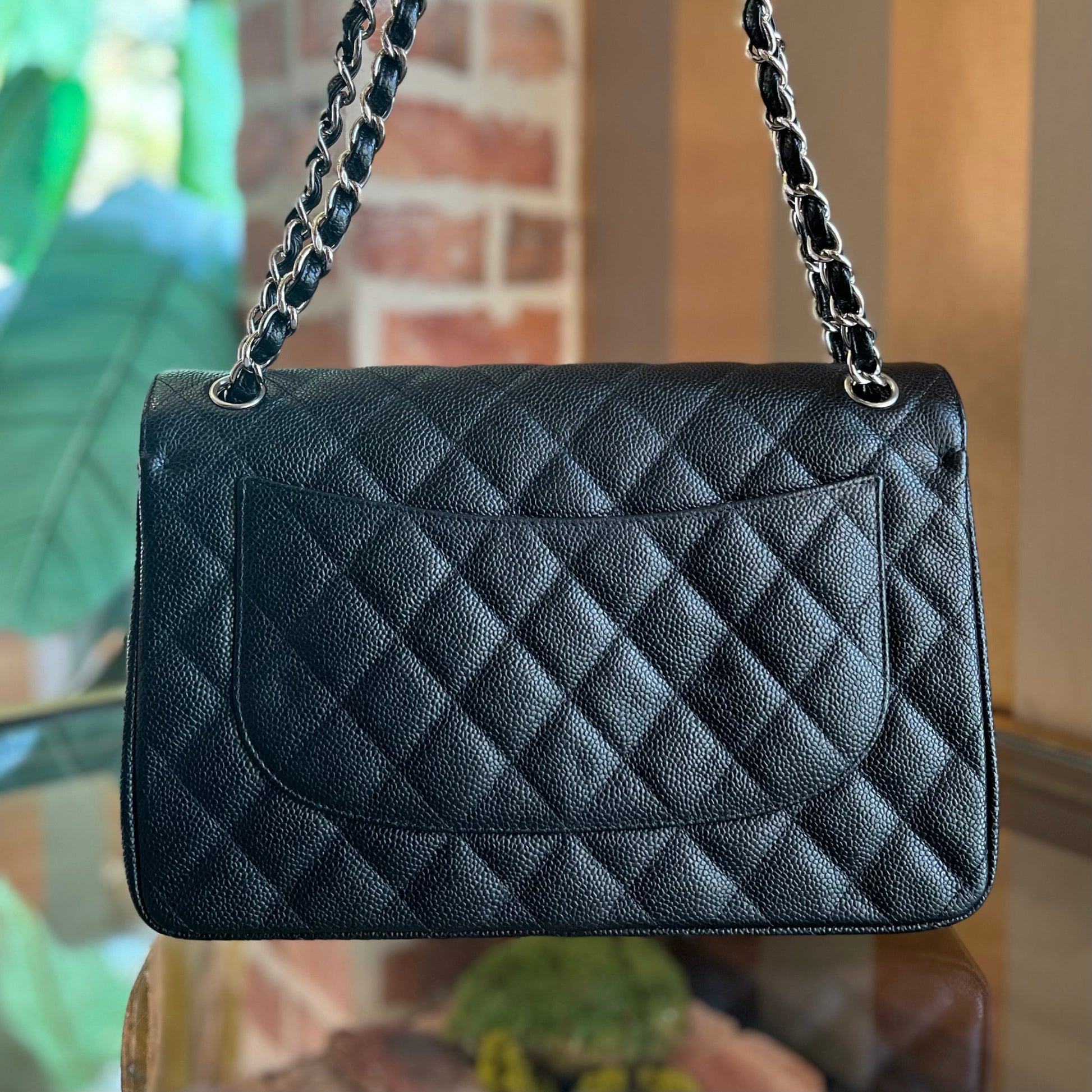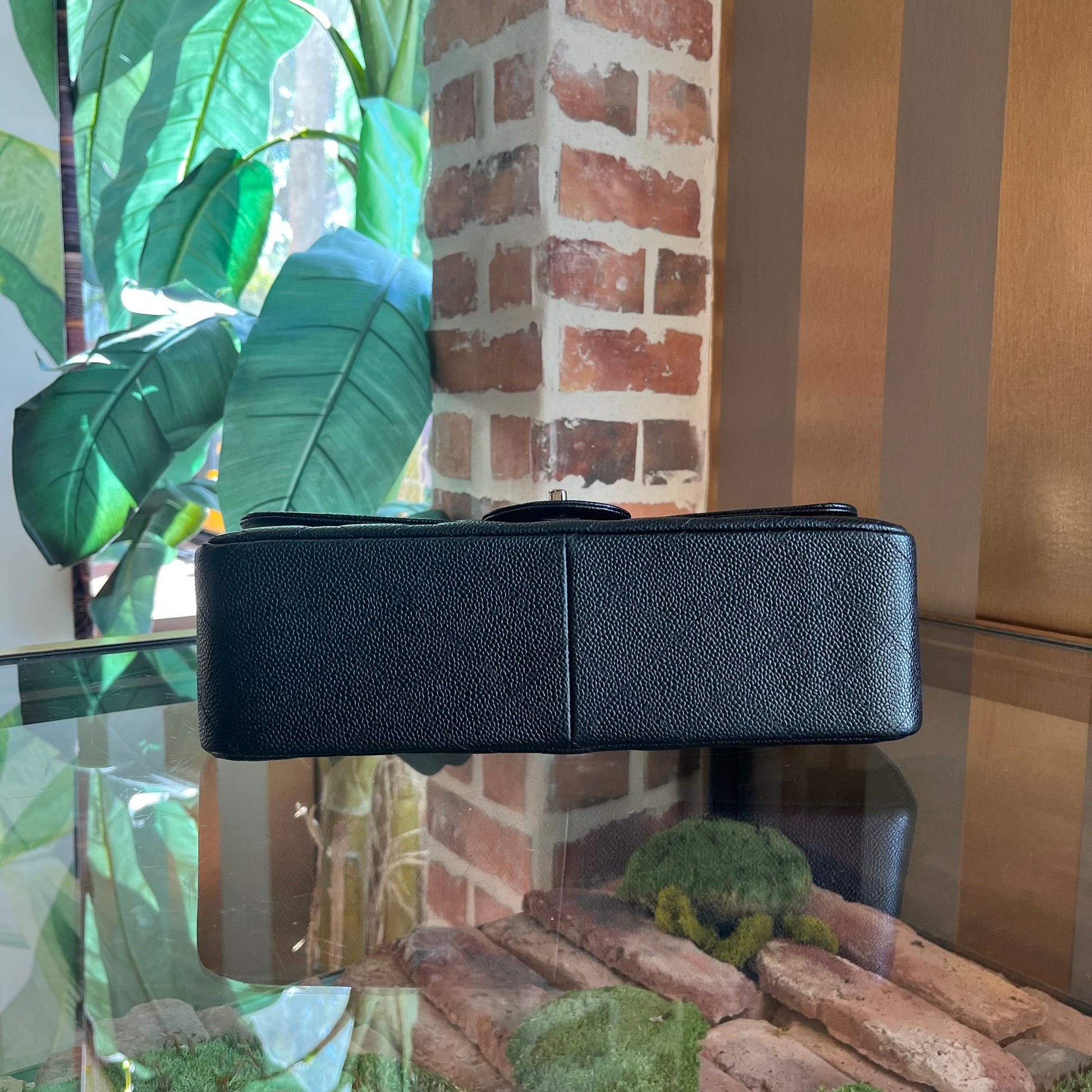 CHANEL Double Flap Jumbo Black Caviar Leather Shoulder Bag