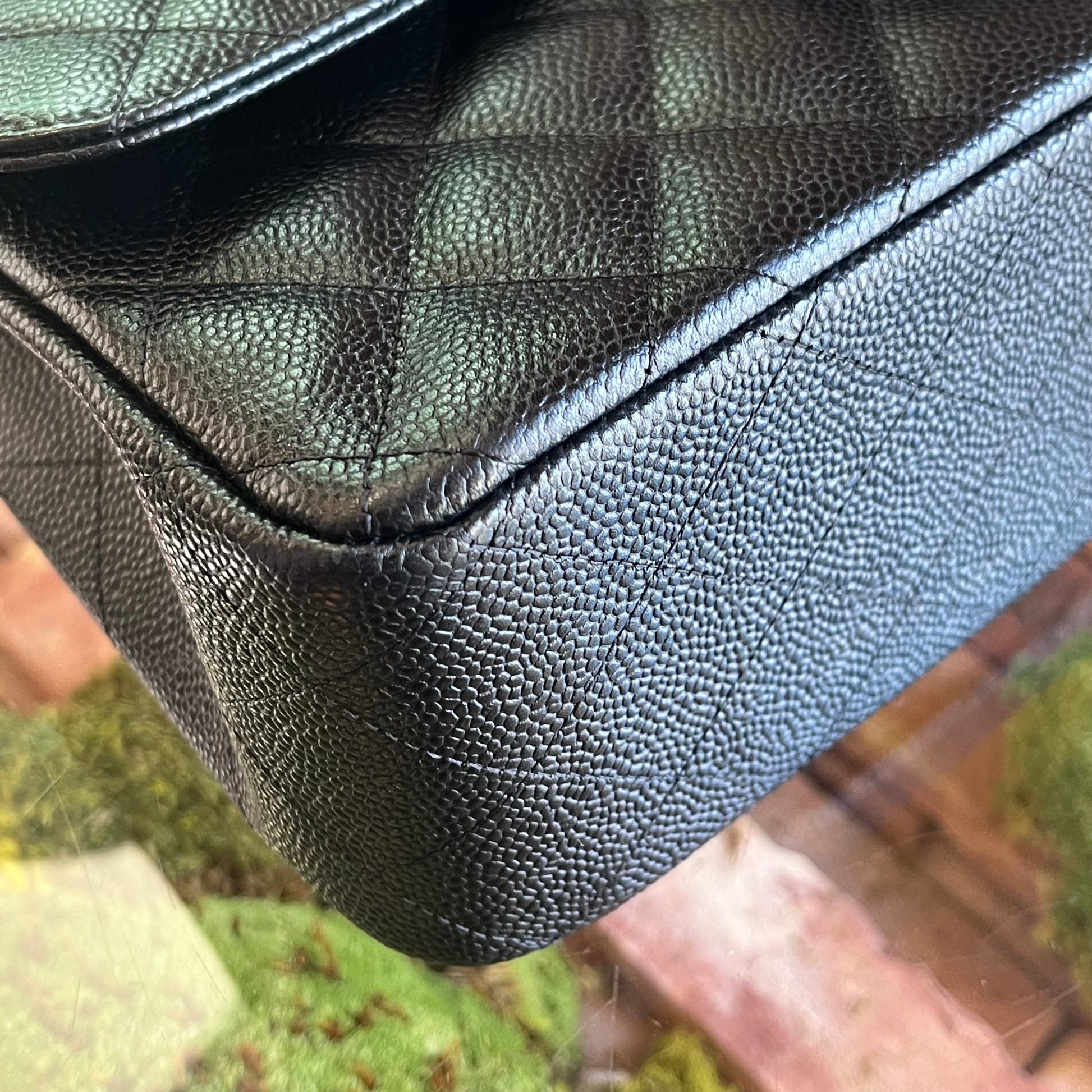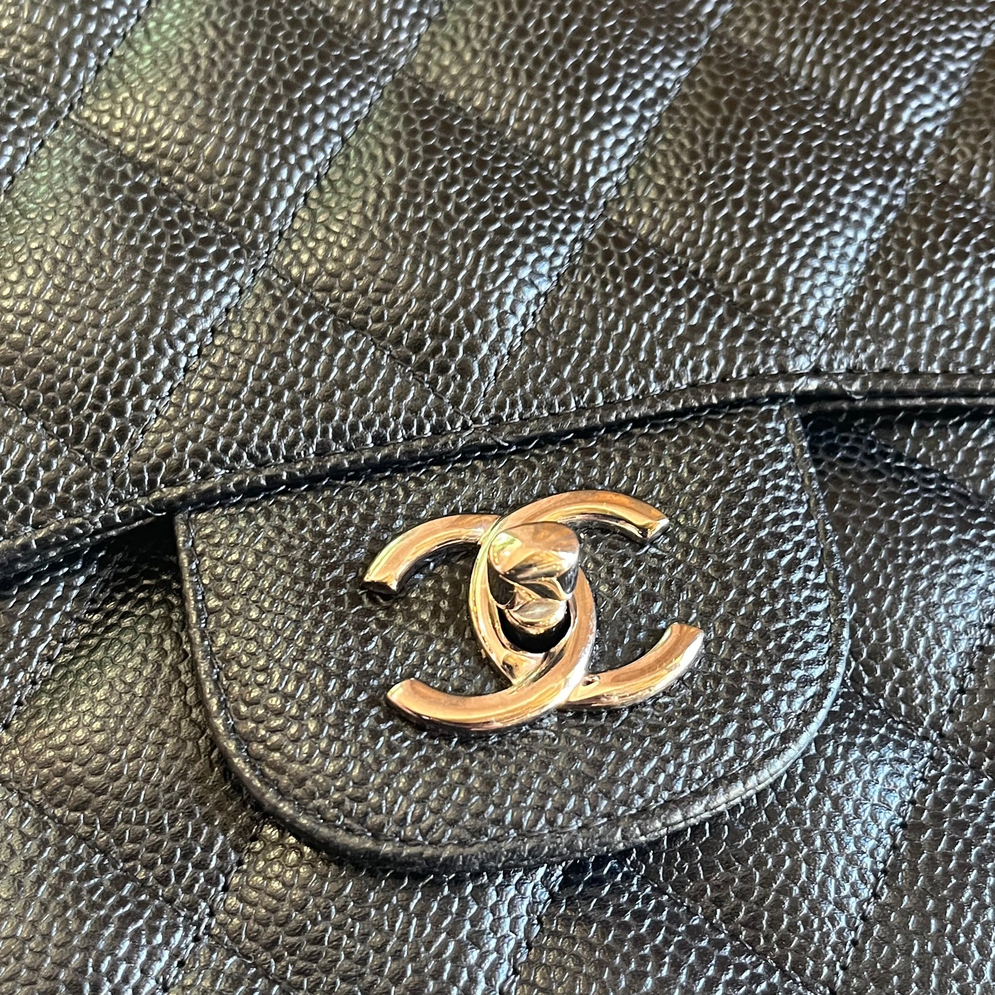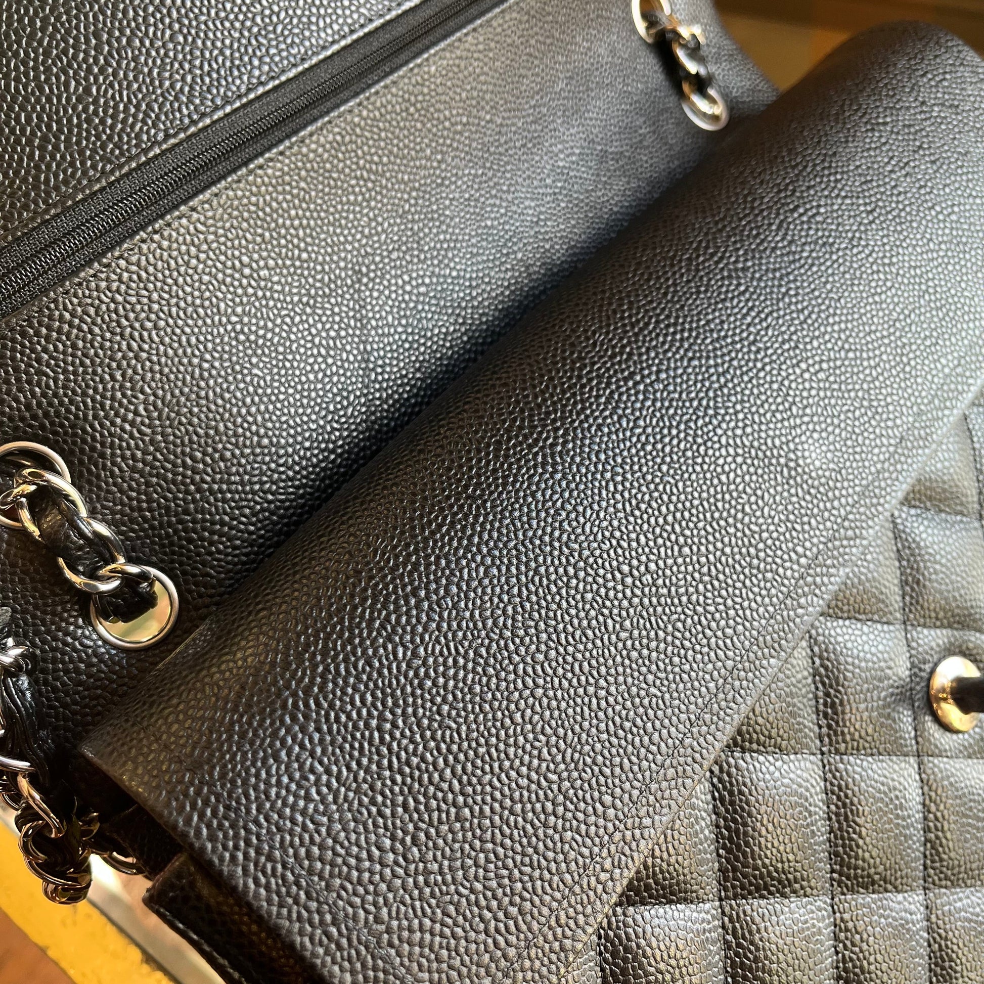 CHANEL Double Flap Jumbo Black Caviar Leather Shoulder Bag