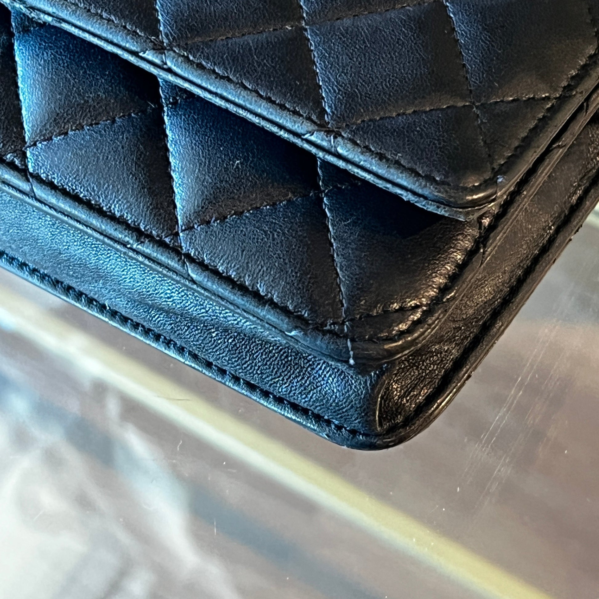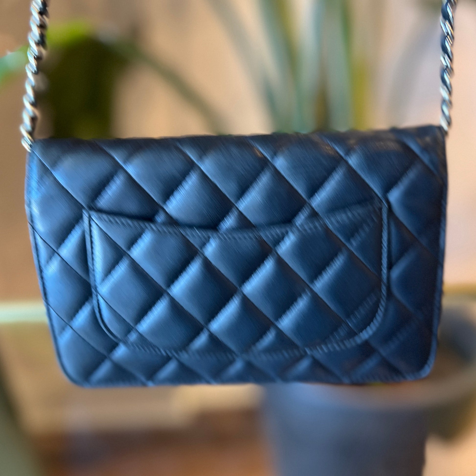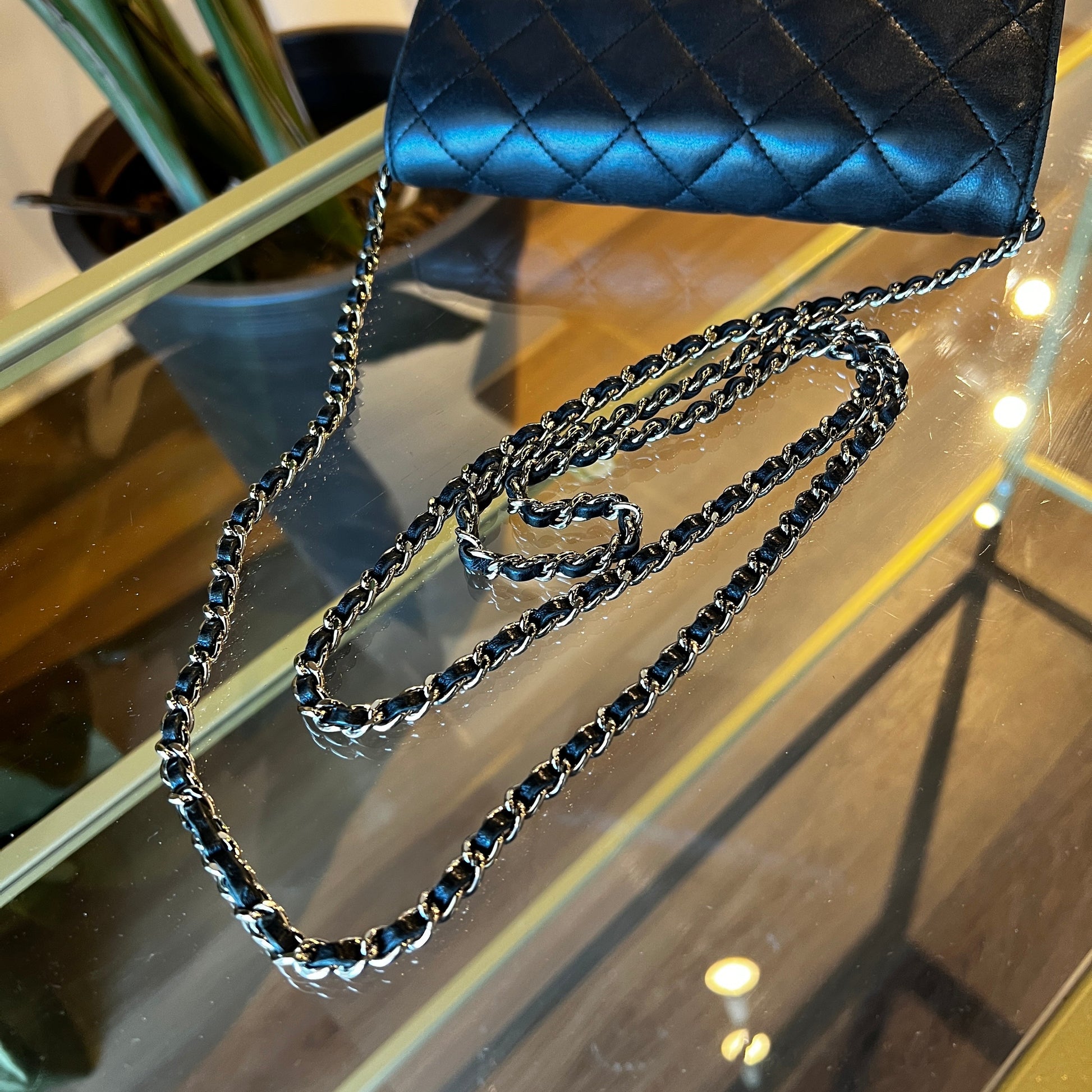 - Interlocking CC Logo, Quilted Pattern & Chain-Link Accent