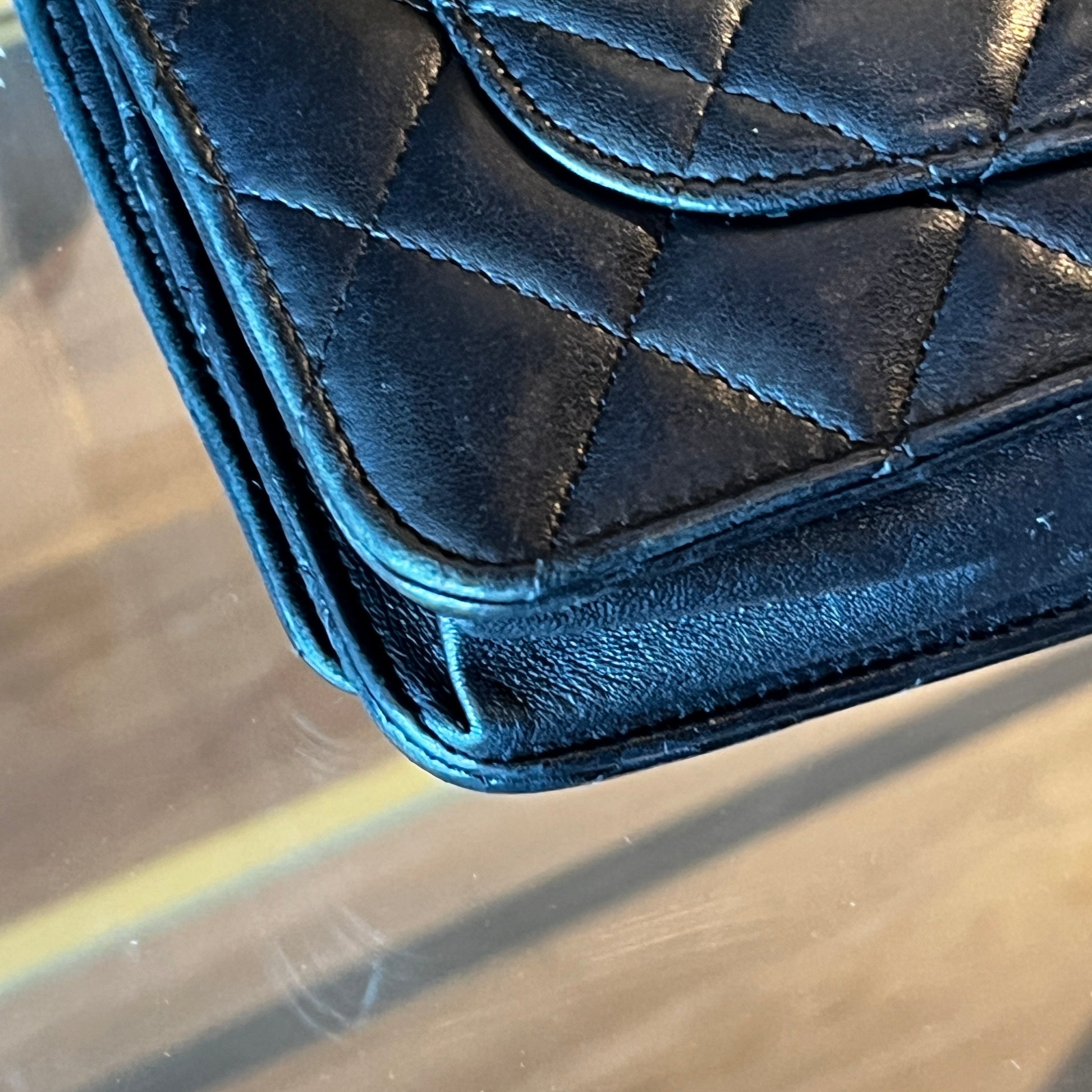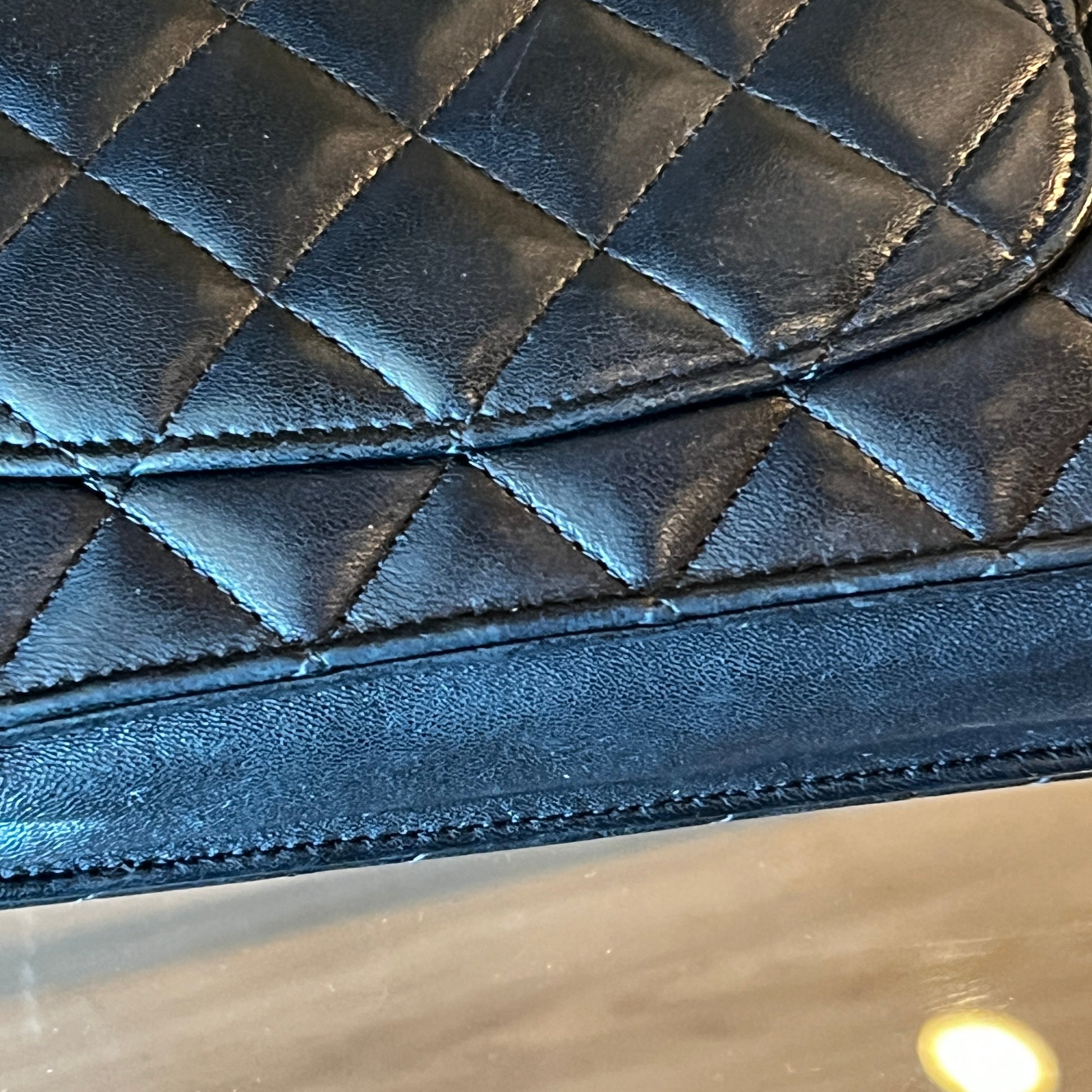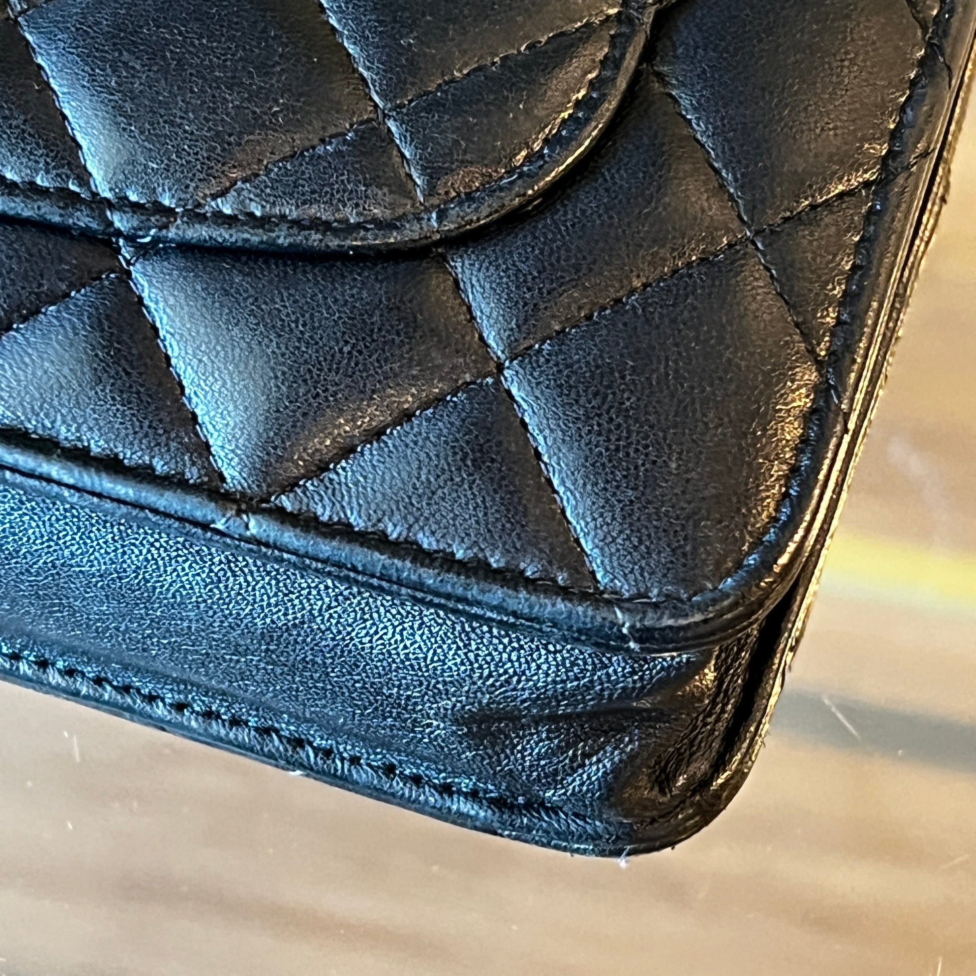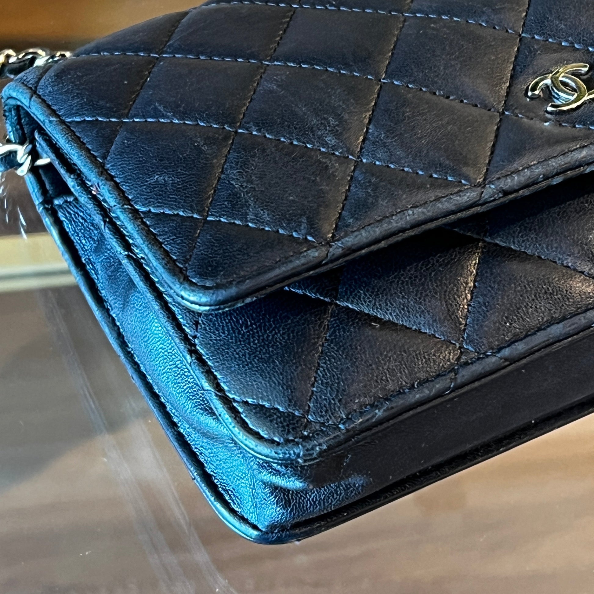 - Interlocking CC Logo, Quilted Pattern & Chain-Link Accent