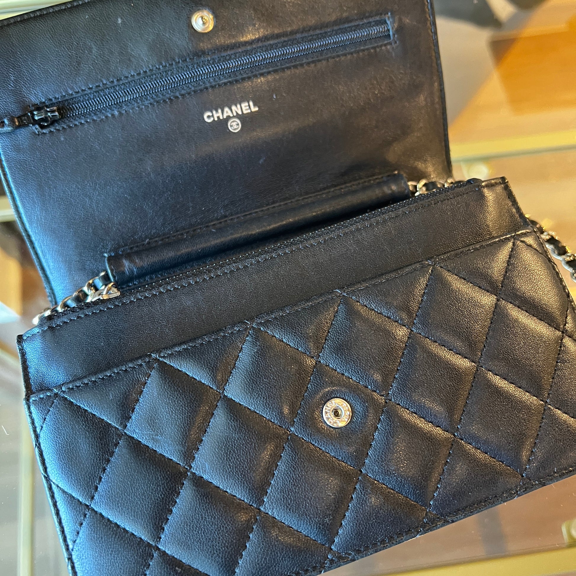 CHANEL Interlocking CC Black Wallet On Chain