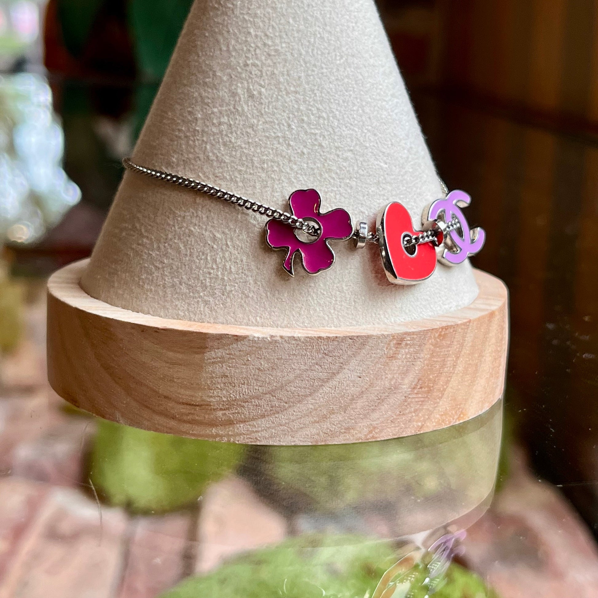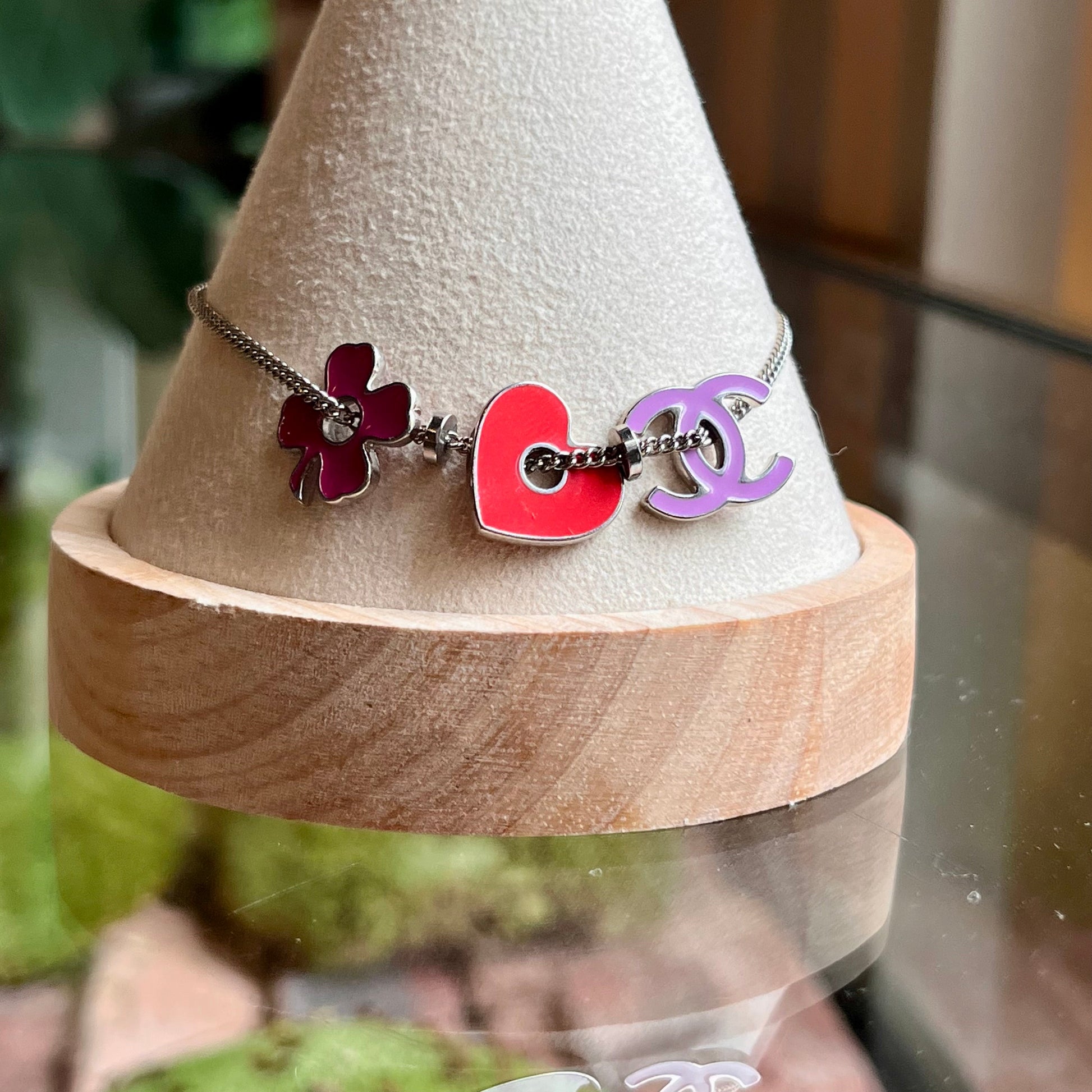 CHANEL CC Clover Heart Silver Enamel Bracelet