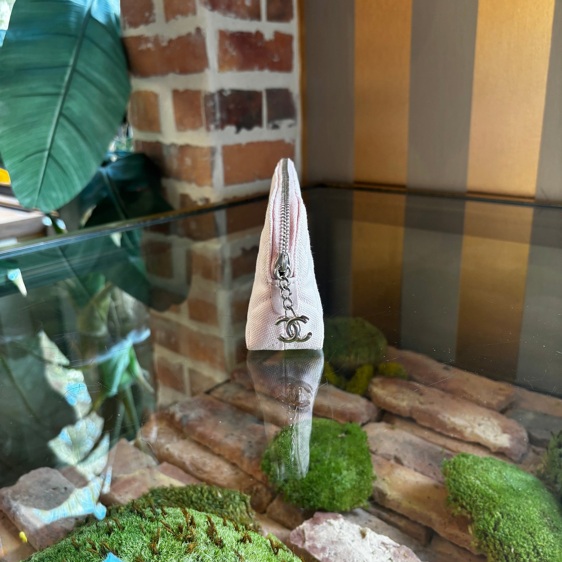 CHANEL Light Pink Quilted Canvas Cosmetic Bag