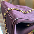 The rich plum color adds a touch of sophistication, while the iconic CHANEL logo and gold chain strap elevate the overall look. Overall Very Good Condition B+.