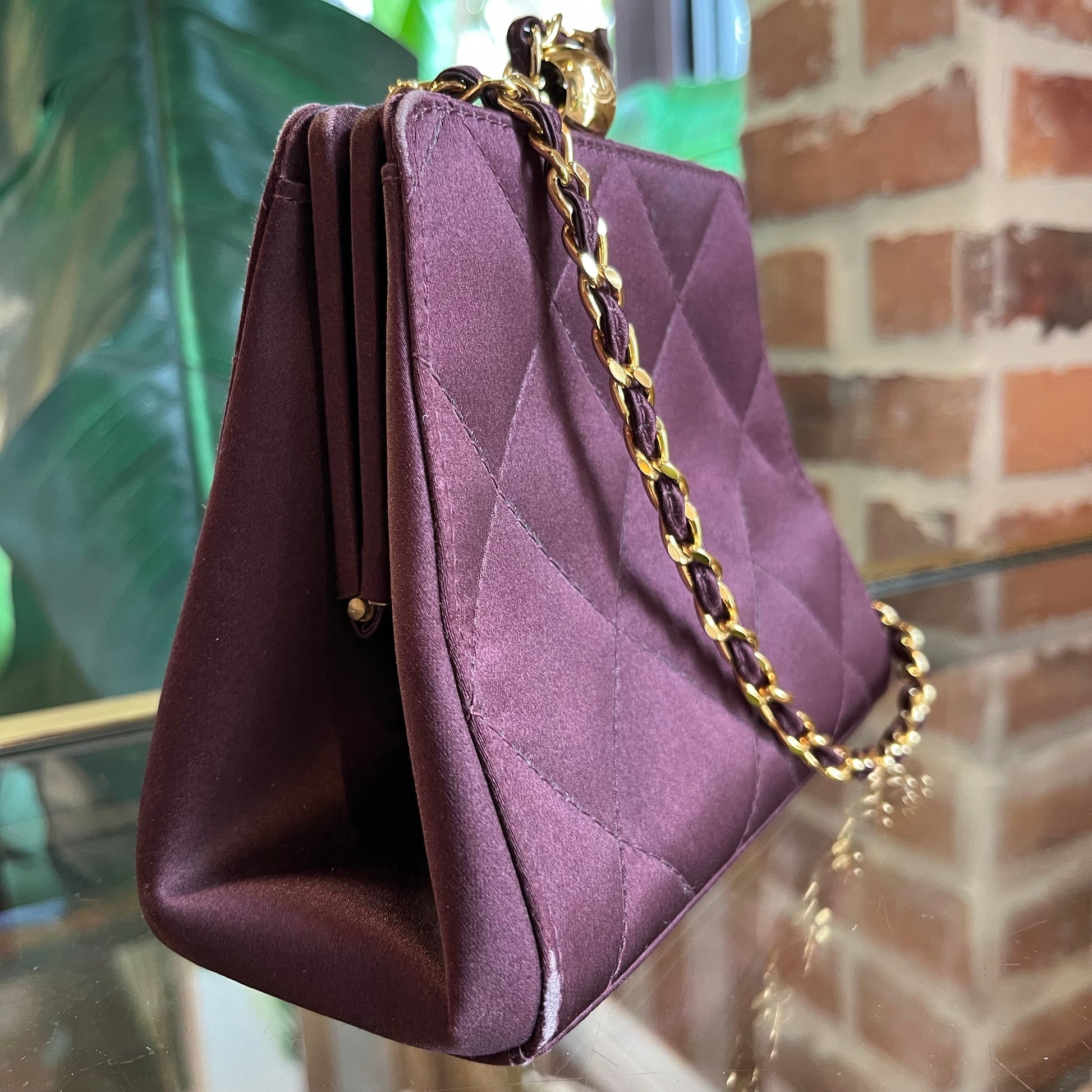 Condition Grade: Perfect for a night out, the deep plum color adds a touch of glamour to any outfit. Carry your essentials in style with this timeless piece from the world-renowned brand. Overall in Very Good Condition.