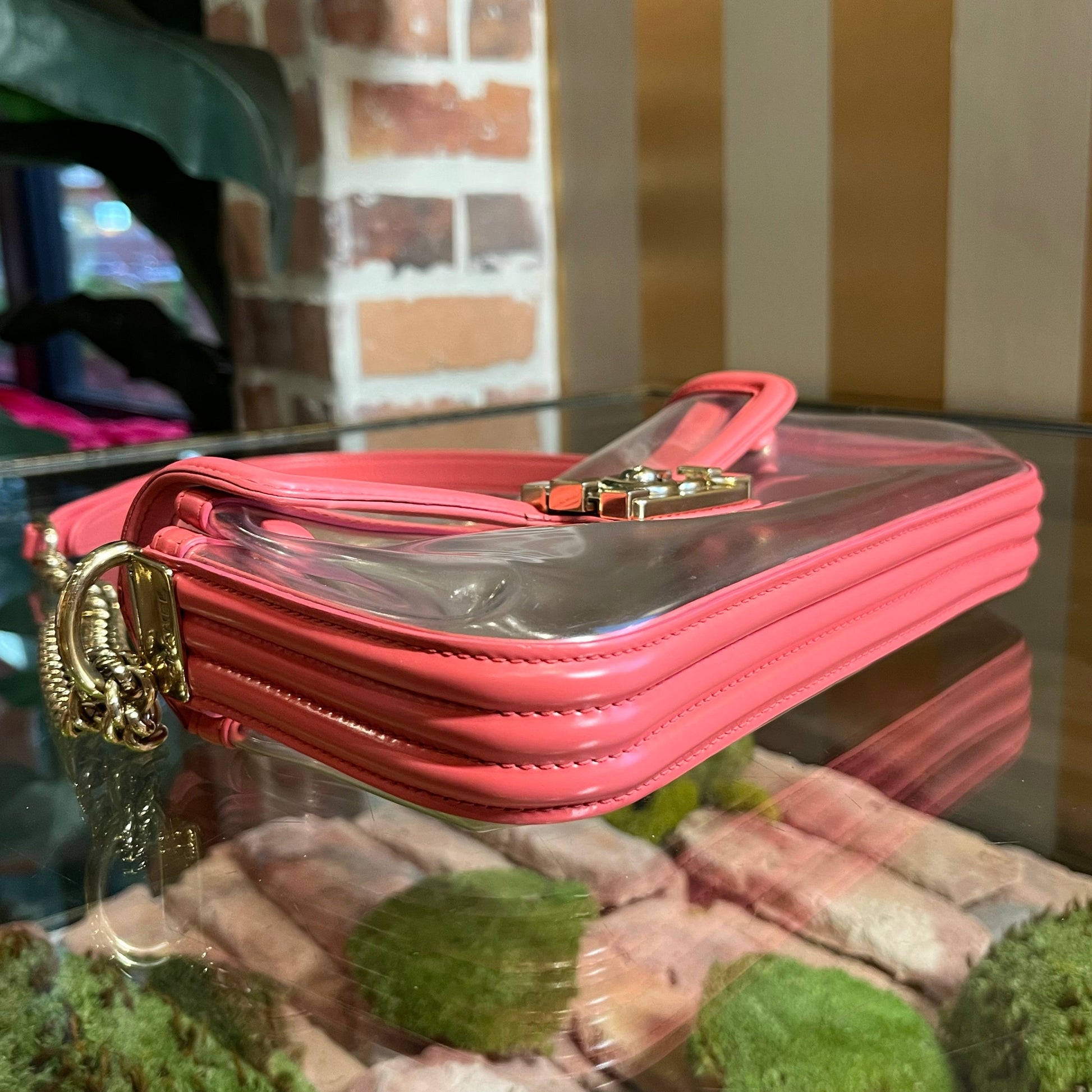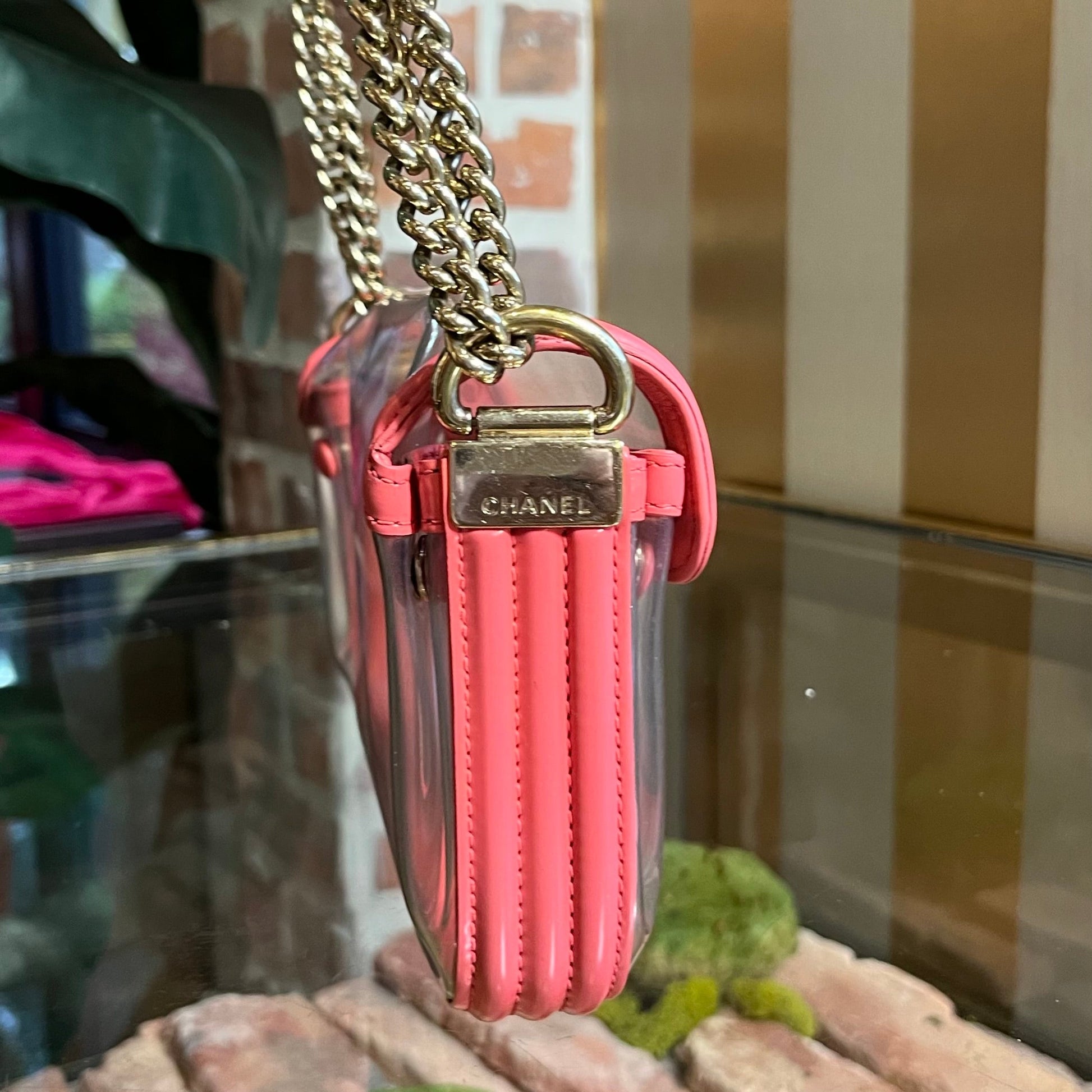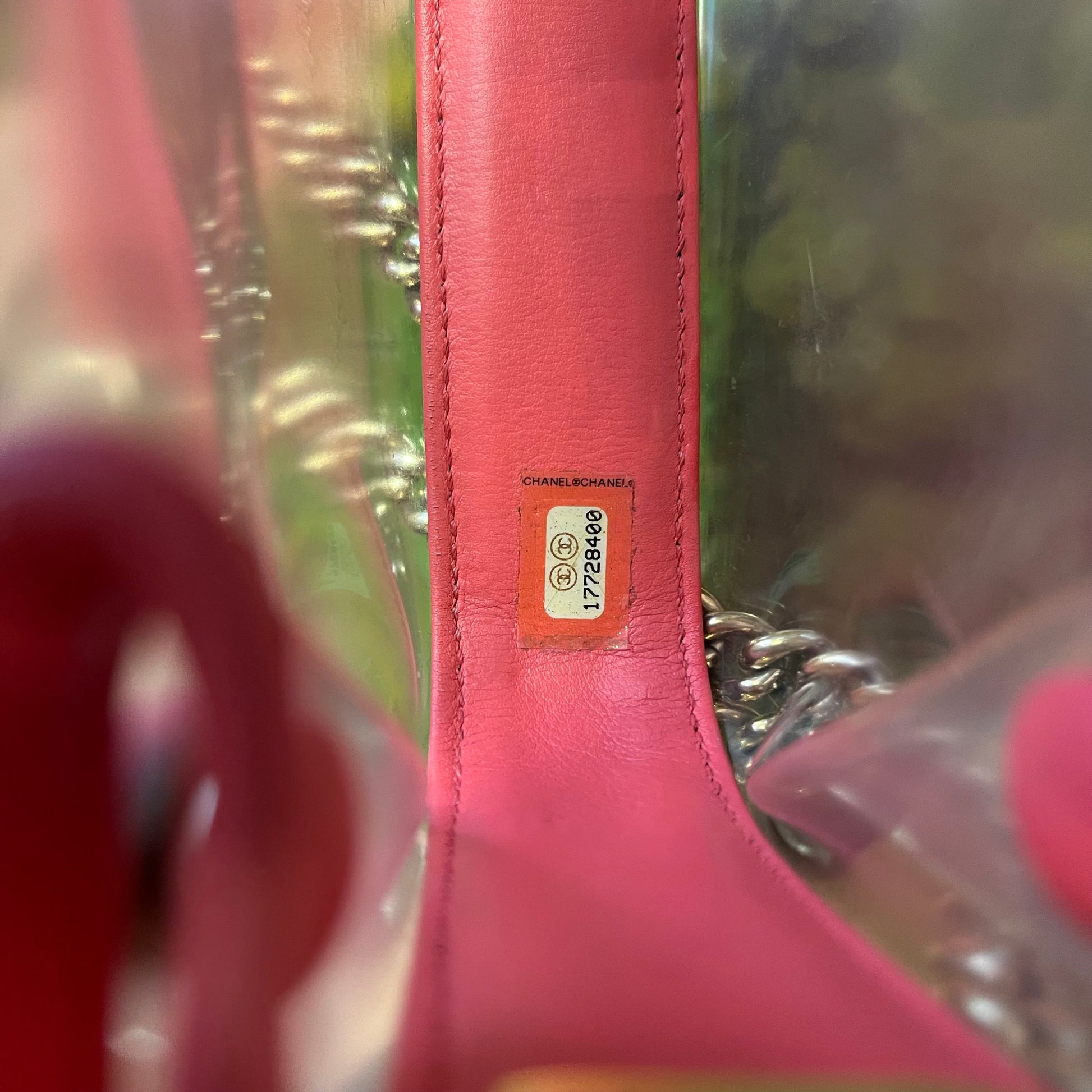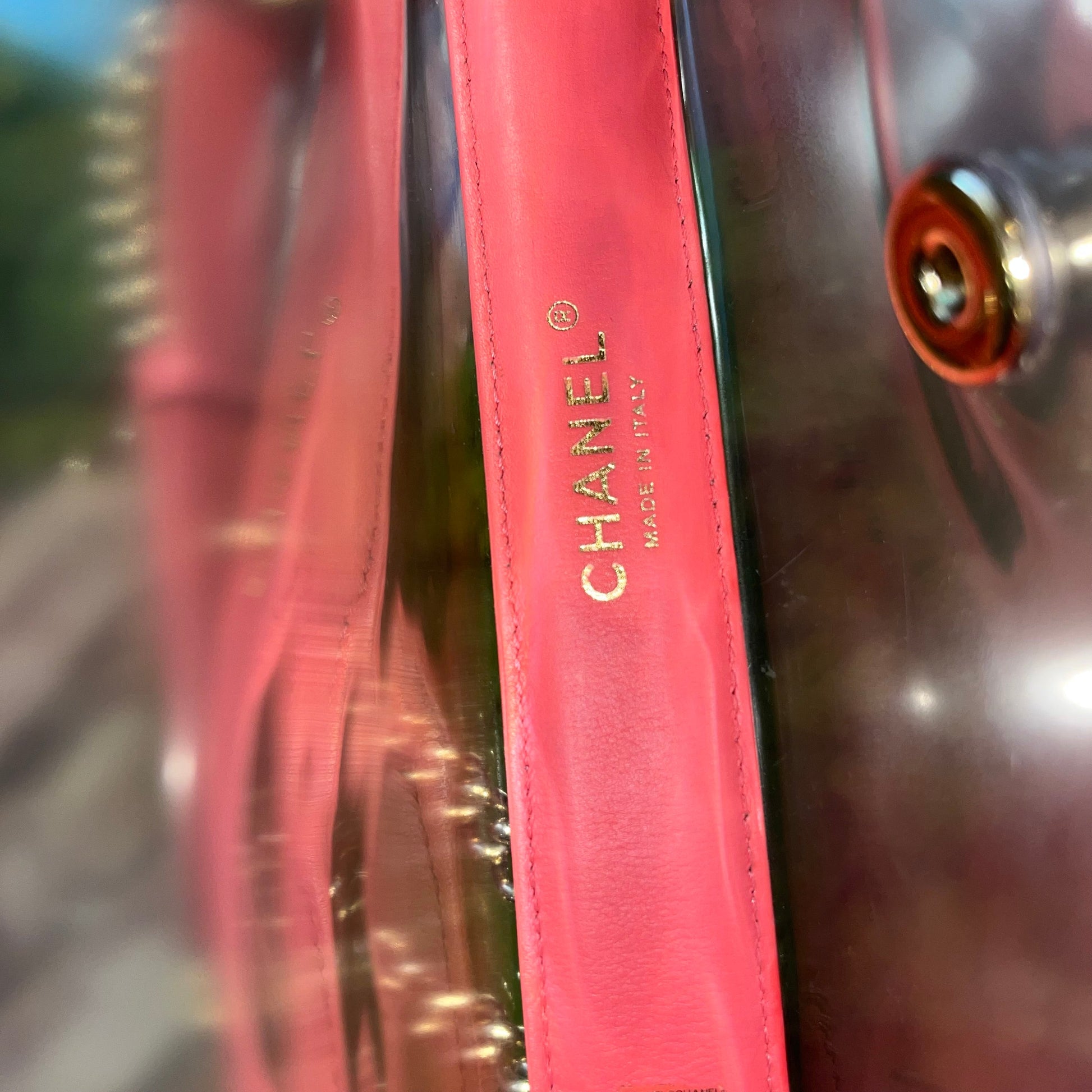 CHANEL Transparent And Pink Vinyl CC Chain Small Shoulder Bag