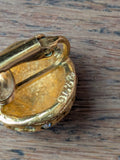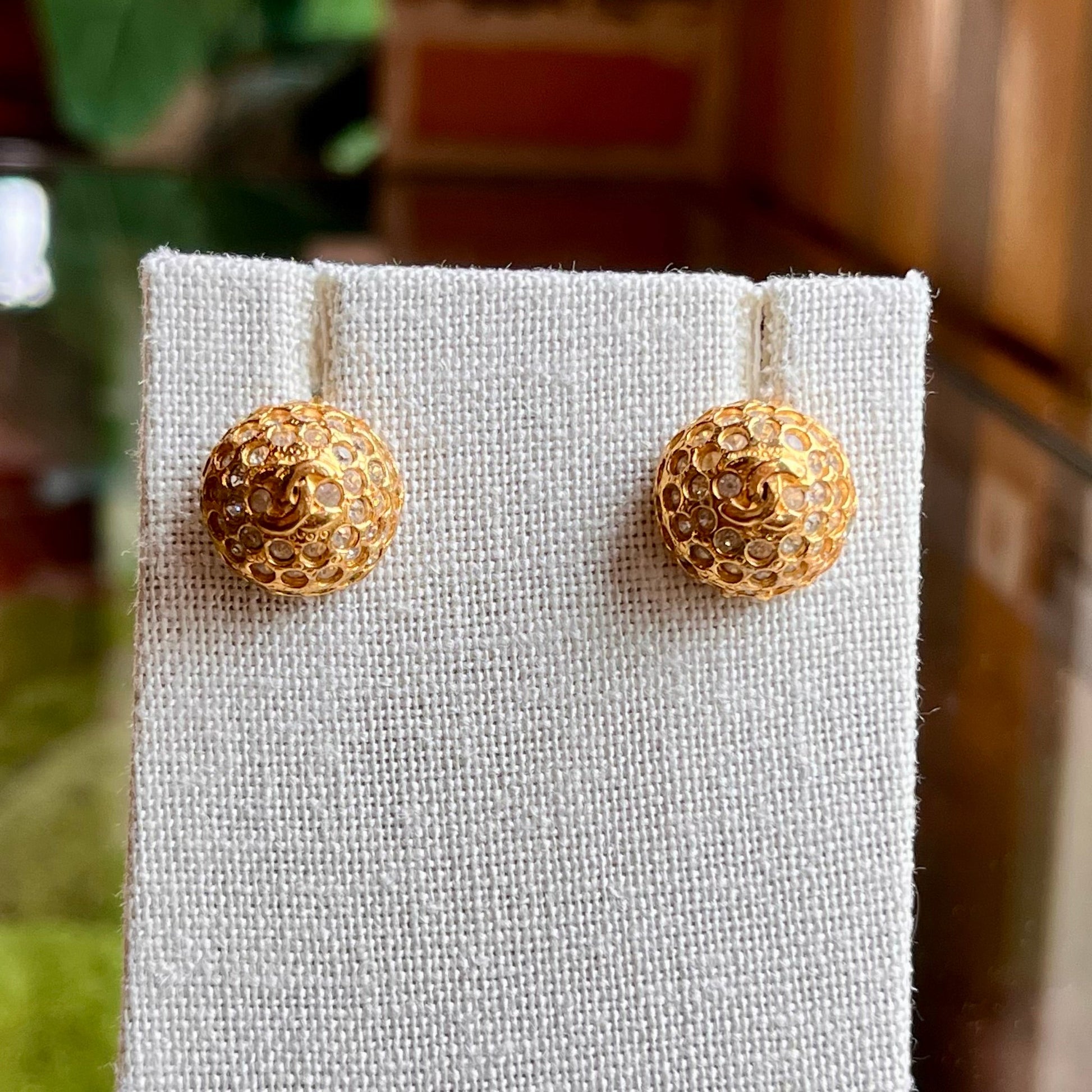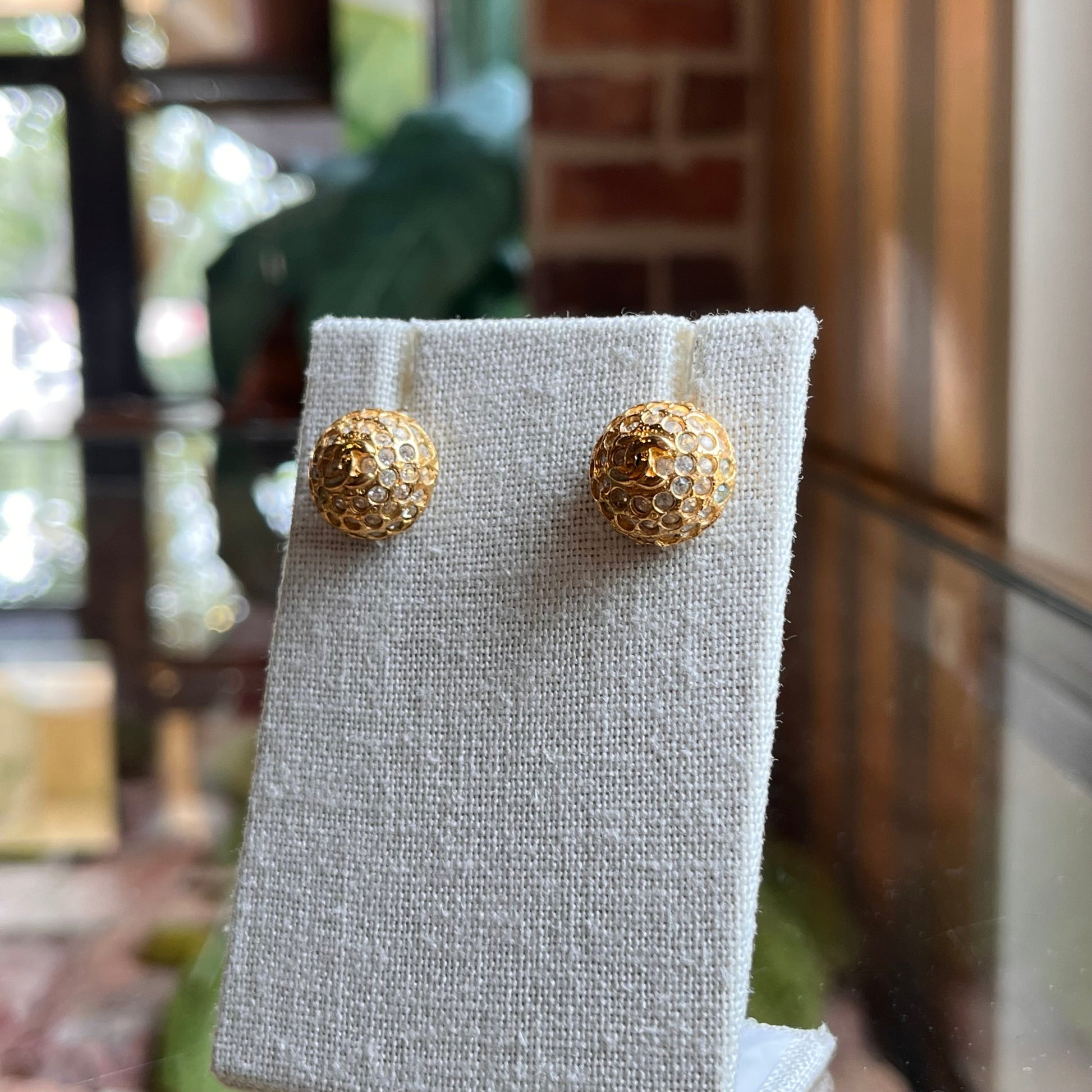 CHANEL CC Clip On Round Gold-Plated Crystal Vintage Earrings