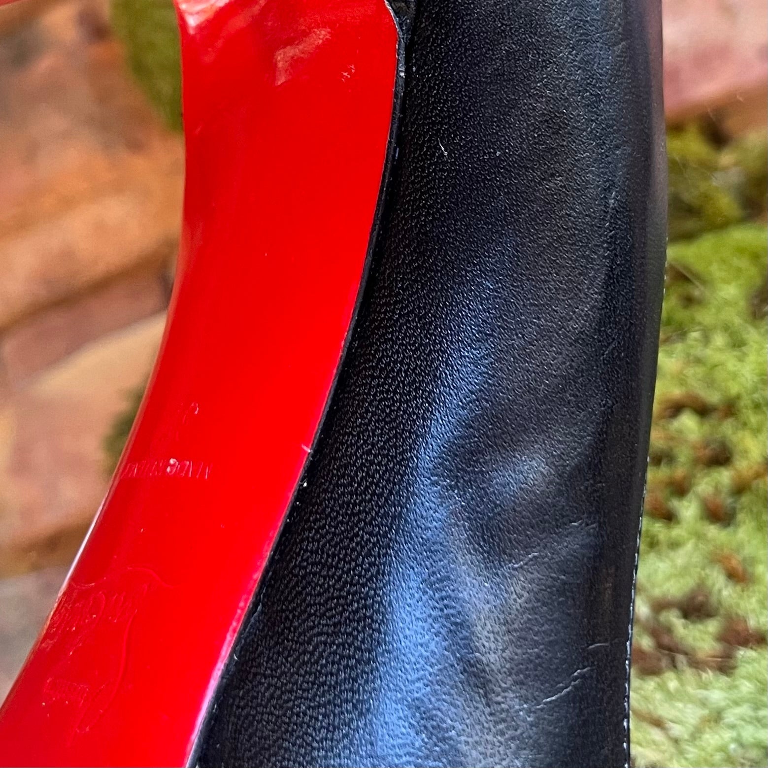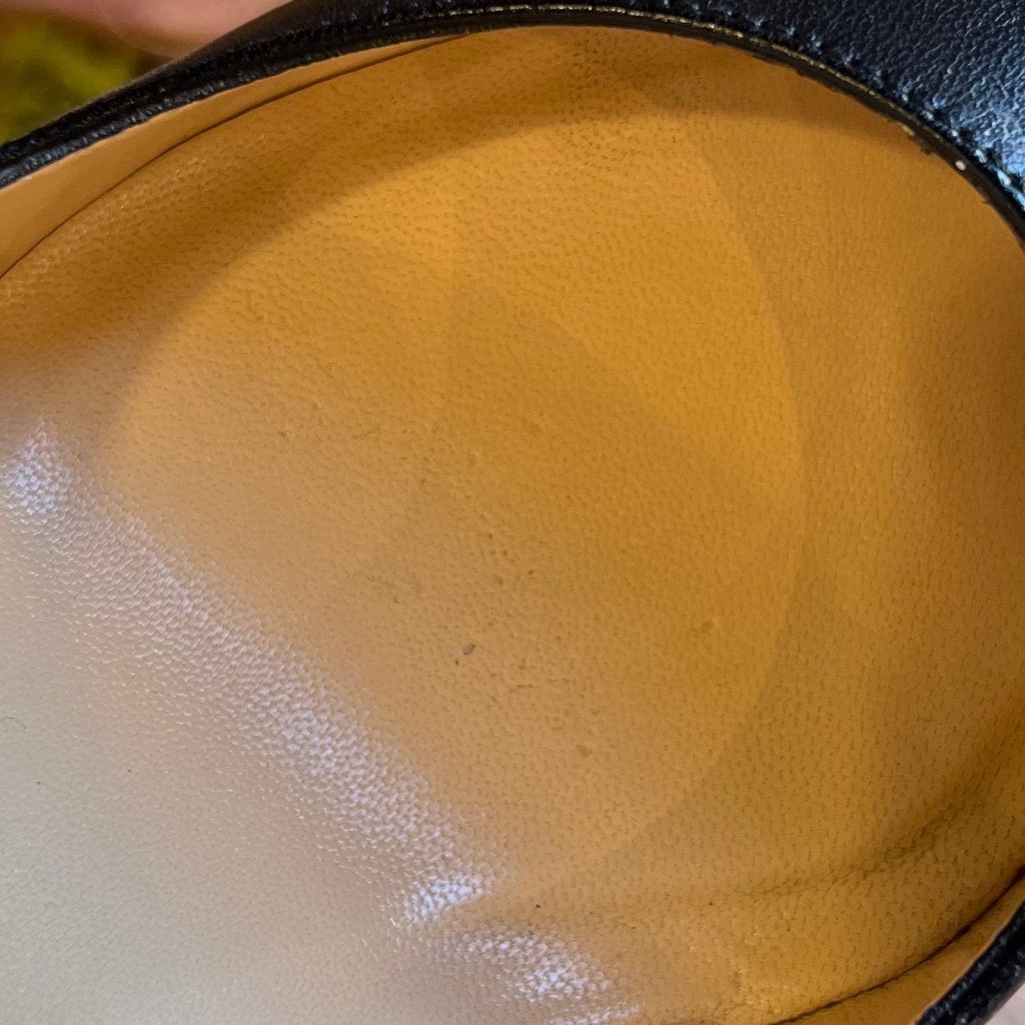 - Exterior: Gentle scuffs around outsole. Protective film on sole. Leather is still smooth and supple. Color is bright and vibrant. Overall very good condition.