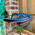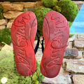 A bold take on summer staples, these flip flops feature Christian Louboutin's signature red rubber sole and edgy spike embellishments. The contoured footbed offers cushioned comfort, while the metallic spikes add a rebellious luxe touch. Perfect for poolside glam or adding attitude to casual looks. B+ Very Good Condition