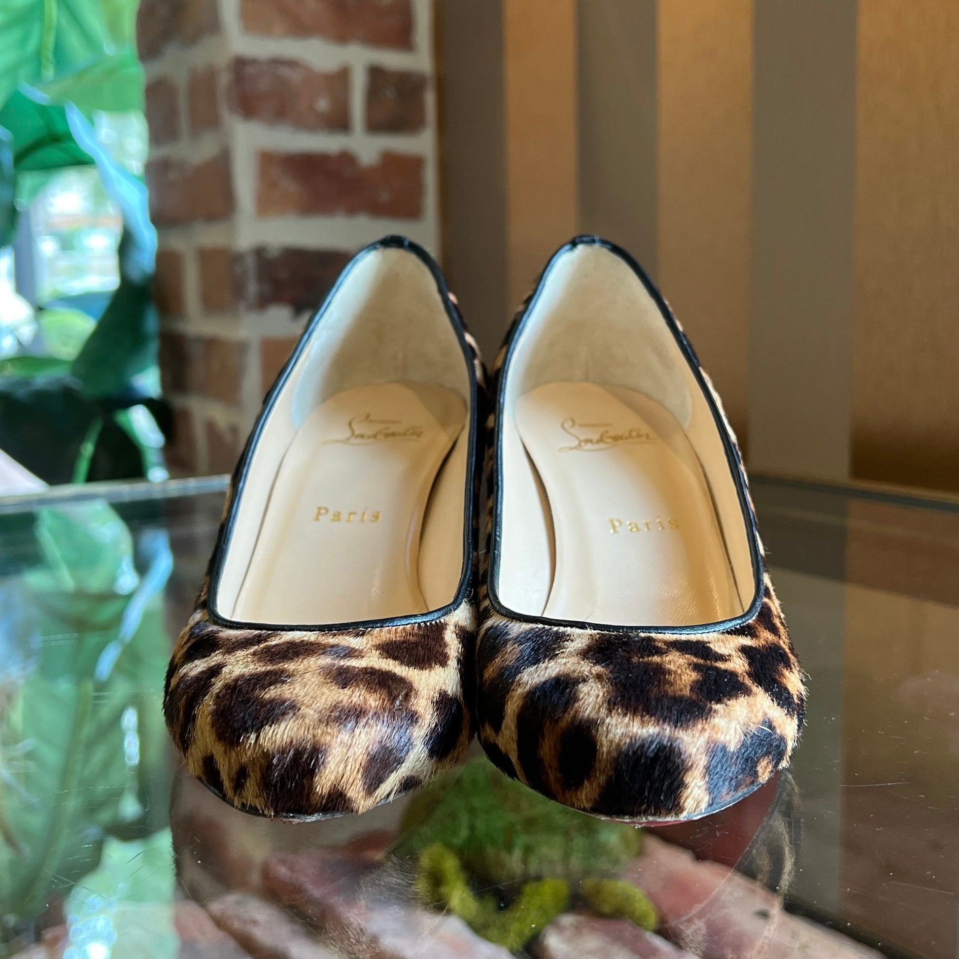 CHRISTIAN LOUBOUTIN Melissa Pony Hair Leopard Print Wedges SZ36.5(6.5US)