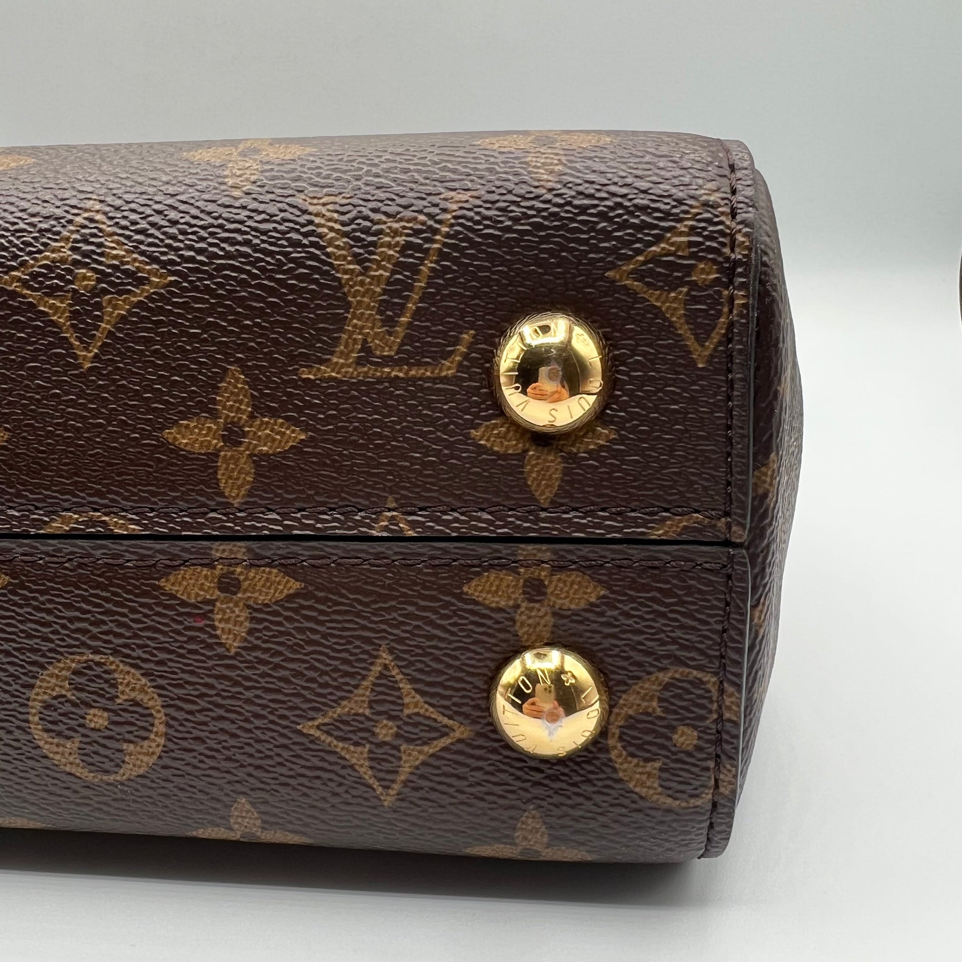 The Cluny BB retails for $2440 before tax, so you are getting a deal! She is a coated canvas top handle that has a huge fuchsia fabric lined compartment that can fit a ton. And she comes with an internal zipped compartment to keep your valuables safe. She also comes with a detachable strap so you can choose to wear her either as a top handle or a crossbody.