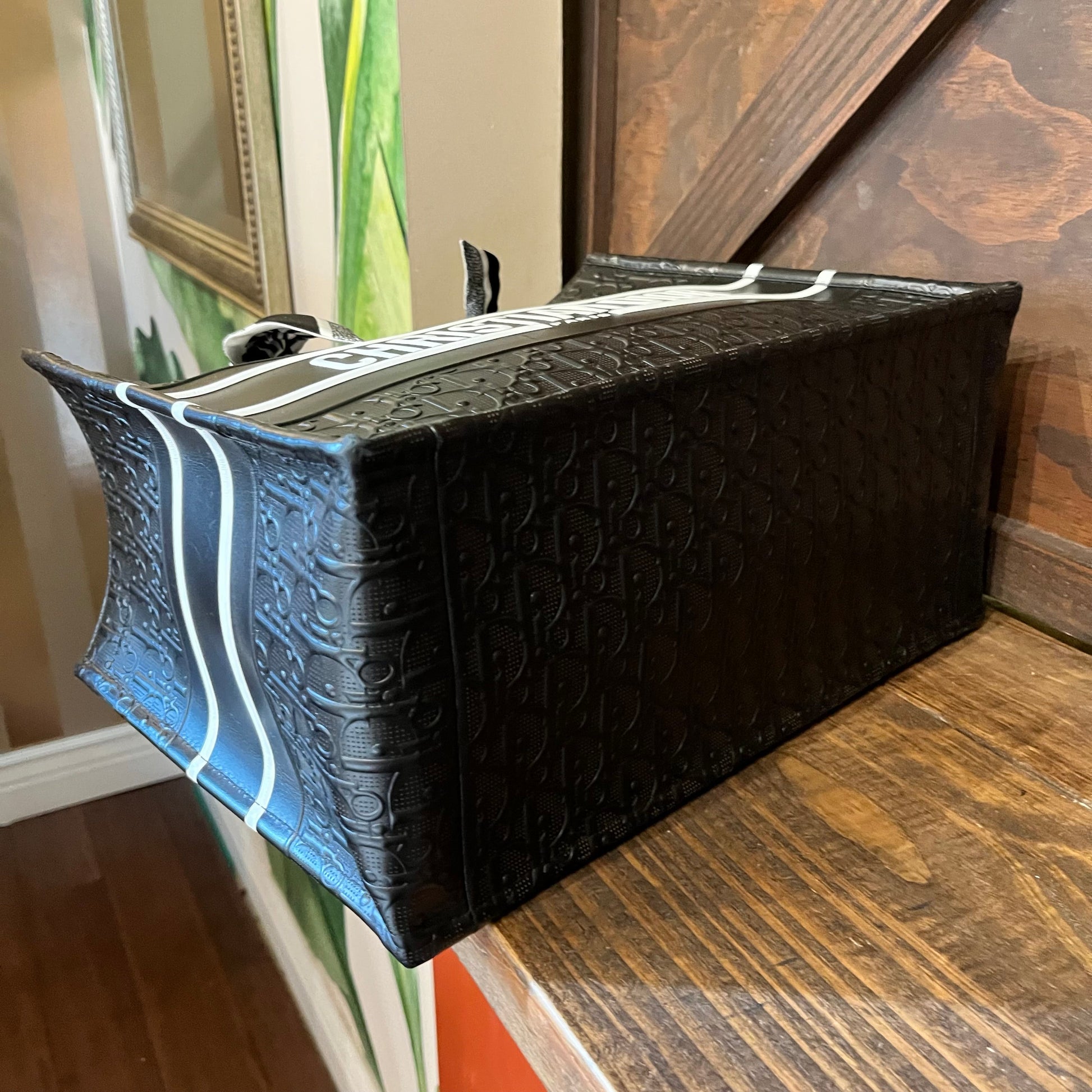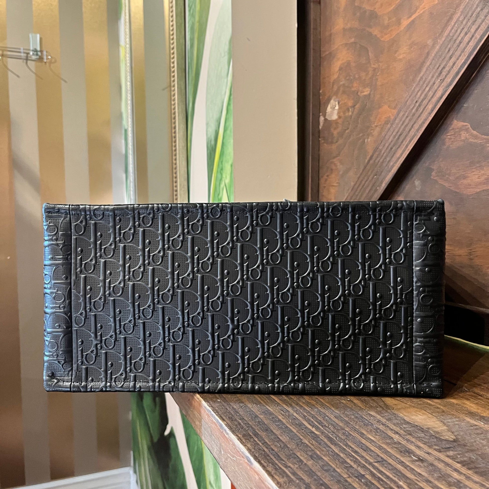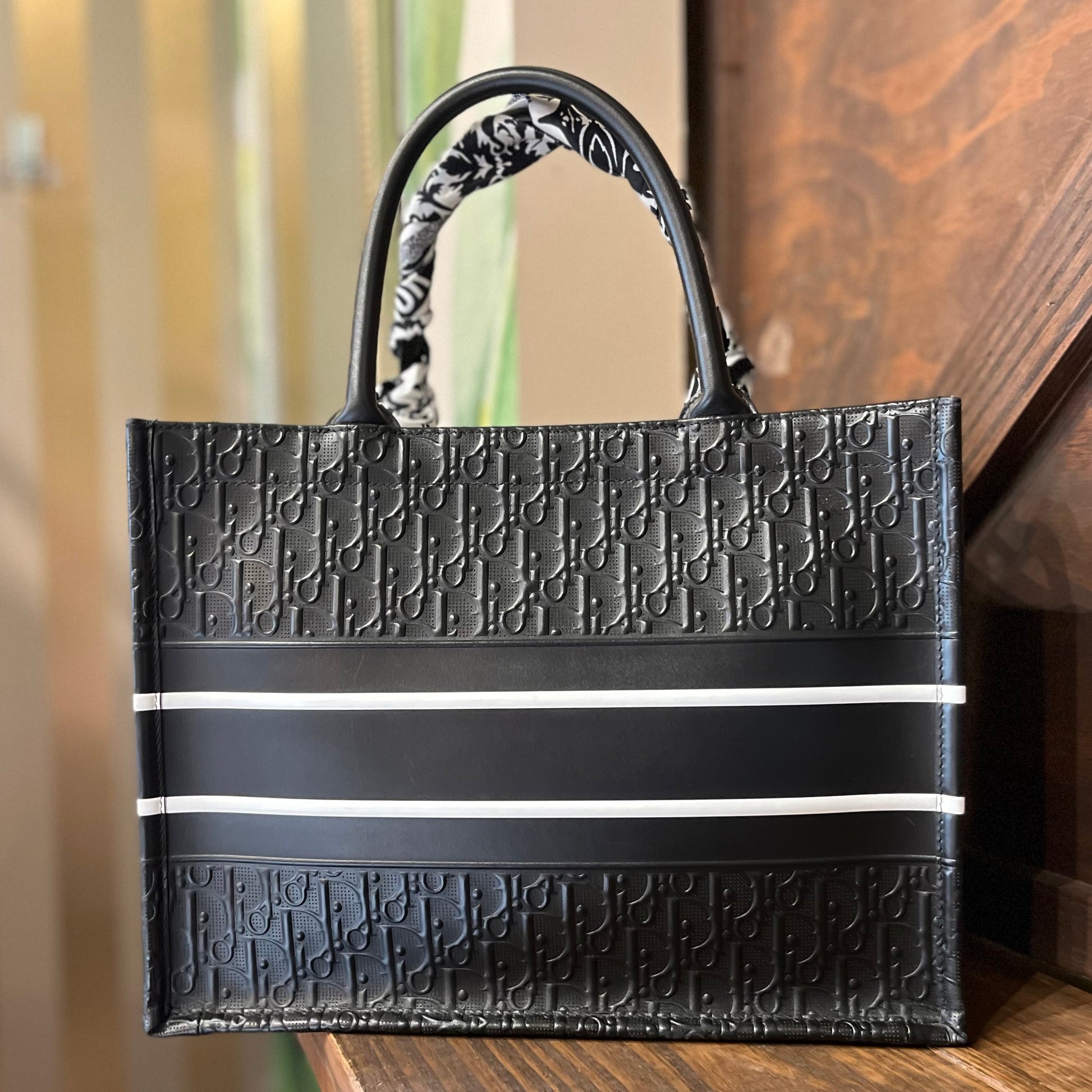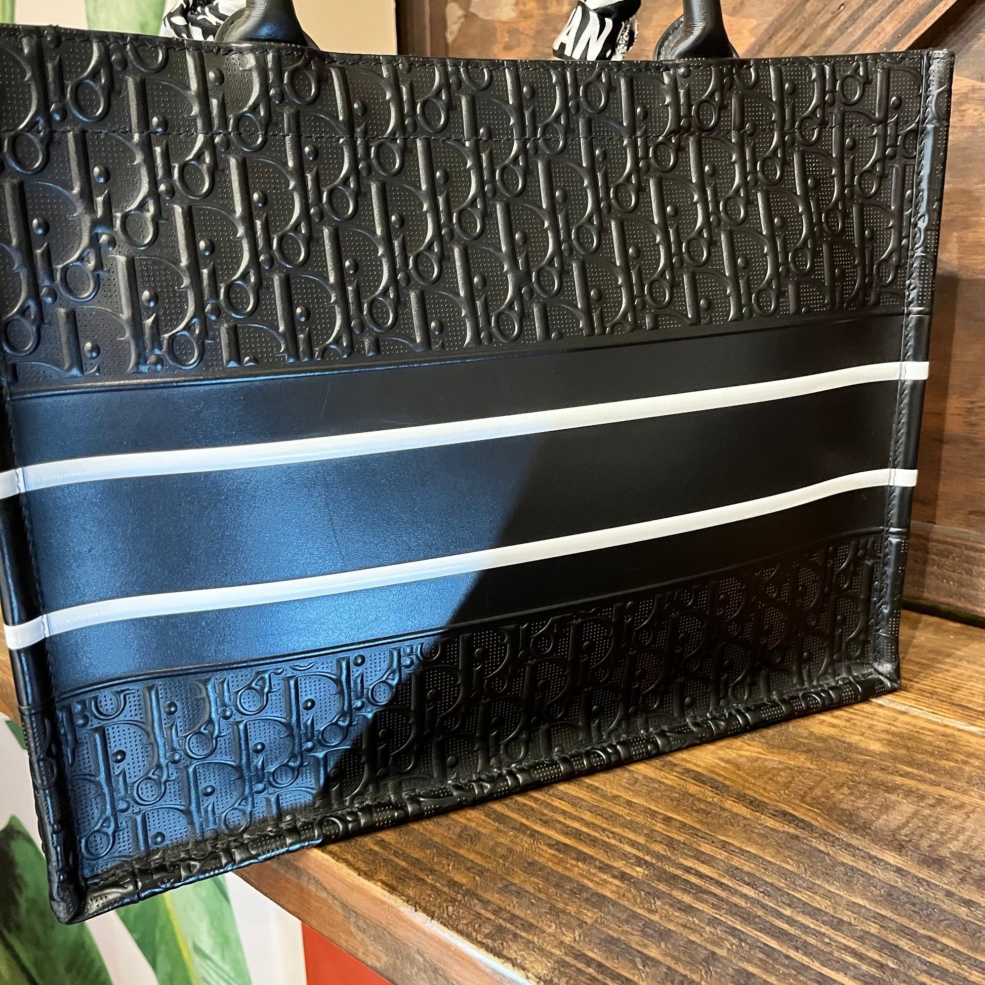CHRSITIAN DIOR Black Embossed Logo Calfskin Medium Book Tote