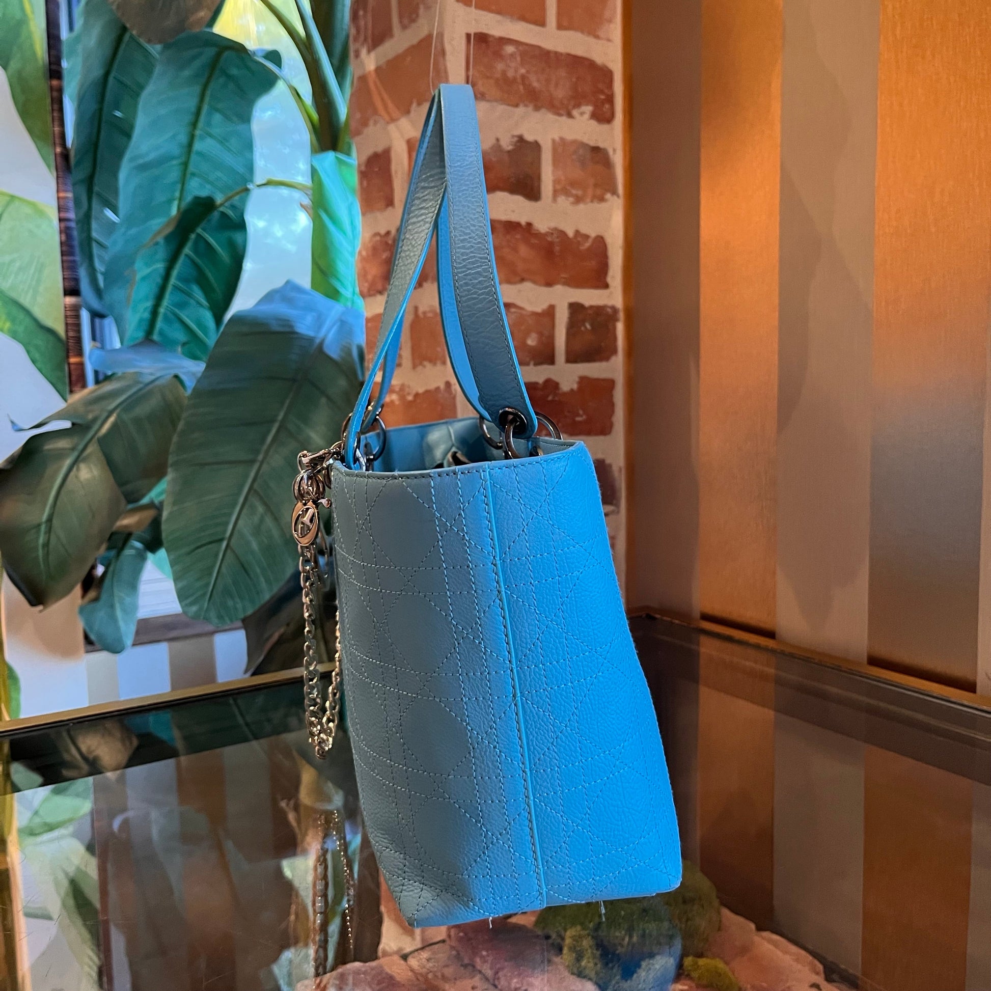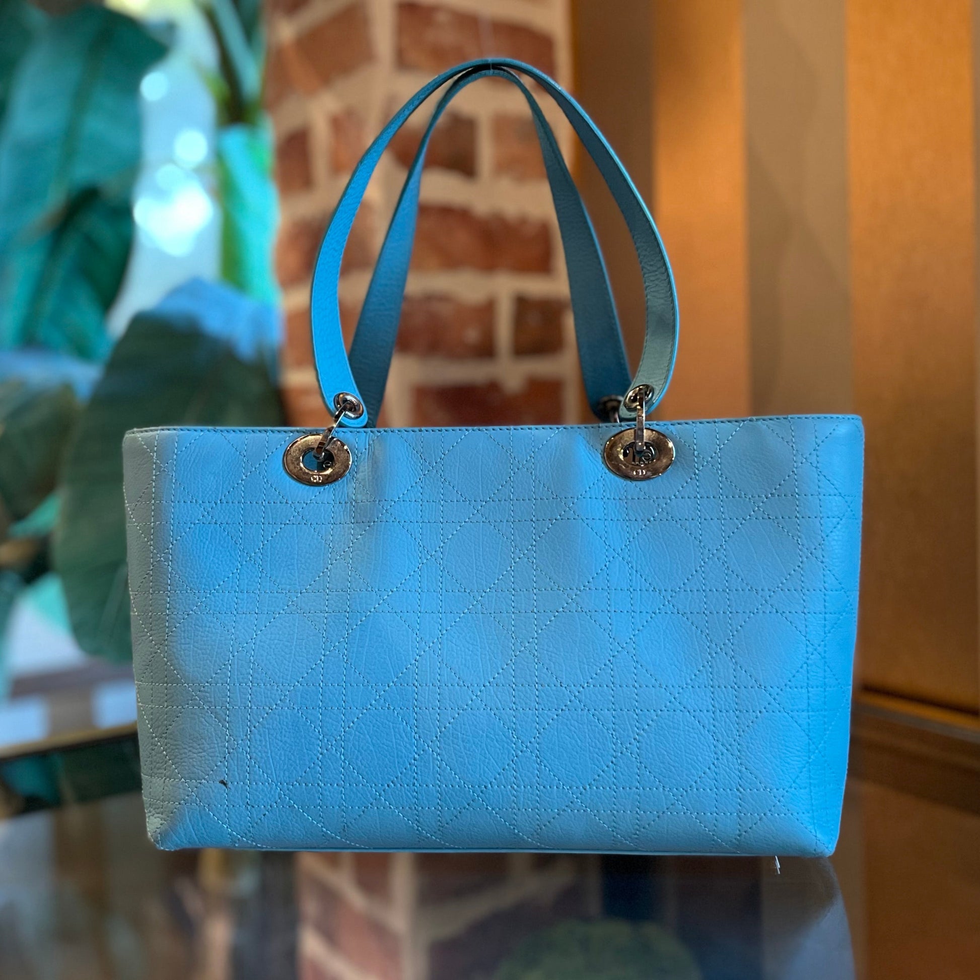 CHRISTIAN DIOR Medium Light Blue Cannage Vintage Tote