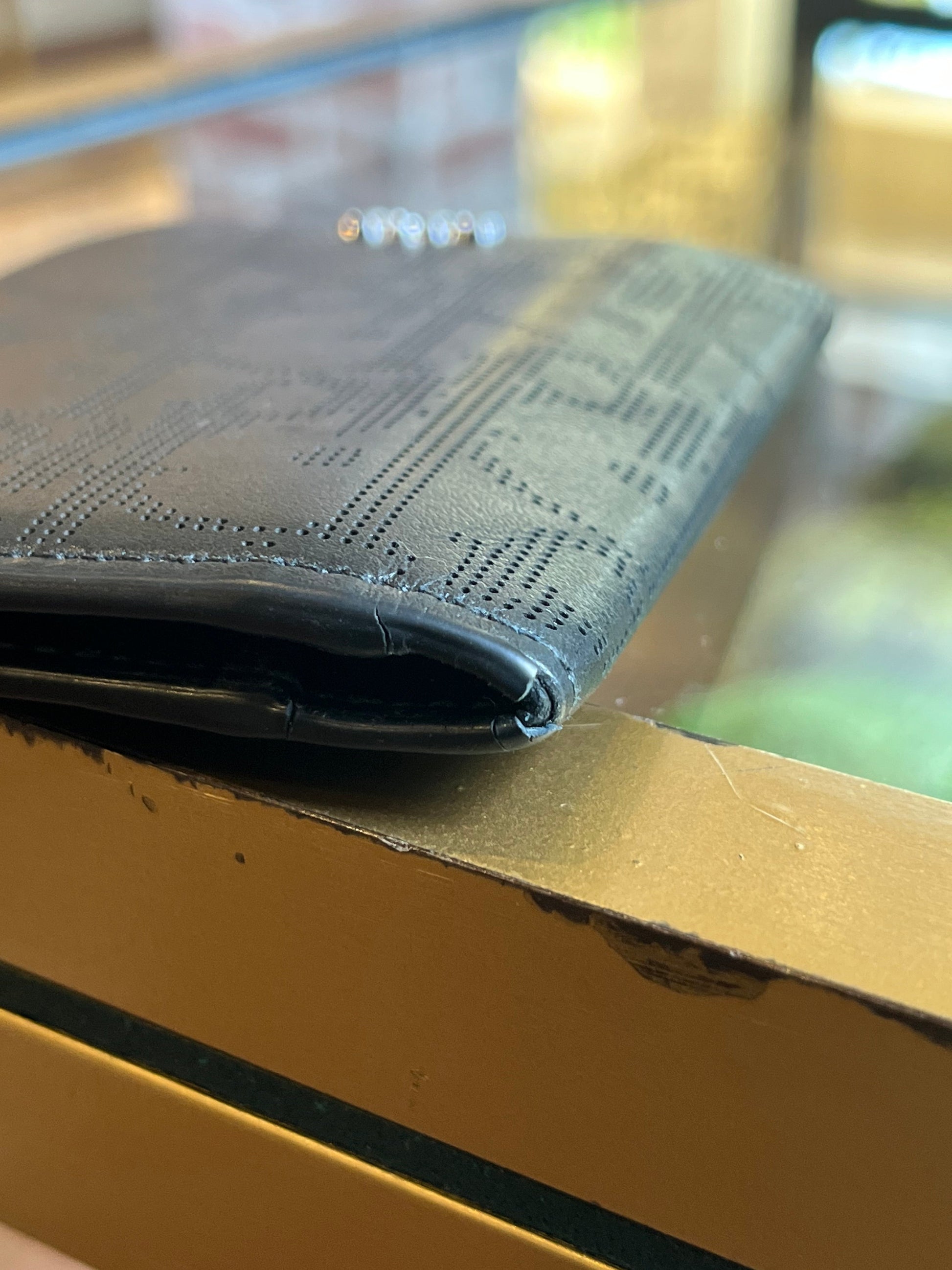 This men’s Dior bifold wallet is crafted from premium leather with subtle Dior branding. It features multiple card slots and offers everyday practicality with timeless elegance. Good condition B-