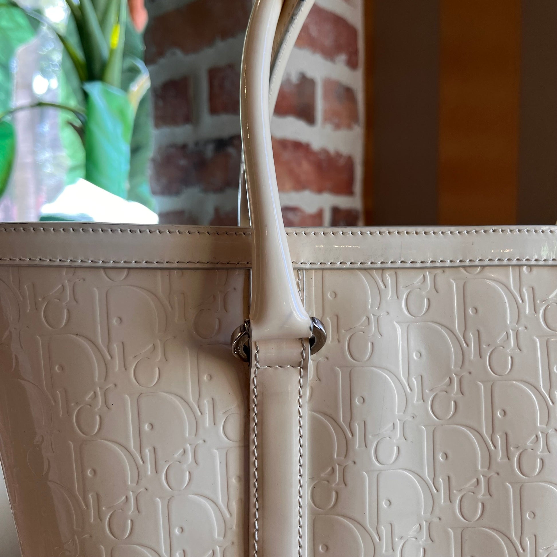 CHRISTIAN DIOR Dior Oblique Embossed Patent Leather Shopper Tote