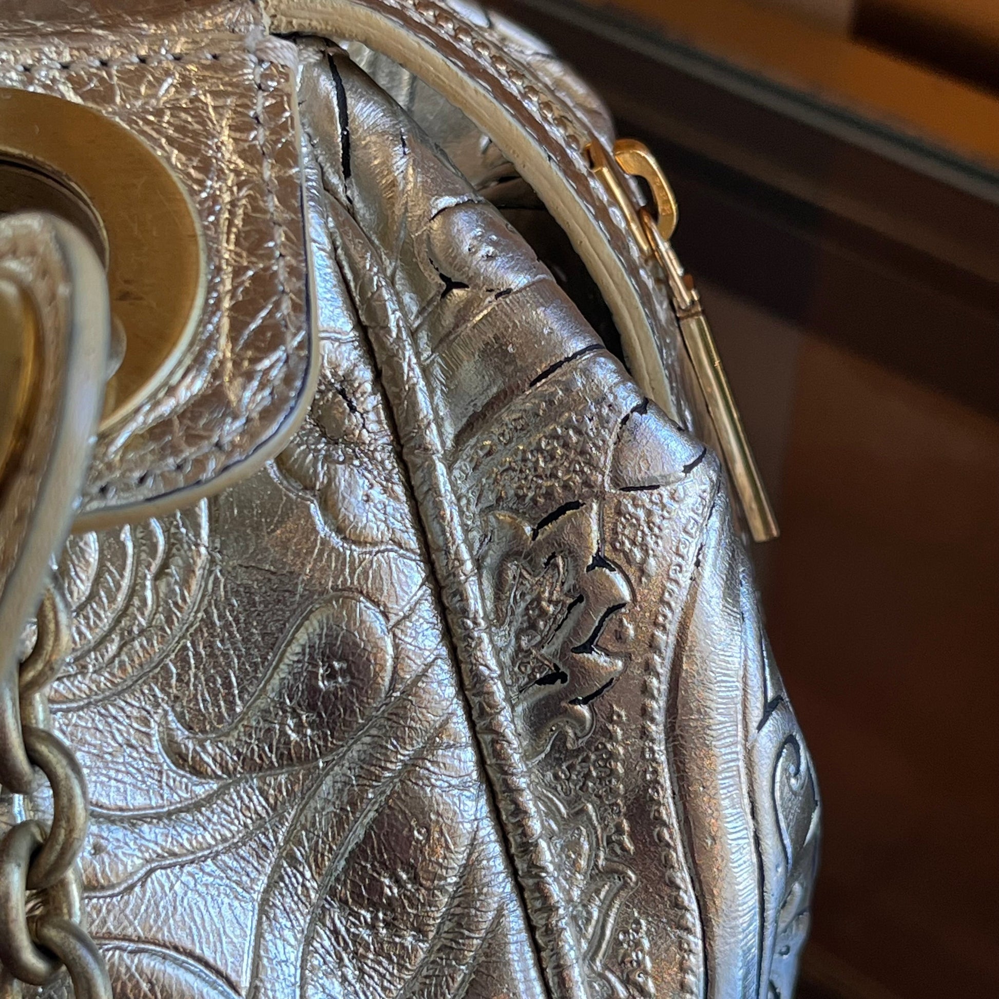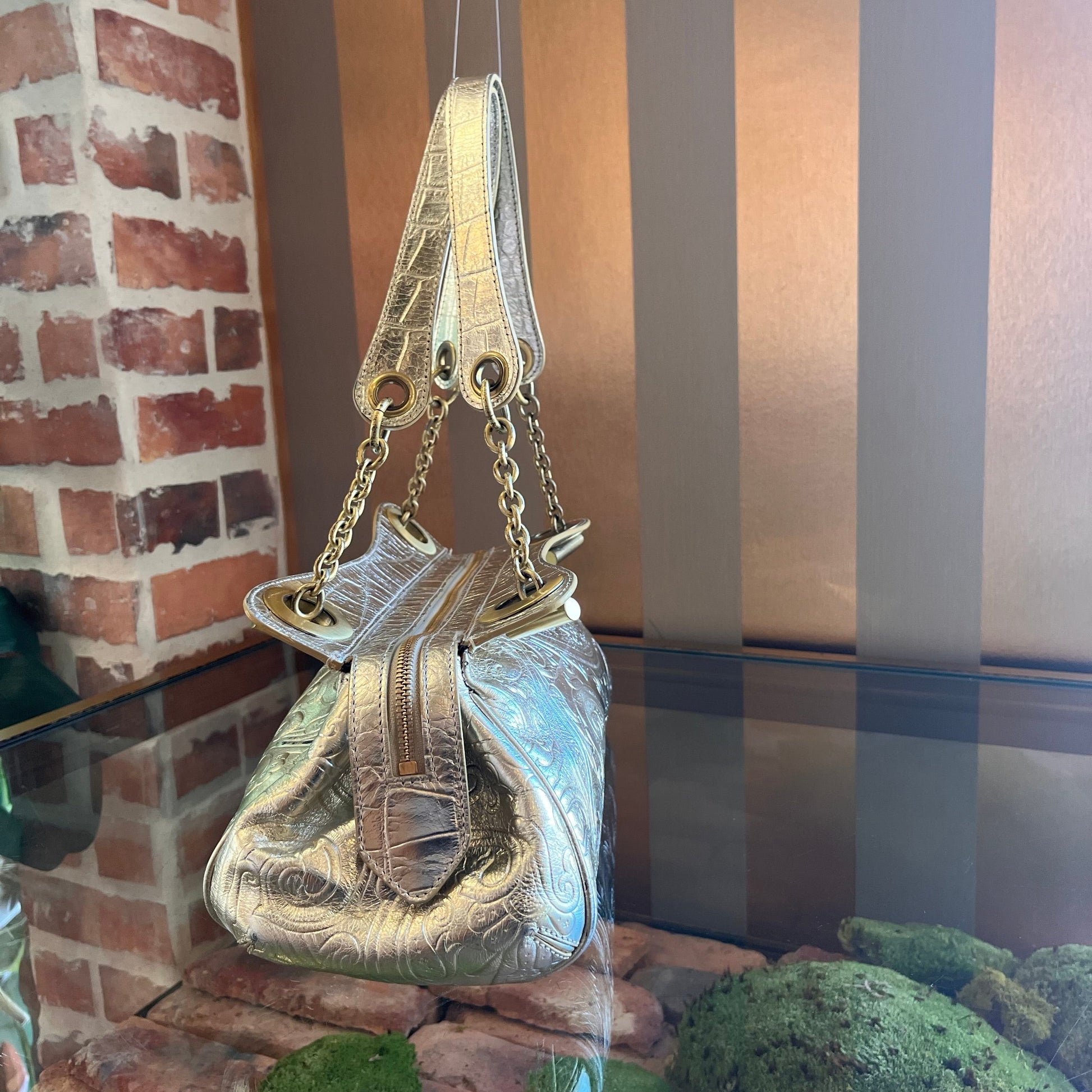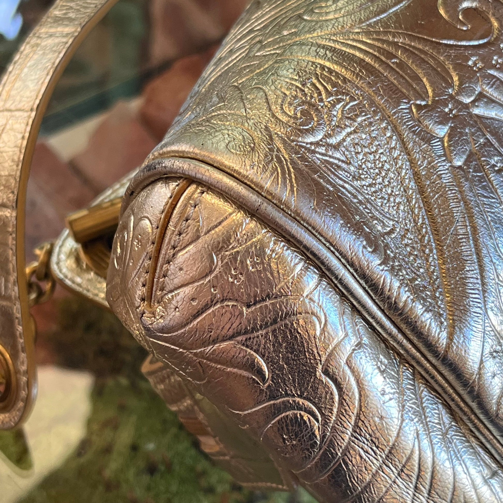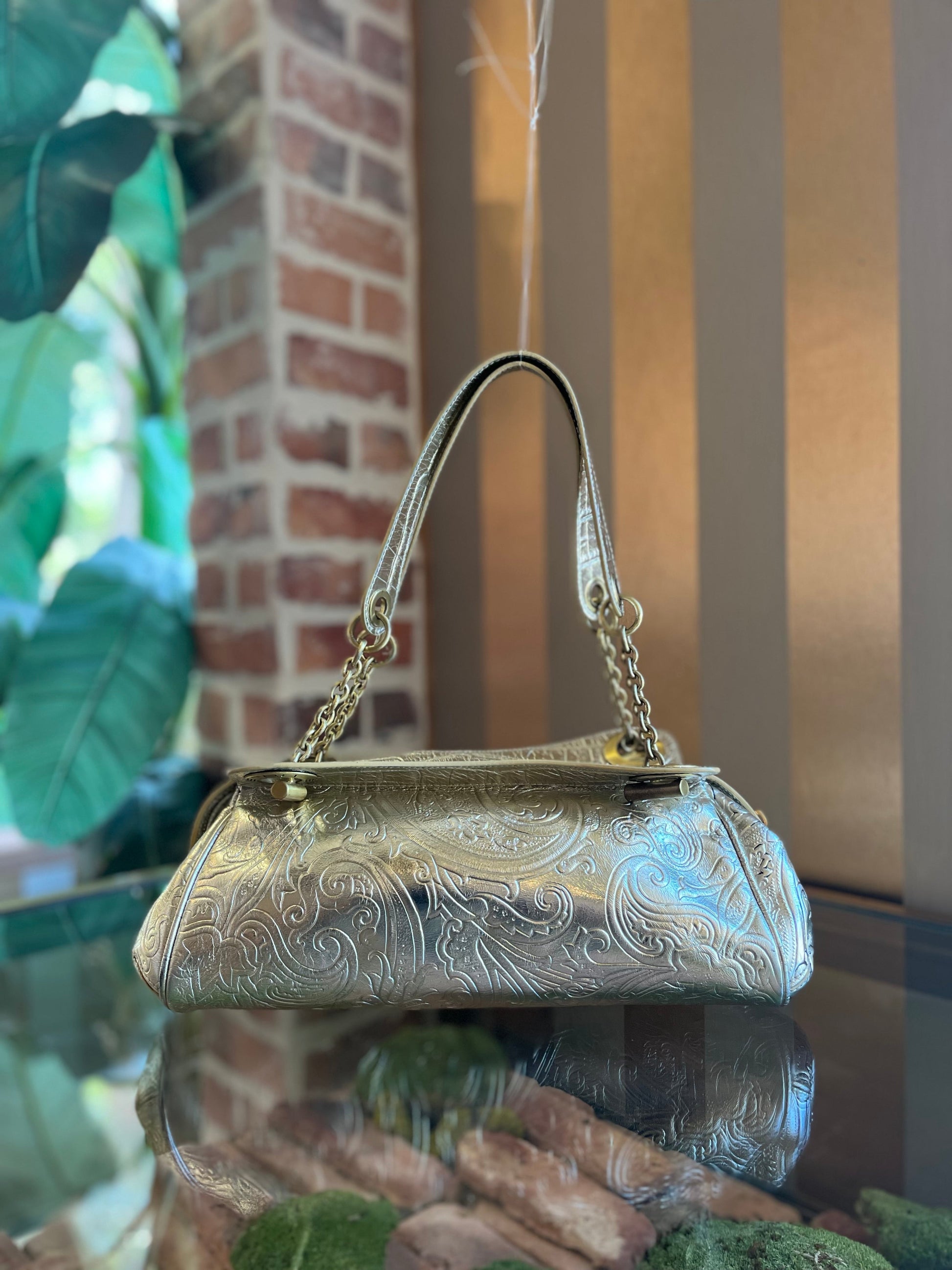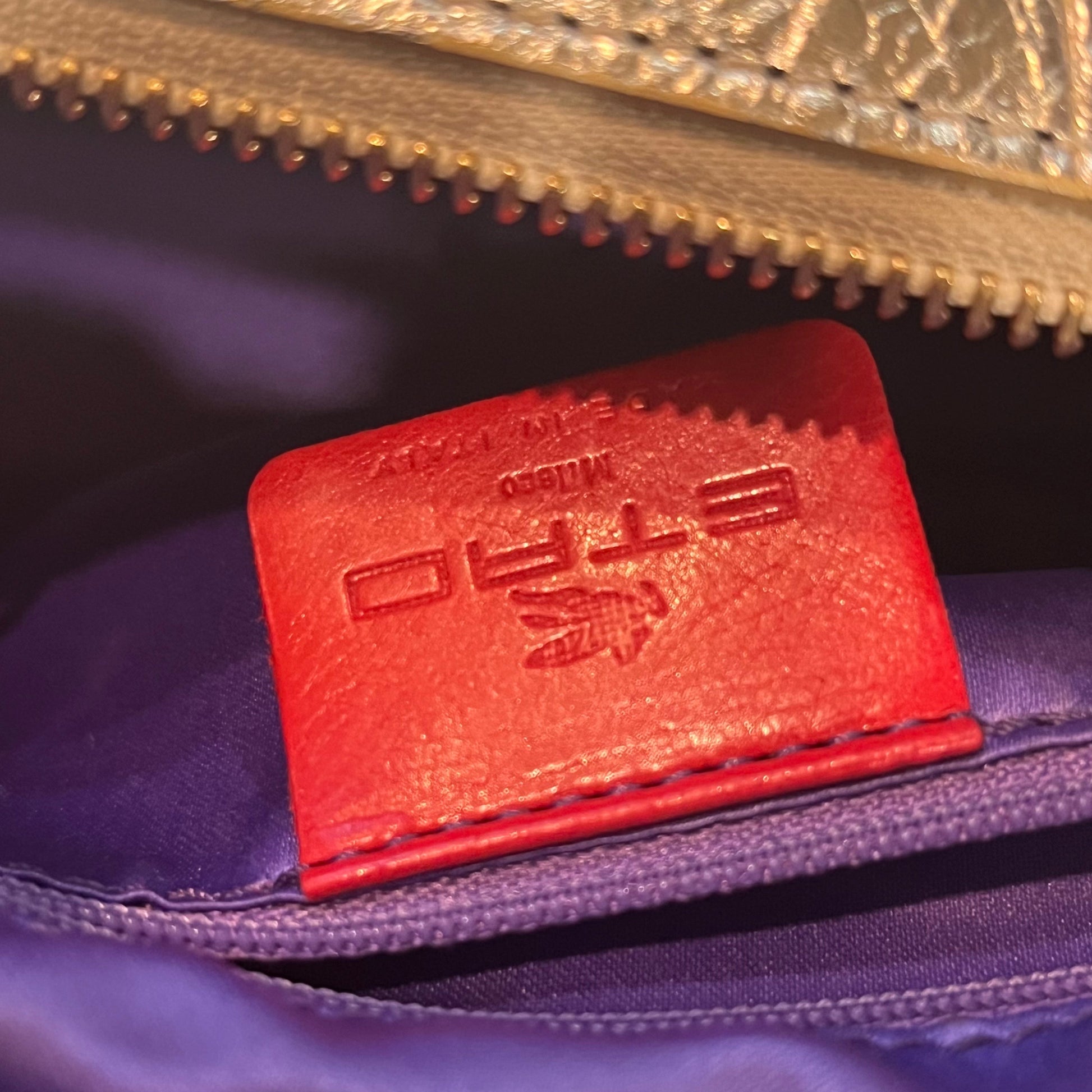 ETRO Paisley Gold Embossed Leather Shoulder Bag