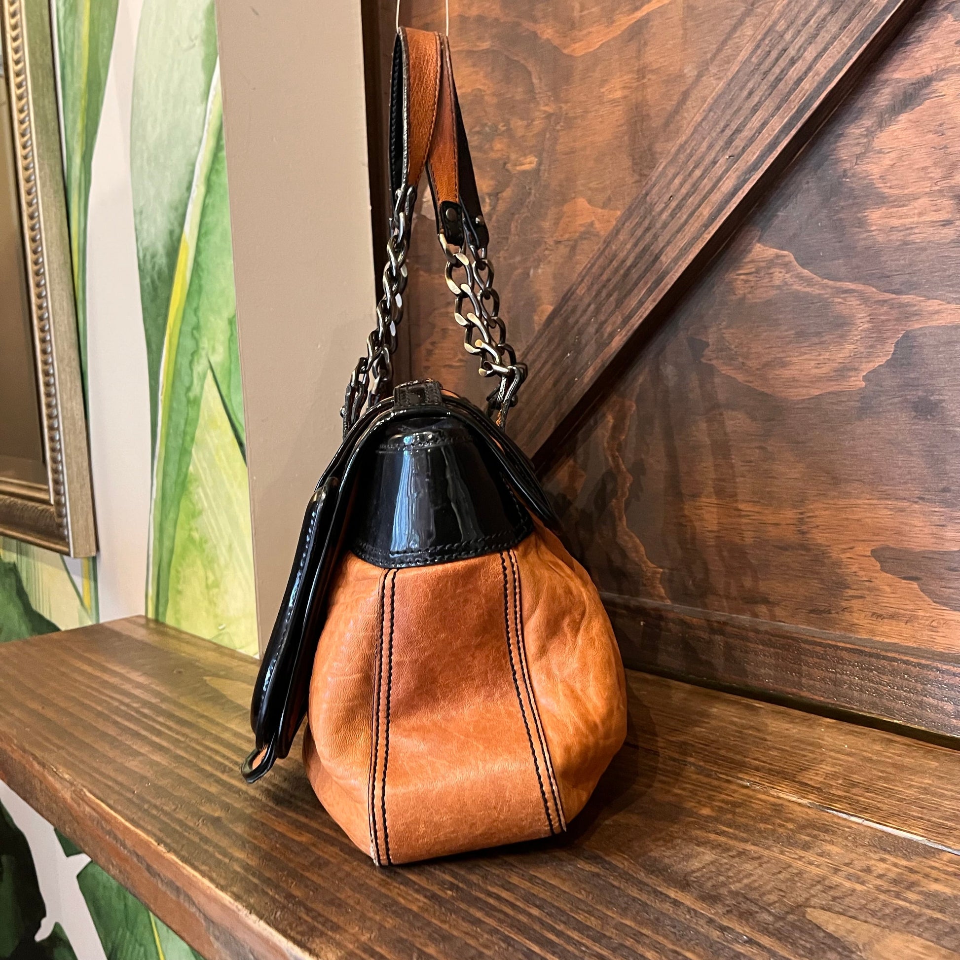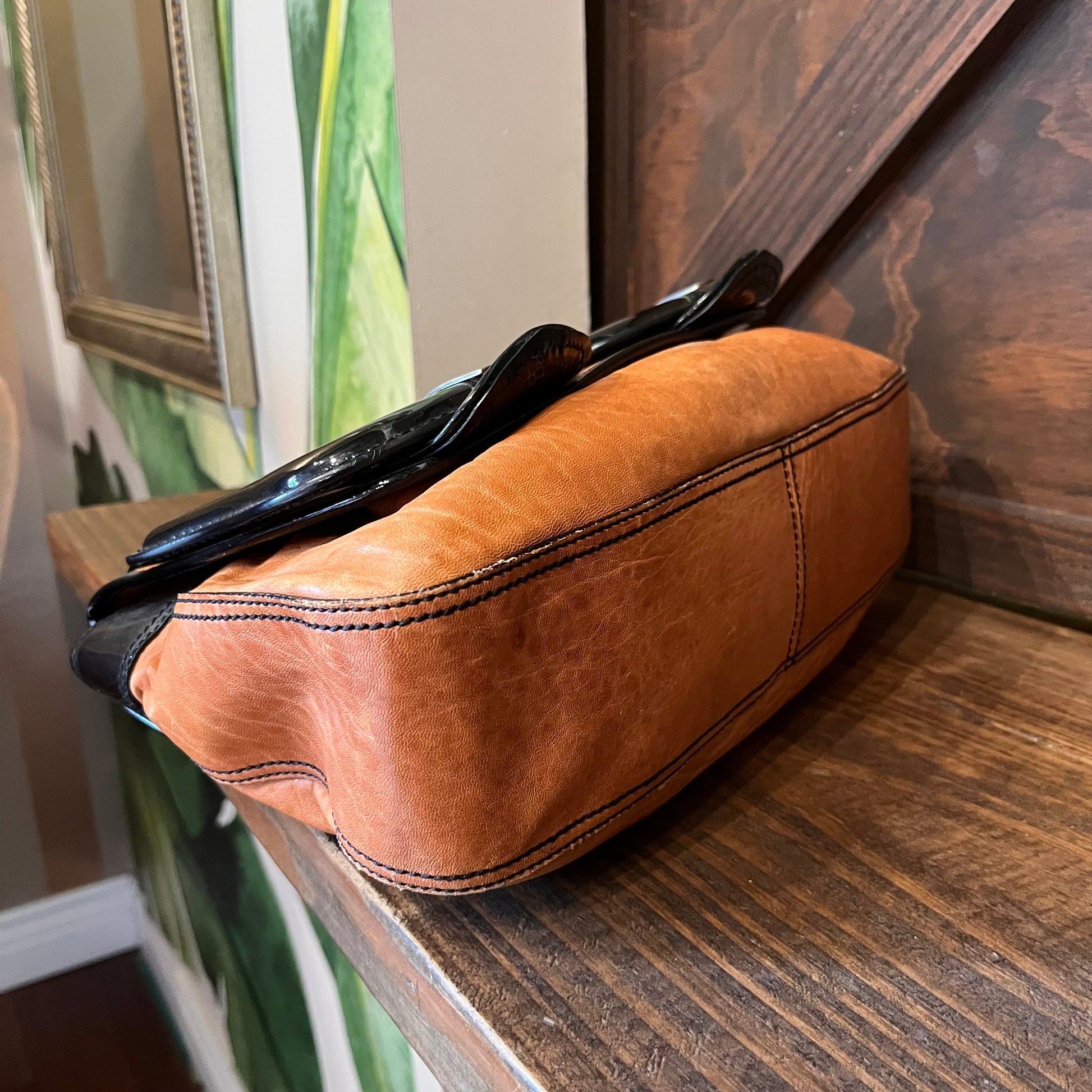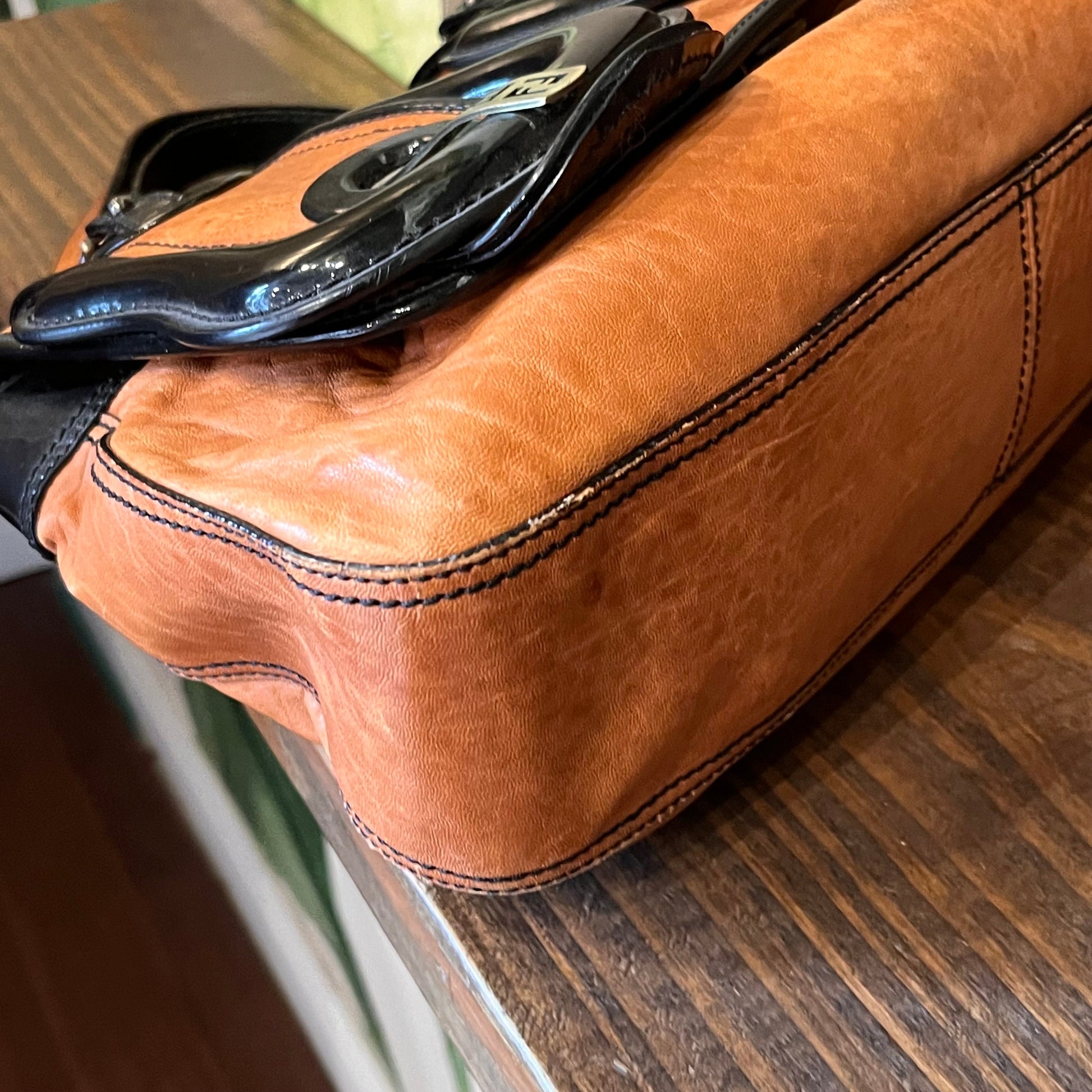 FENDI B Bag Osso Tan Nappa Patent Shoulder Bag