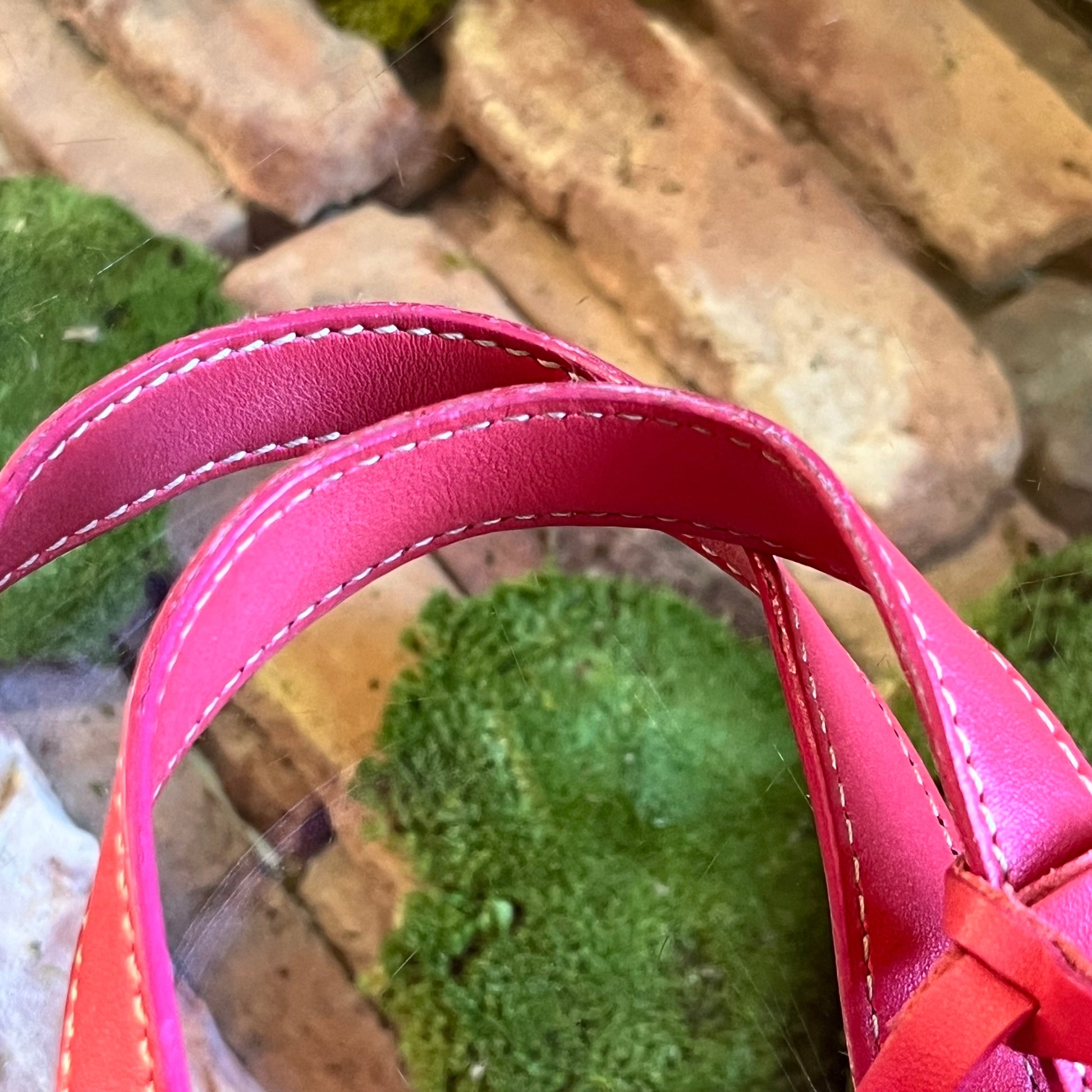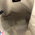 - Exterior: The canvas is vibrant and unfaded. There is rubbing/gentle soiling, splitting to the leather charm strap and gentle marks. Overall it's in very good condition.