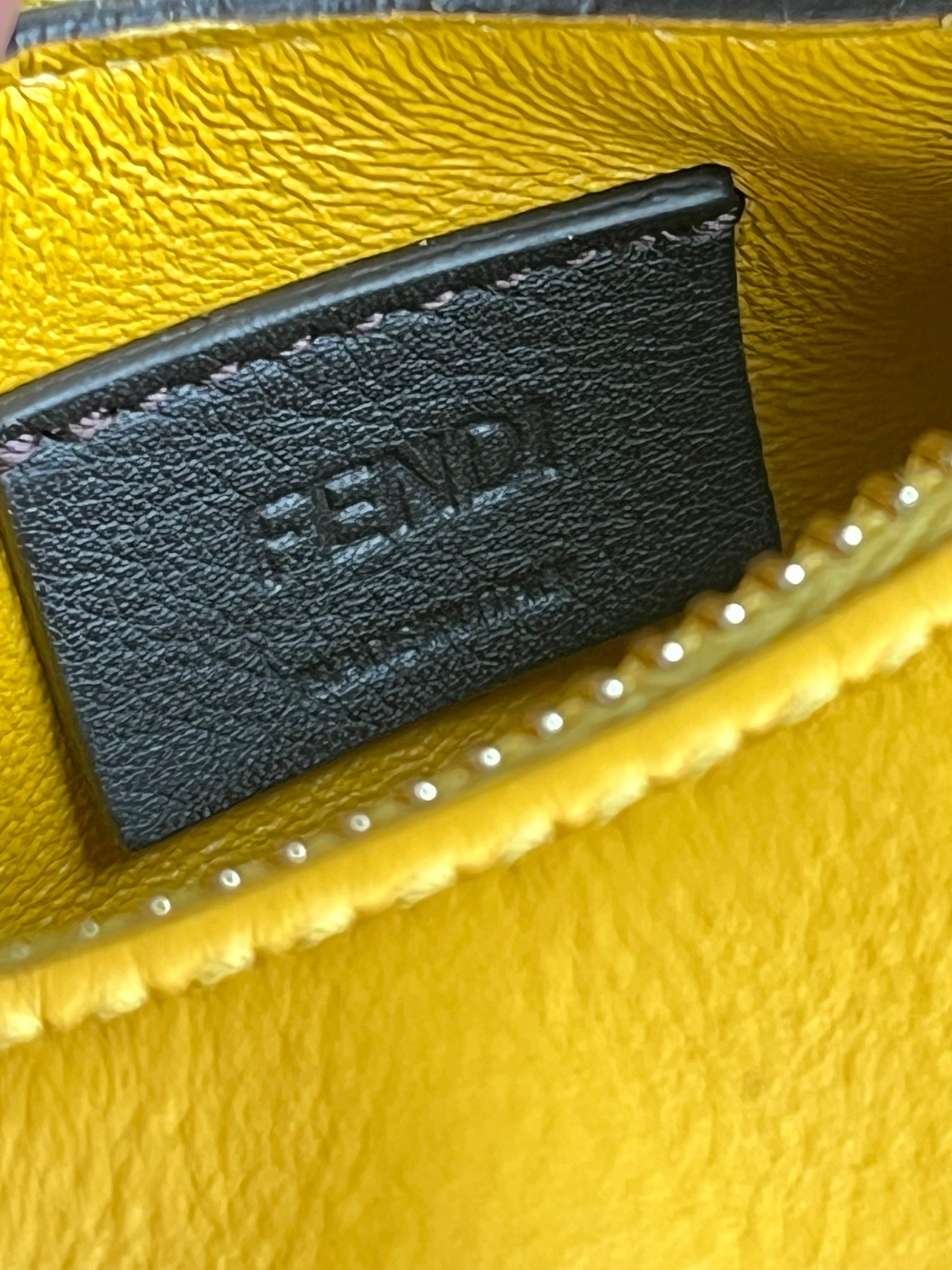 Elevate your ensemble with the FENDI Fendigraphy Nano Yellow Handbag, a refined accessory that combines bold color with impeccable craftsmanship. Its compact design offers a chic solution for carrying essentials, while the vibrant yellow hue adds a sophisticated pop to any outfit. Perfect for those who appreciate luxury and style in a petite package. Very good condition.