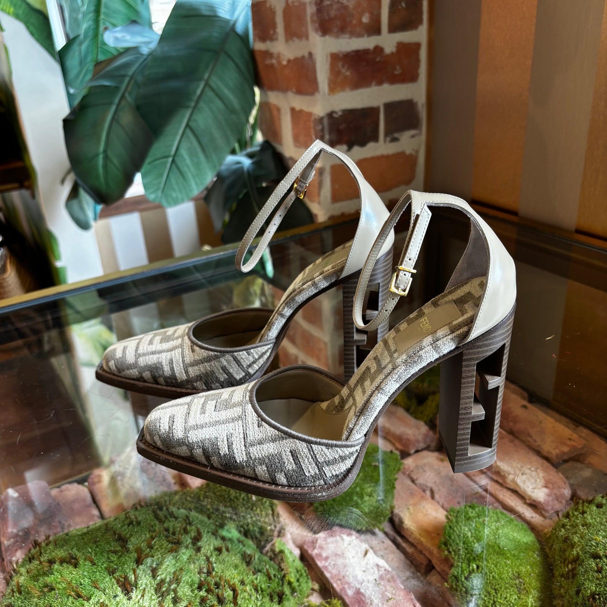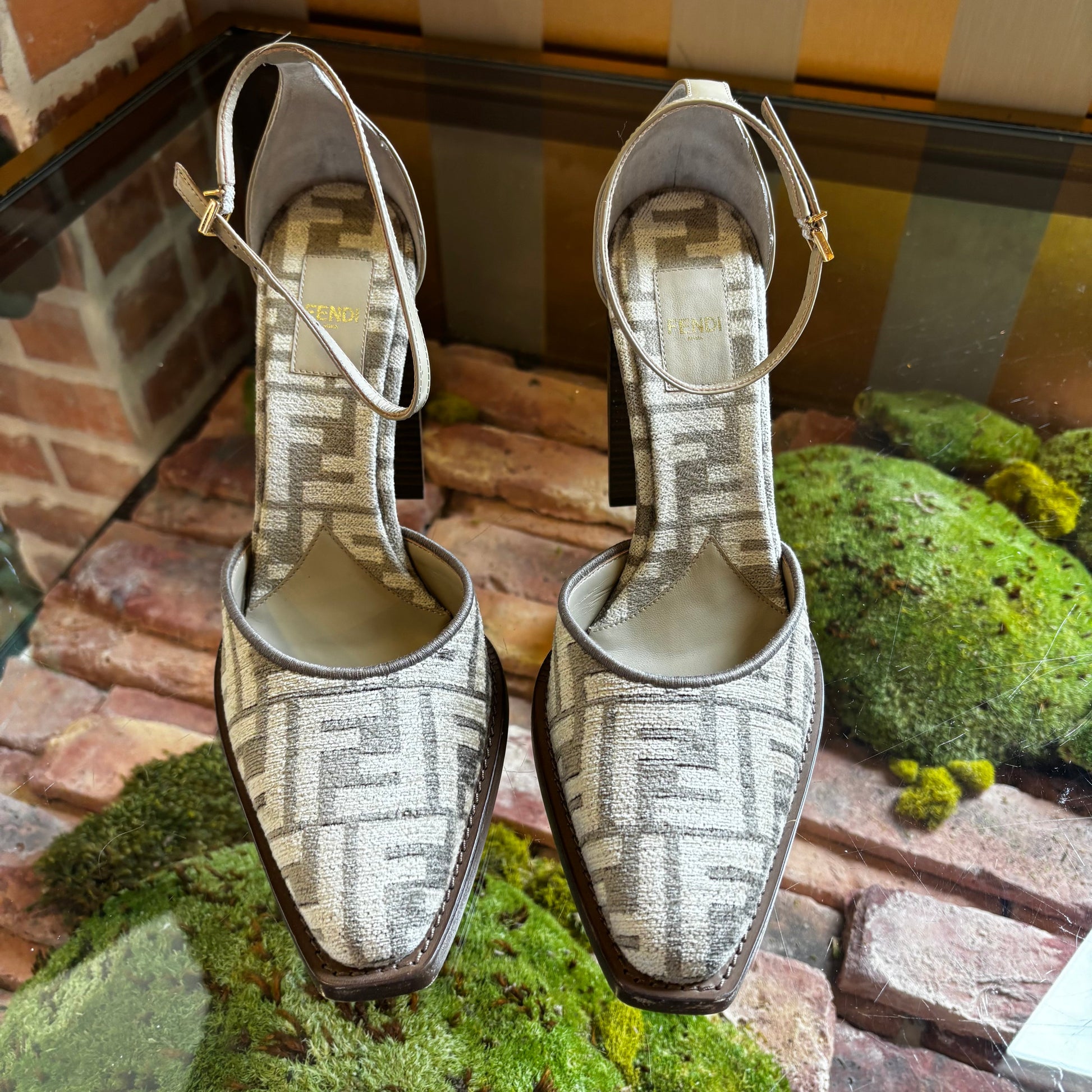 FENDI Zucca FF Logo D'Orsay Dove Grey Velvet Pumps SZ 39 (9 US)