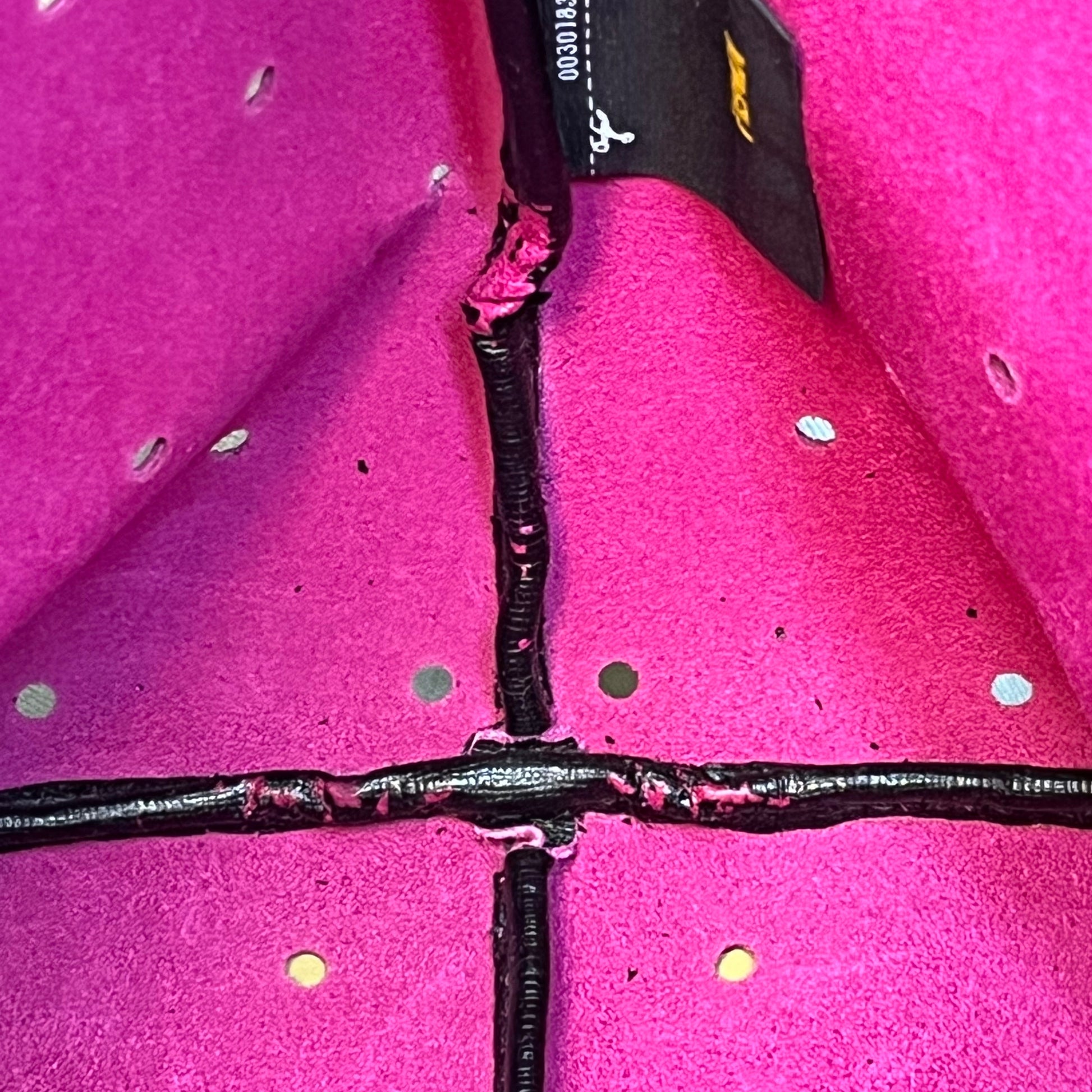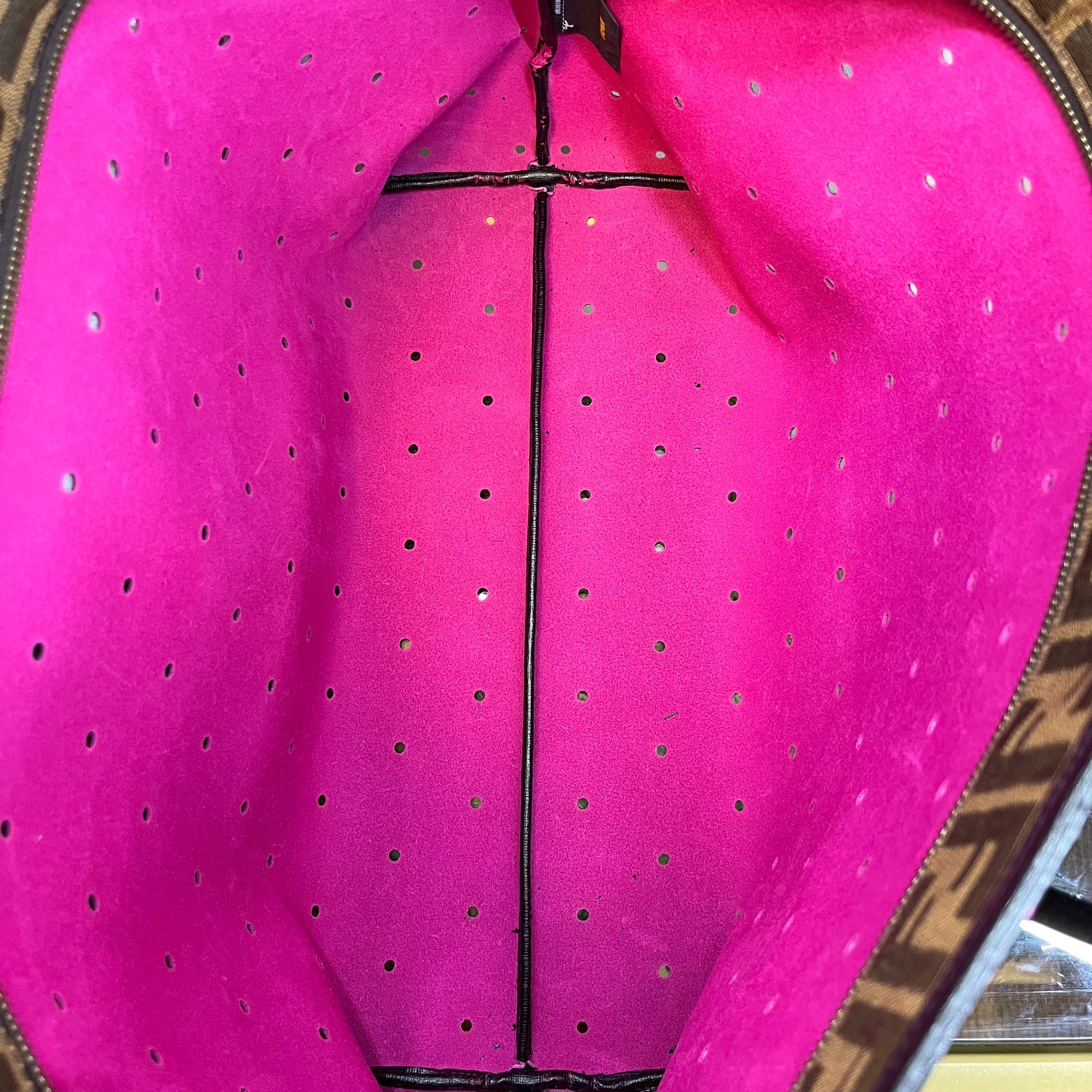 A modern twist on Italian craftsmanship, this tote features supple Vitello leather with bold perforated detailing for a breathable, textured look. The structured roll-top design and FF logo hardware strike the perfect balance between Fendi's playful spirit and timeless functionality. C+ Poor Condtion