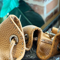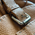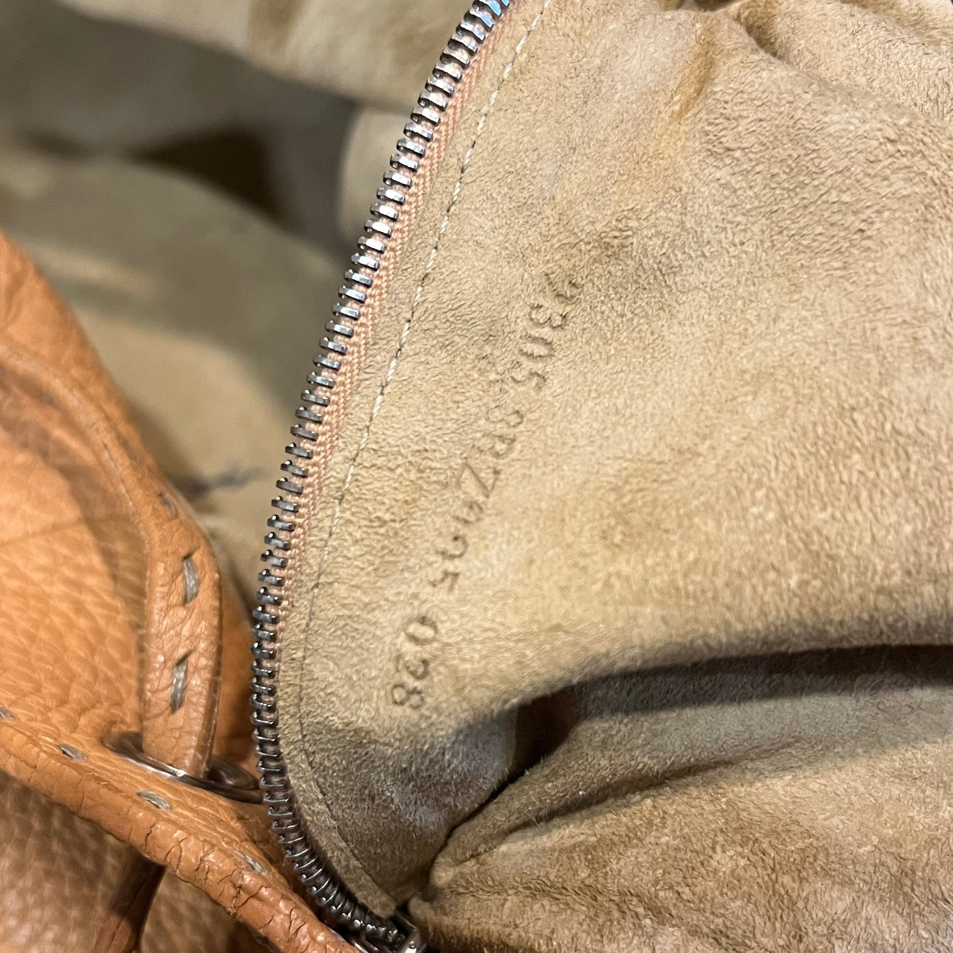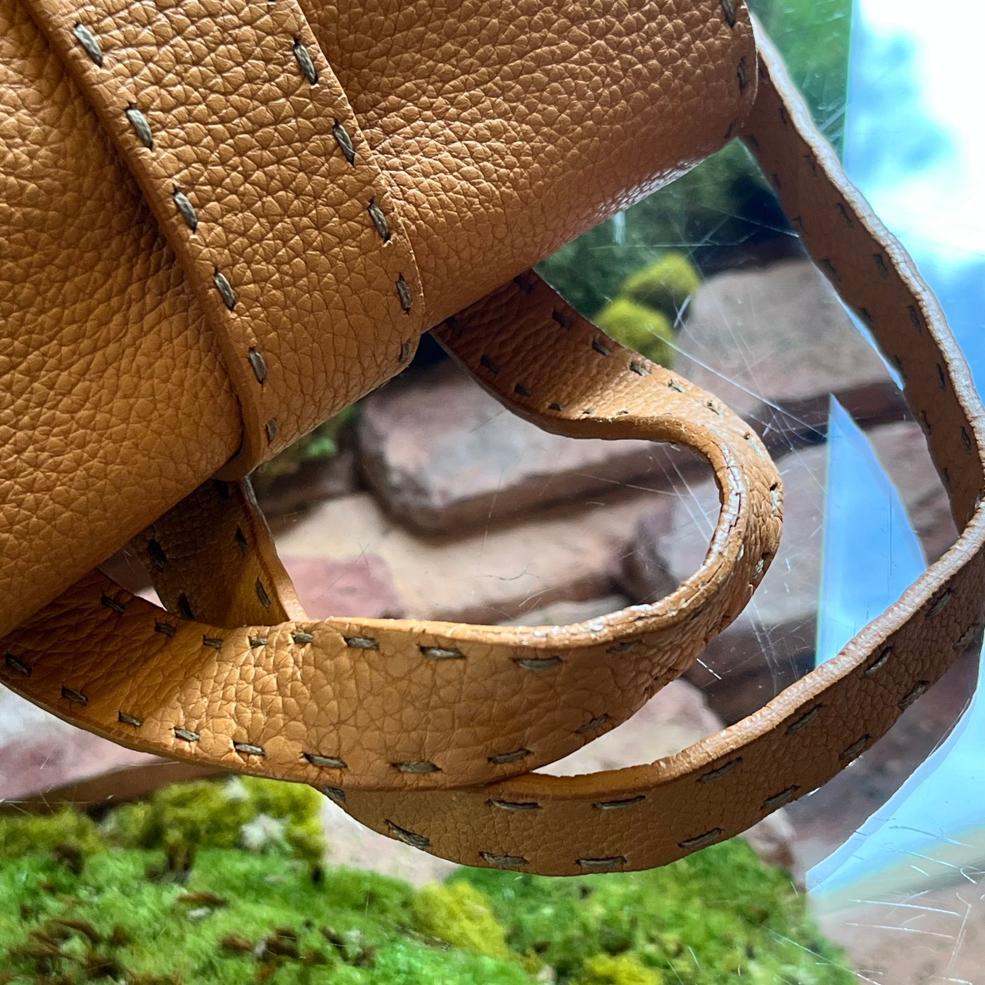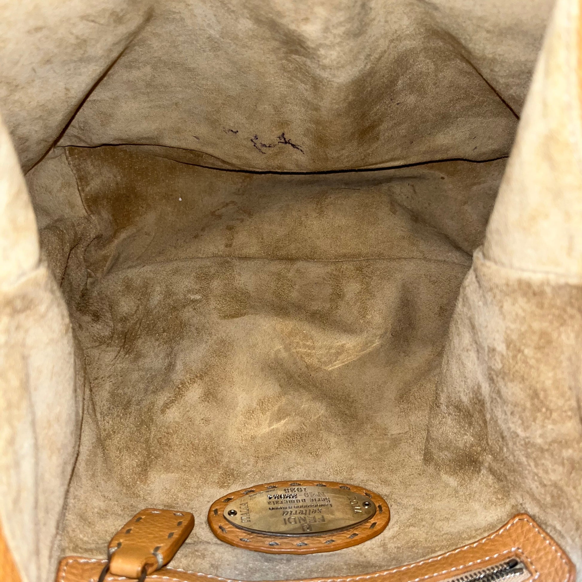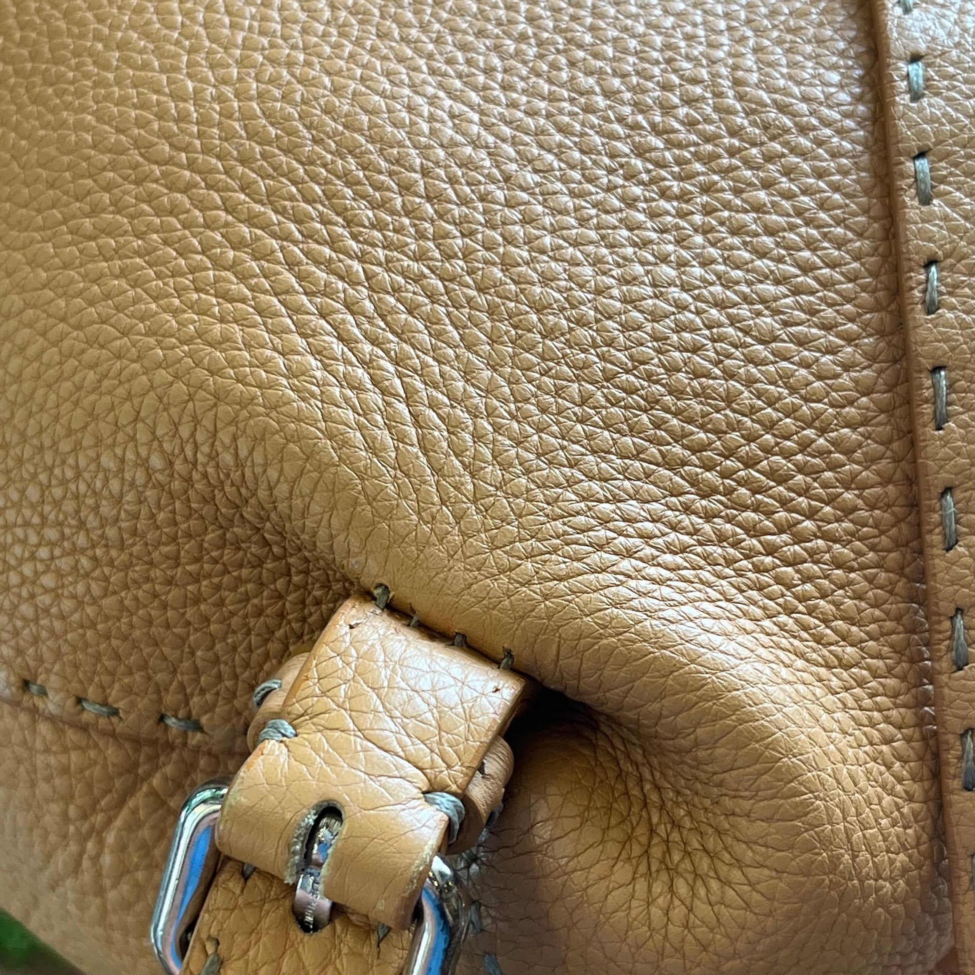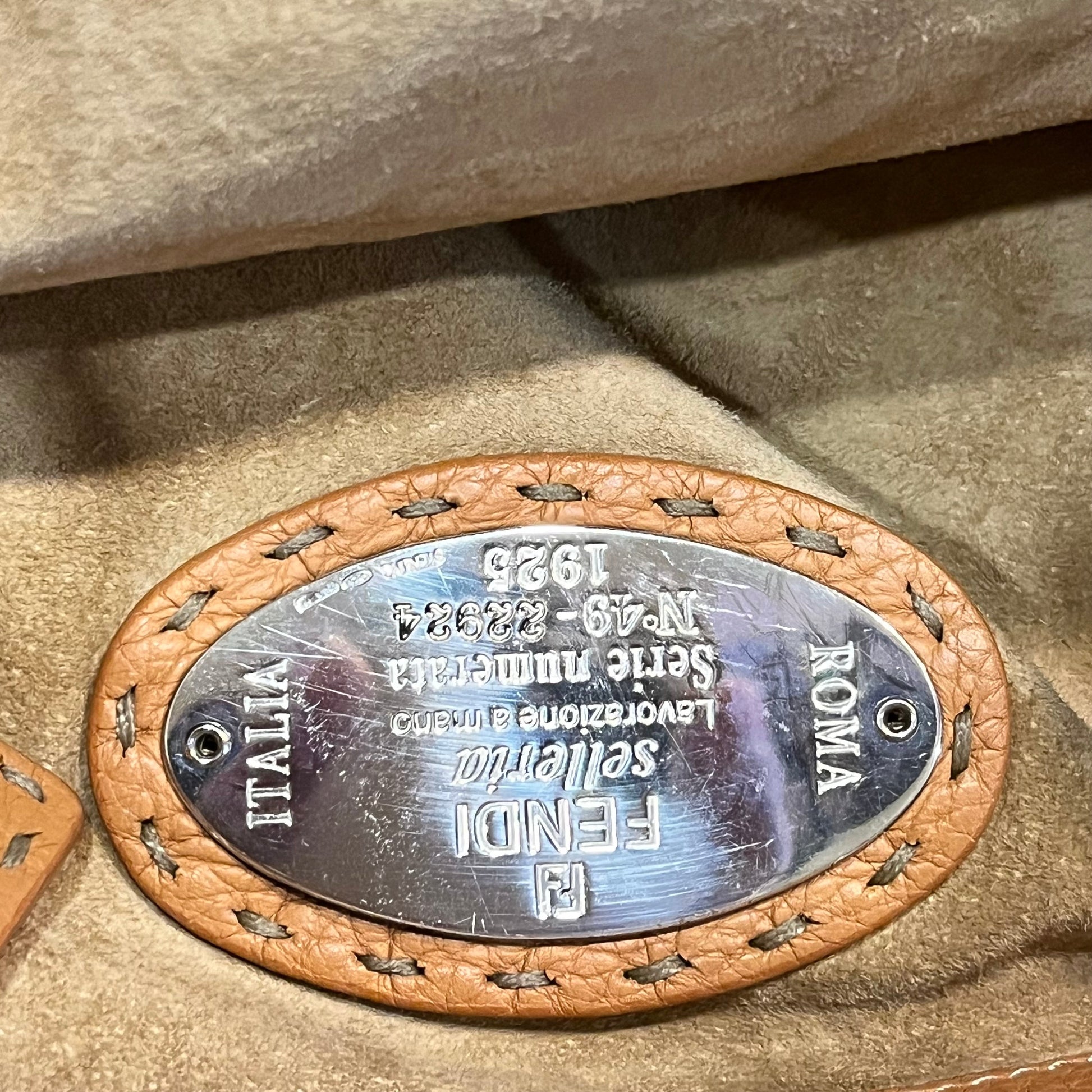 A refined backpack in Fendi's luxurious Selleria calfskin leather, known for its buttery texture and artisanal stitching. The structured silhouette features adjustable straps and multiple compartments for organized storage, while the subtle branding exudes understated elegance. Perfect for those who appreciate Italian craftsmanship with everyday functionality. B+ Very Good Condition