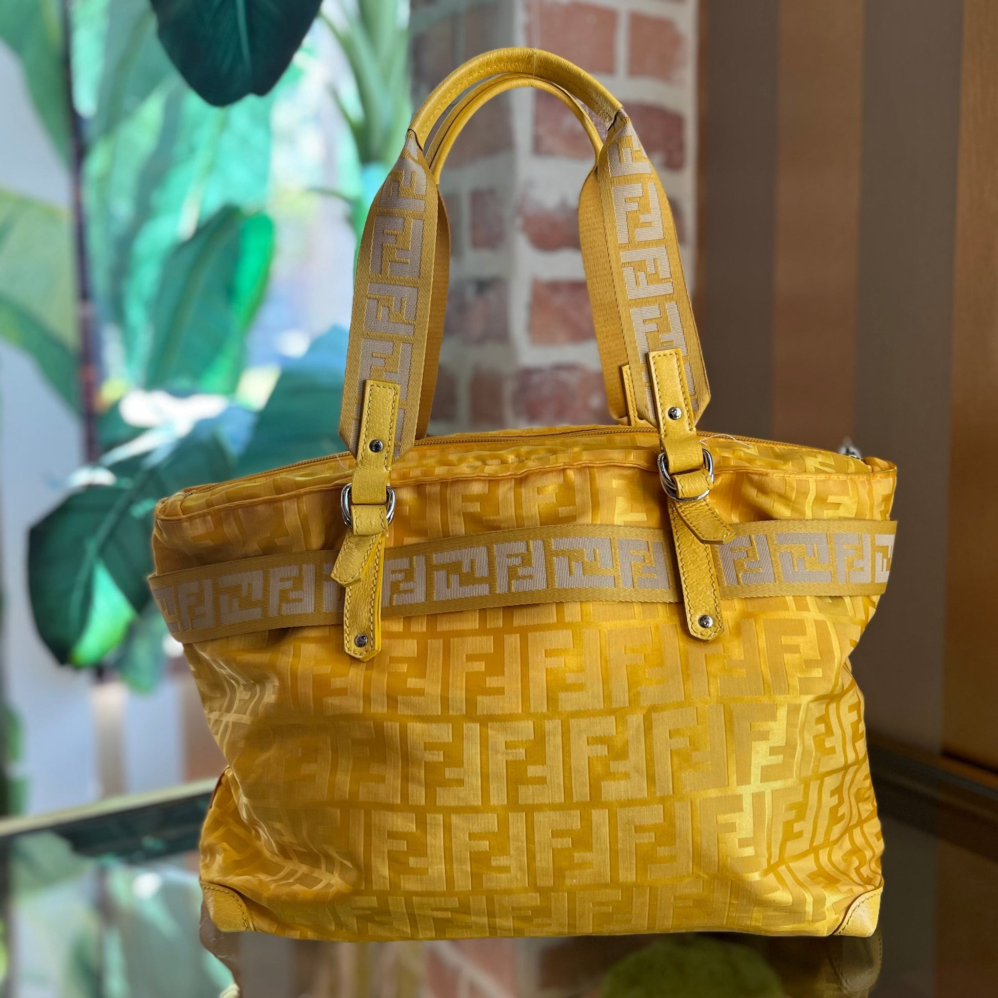 FENDI Zip Top Yellow FF Nylon Vintage Tote