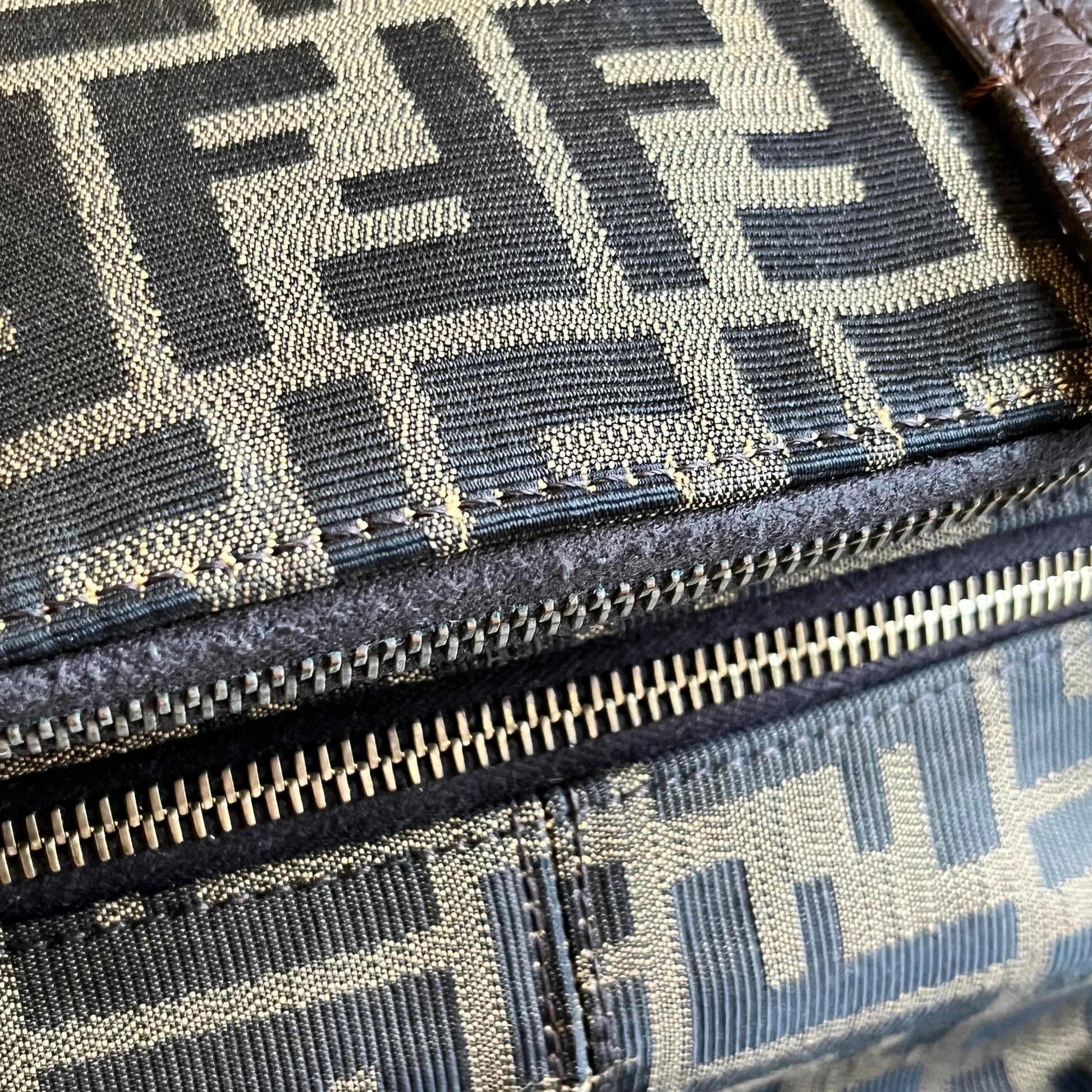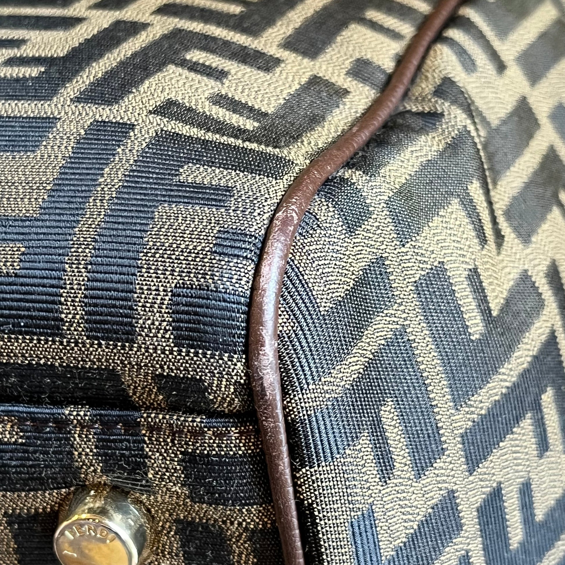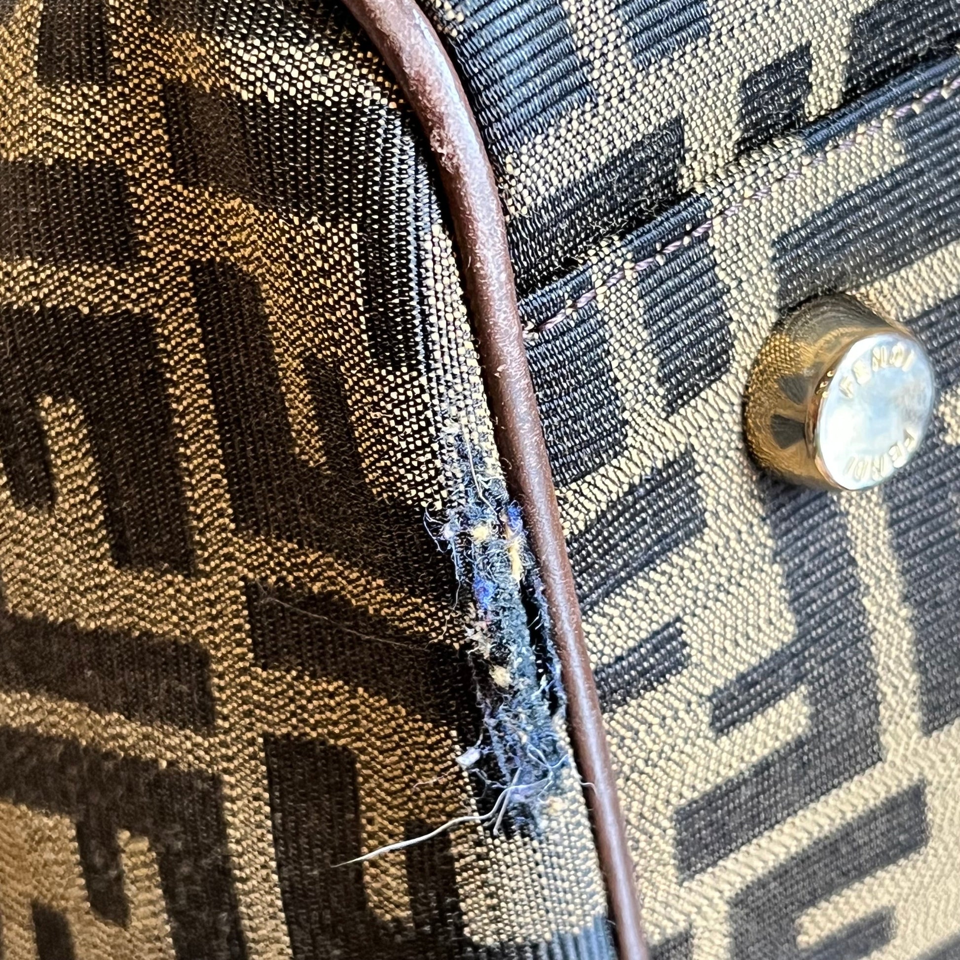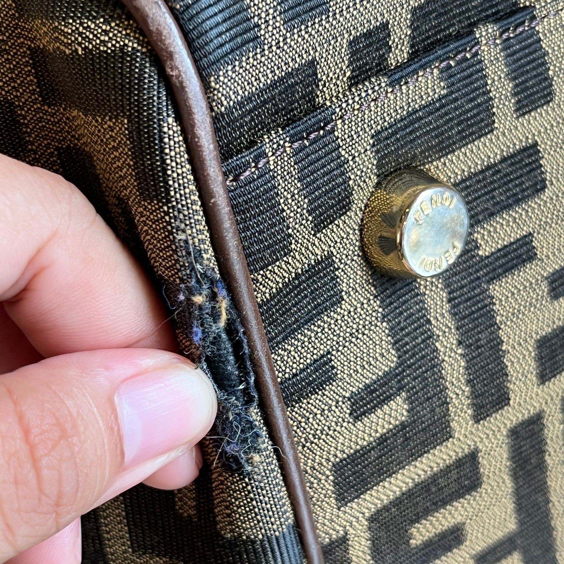 - Interior: The interior has stains but it could possibly be cleaned if desired after purchase. This vintage Fendi exhibits multiple faint slash marks and stitch impressions near the zipper pull, consistent with historical use or repair(please refer to photos). The zipper is functional but may occasionally stick during operation. These issues are cosmetic and/or mechanical quirks common to vintage pieces and do not affect the bag’s overall usability.