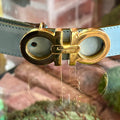 - Buckle: Features the signature Gancini logo in a polished gold metal finish, adding a touch of elegance.