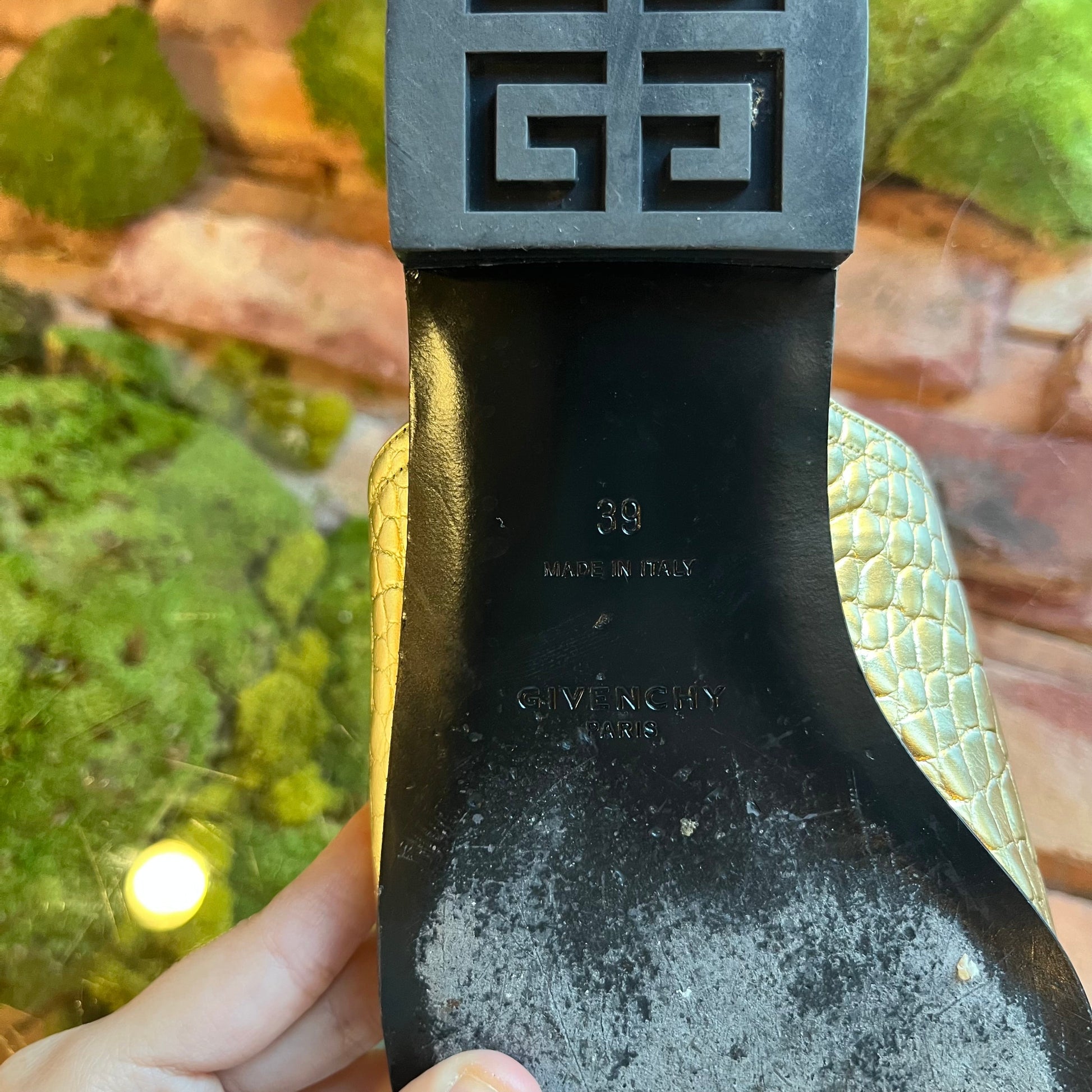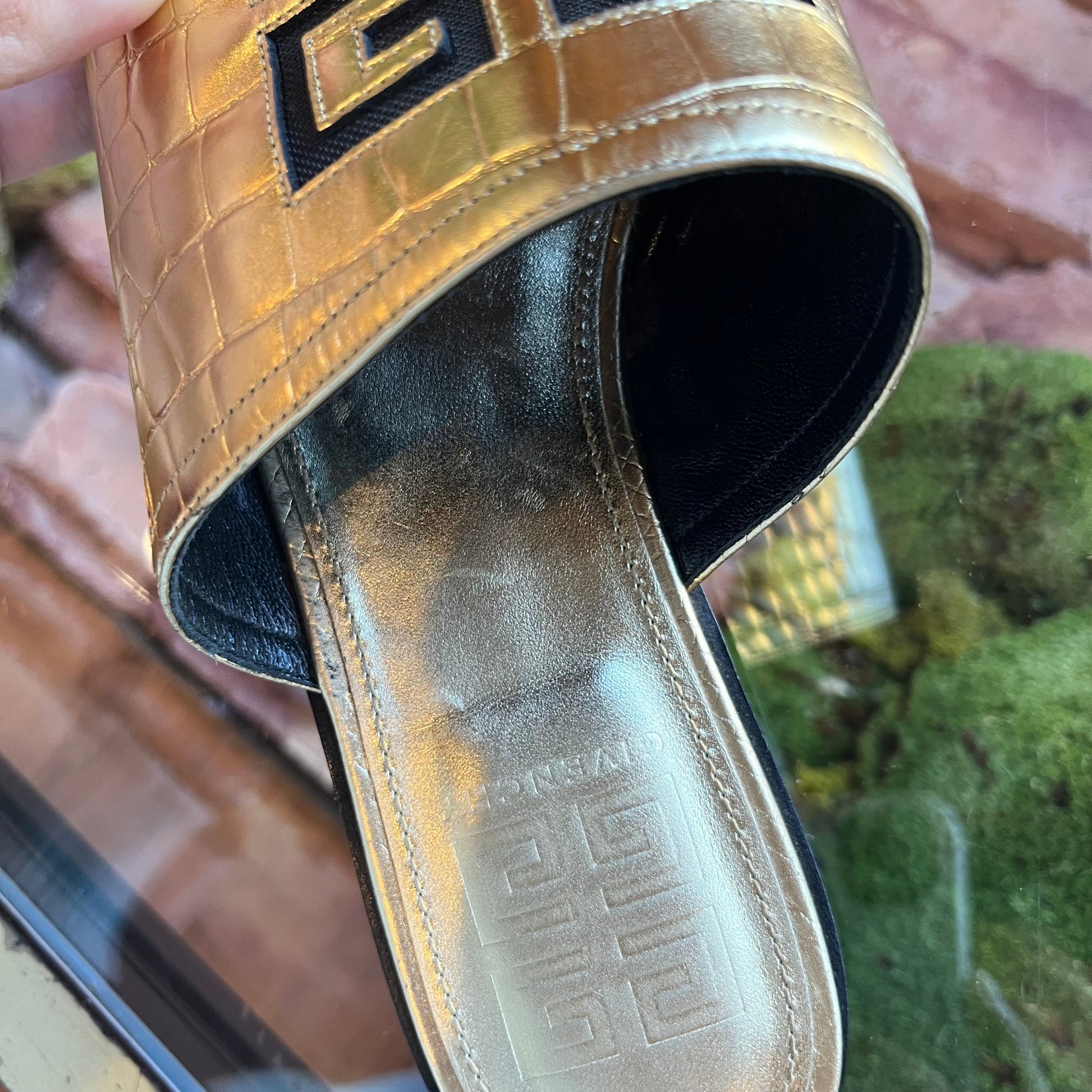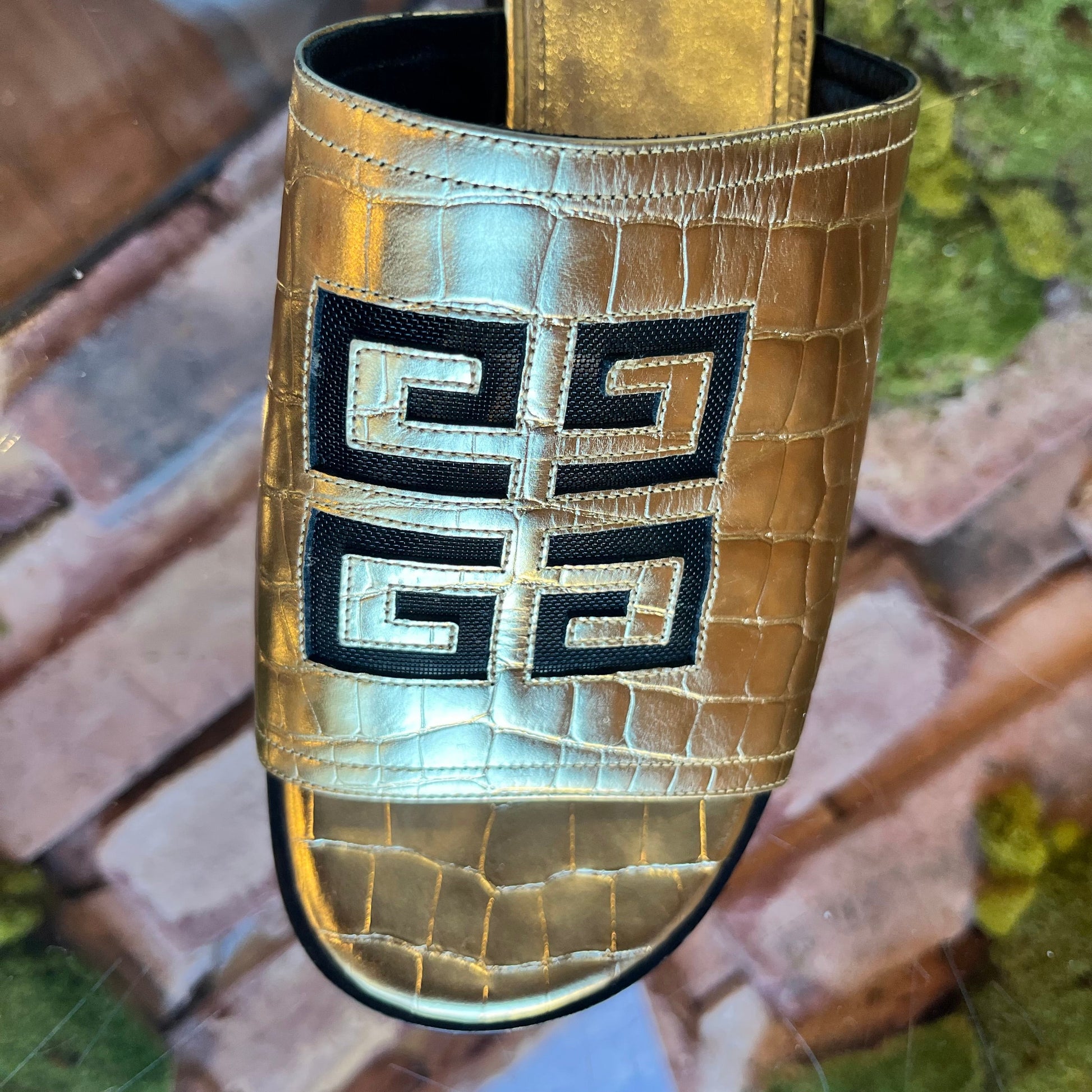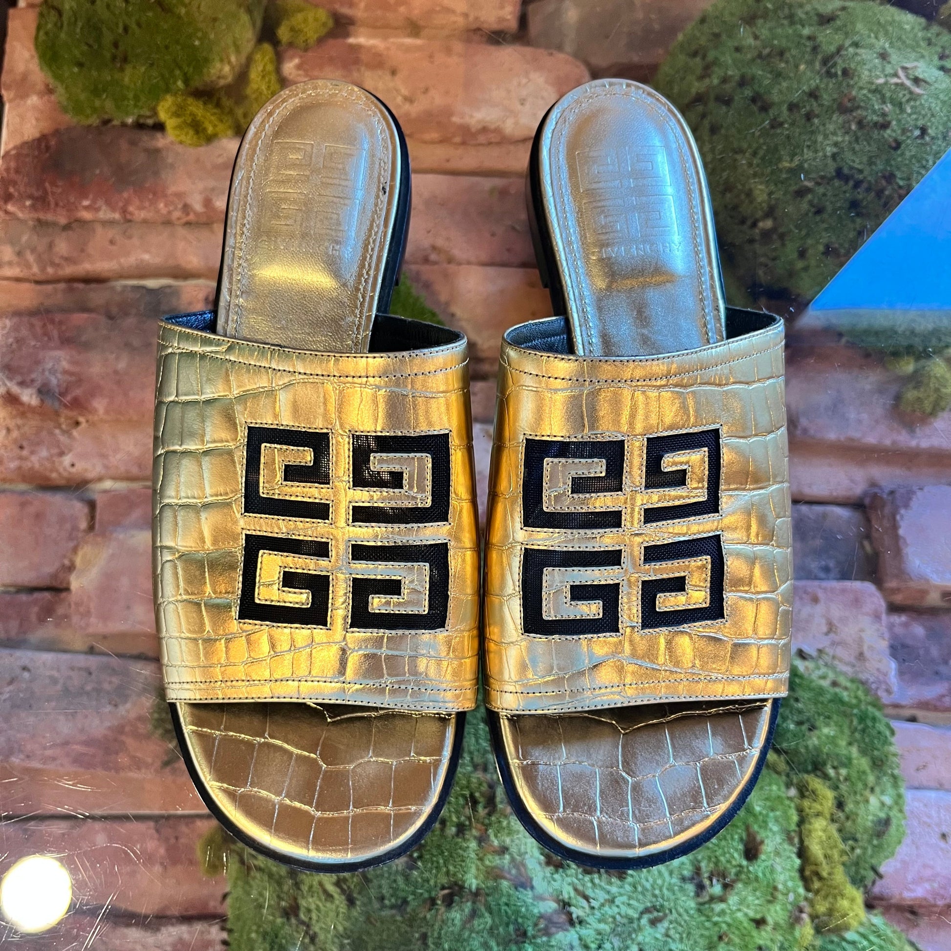GIVENCHY 4G Cut Out Gold Metallic Leather Slip On Sandals SZ 39 (9 US)