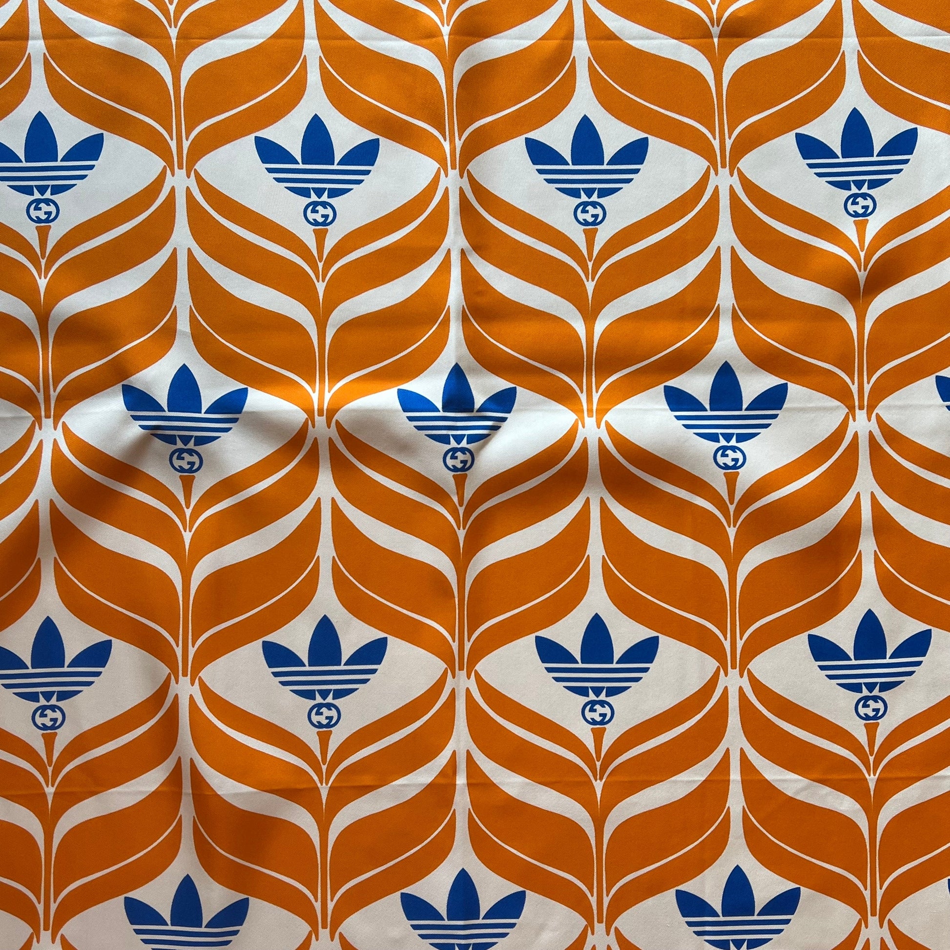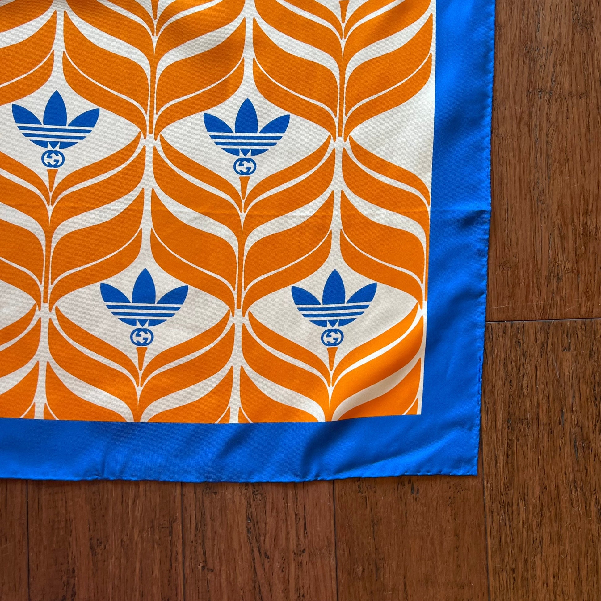 GUCCI x Adidas Orange Blue White Silk GG Monogram Trefoil Print Square Scarf