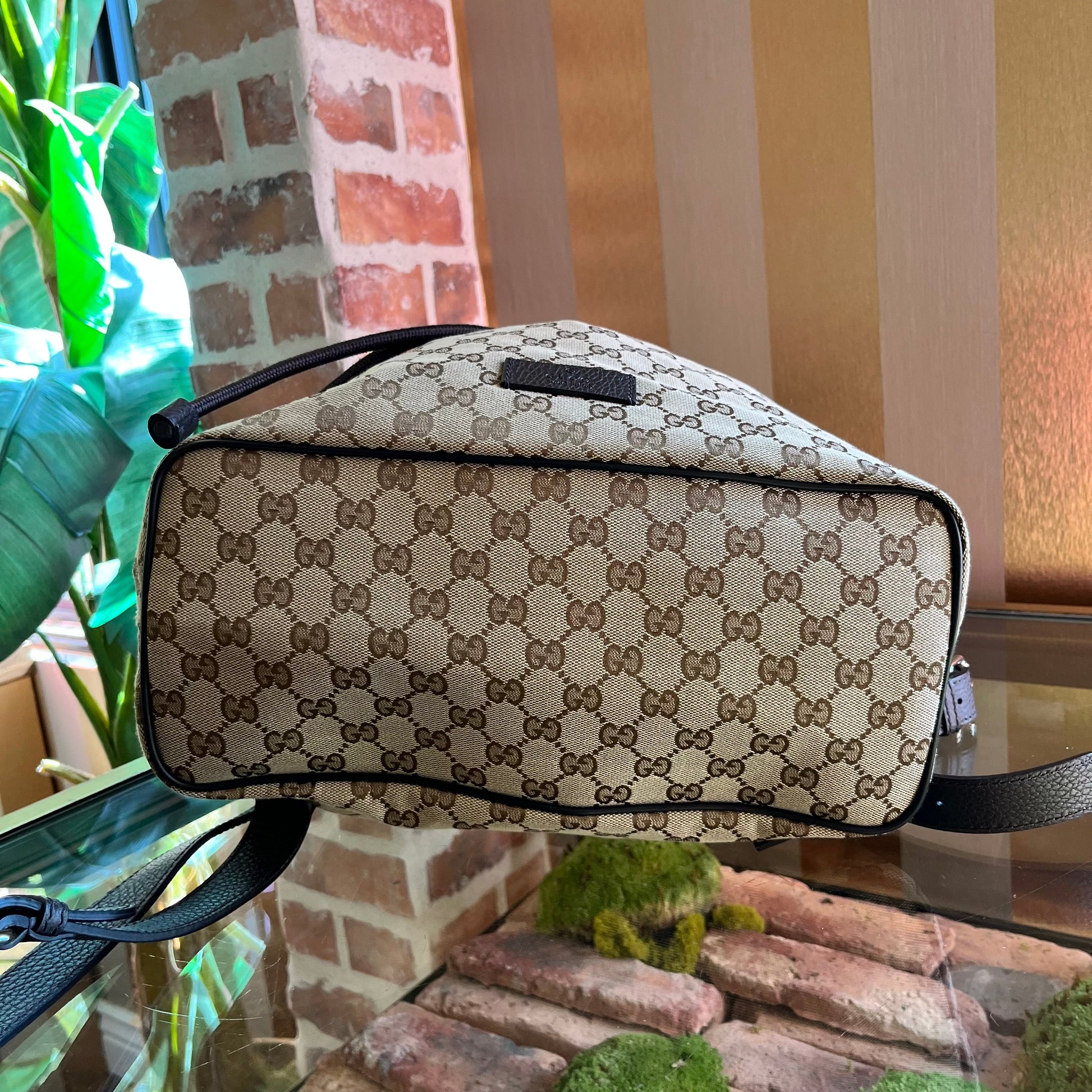 GUCCI GG Monogram Canvas Dollar Calfskin O Drawstring Backpack